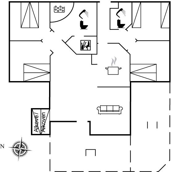 Der er i alt 4 soveværelser. Sovepladserne fordeler sig på: 6 sovepladser i dobbeltsenge. 2 sovepladser i enkeltsenge. 2 sovepladser i alkove. Derudover er der 1 stk. barneseng.