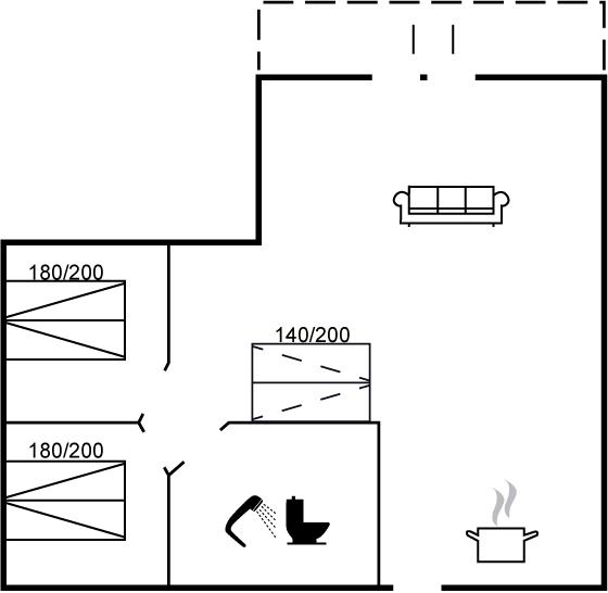 Der er i alt 2 soveværelser. Sovepladserne fordeler sig på: 4 sovepladser i dobbeltsenge. 2 sovepladser i sovesofa (dobbelt). Derudover er der 1 stk. barneseng.