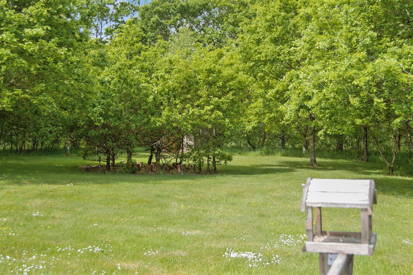 Flot sommerhus med brændeovn og stor naturgrund nær skove og søer i Vesterlund/Give.