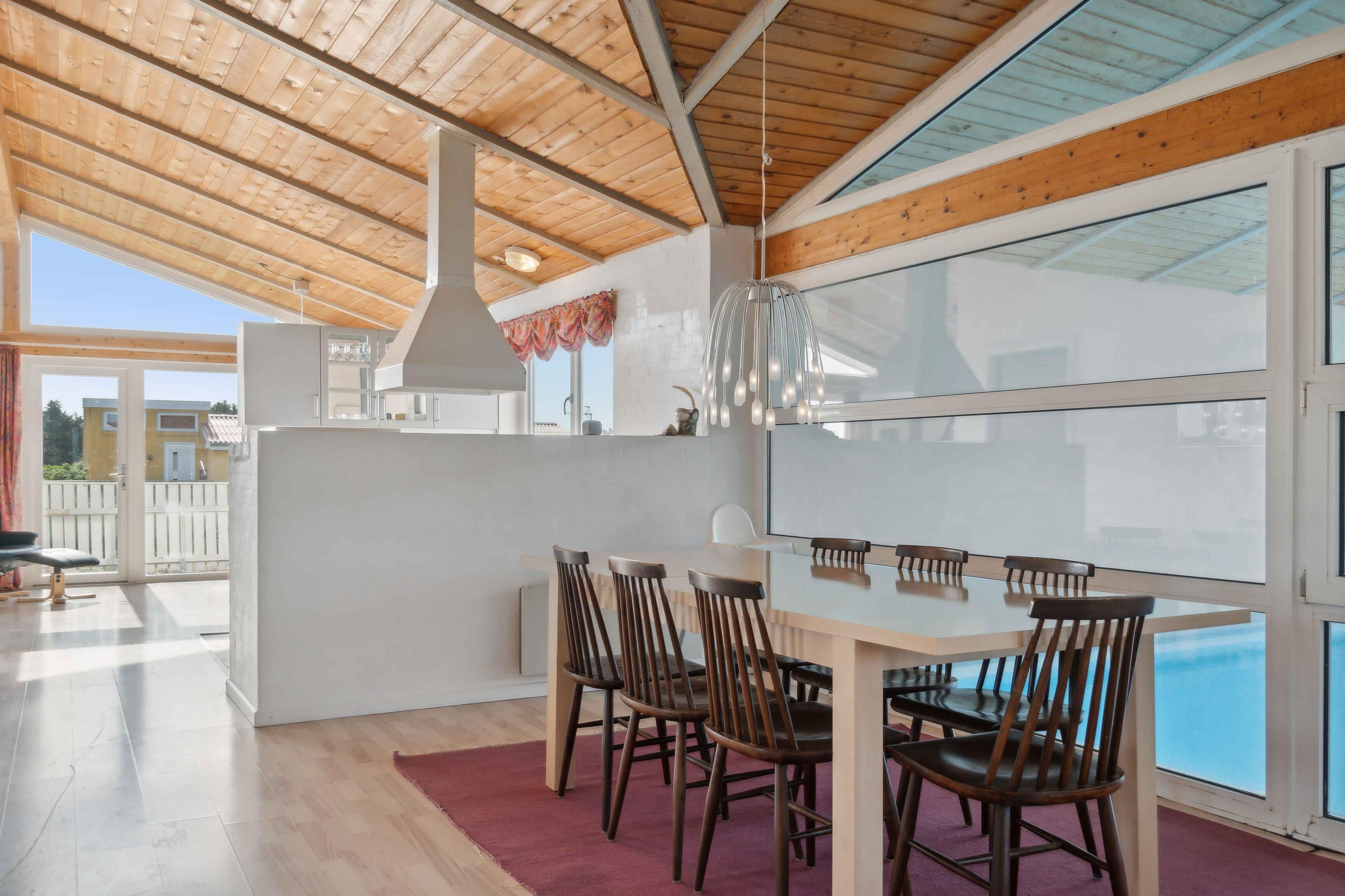 Velkommen til dette fantastiske sommerhus på 150 m2, ideelt beliggende i Vestervig med direkte udsigt til den betagende Nordsø. Dette rummelige sommerhus tilbyder komfortable sovepladser til op til 8 personer, fordelt på 4 hyggelige soveværelser, hvilket gør det perfekt til både familier og grupper af venner. Huset er udstyret med solpaneler så omkostningerne til el er meget lavt. En af de mest fremragende faciliteter ved dette sommerhus er den indendørs pool, hvor du kan nyde en afslappende svømmetur uanset vejret udenfor. Efter en dag fyldt med aktiviteter, kan du slappe af og nyde livet i poolområdet, hvilket giver en følelse af luksus og velvære. Sommerhuset er også ideelt placeret tæt på stranden, så du kan nemt tage en kort gåtur og nyde de smukke sandstrande og det forfriskende havvand. Uanset om du ønsker at bade, solbade, eller blot gå lange ture langs vandet, vil du finde det hele lige ved din dør. Med en beliggenhed i Vestervig får du også mulighed for at udforske det charmerende lokale område, der byder på både naturskønne omgivelser og hyggelige lokale attraktioner. Området omkring Nordsøen er kendt for sin rå skønhed og naturlige ro, hvilket gør det til et perfekt tilflugtssted for dem, der ønsker at undslippe hverdagens travlhed. Dette sommerhus er det perfekte valg for en mindeværdig ferie, hvor komfort, afslapning og naturoplevelser går hånd i hånd. Kom og oplev alt, hvad dette vidunderlige sommerhus og dets fantastiske omgivelser har at byde på.