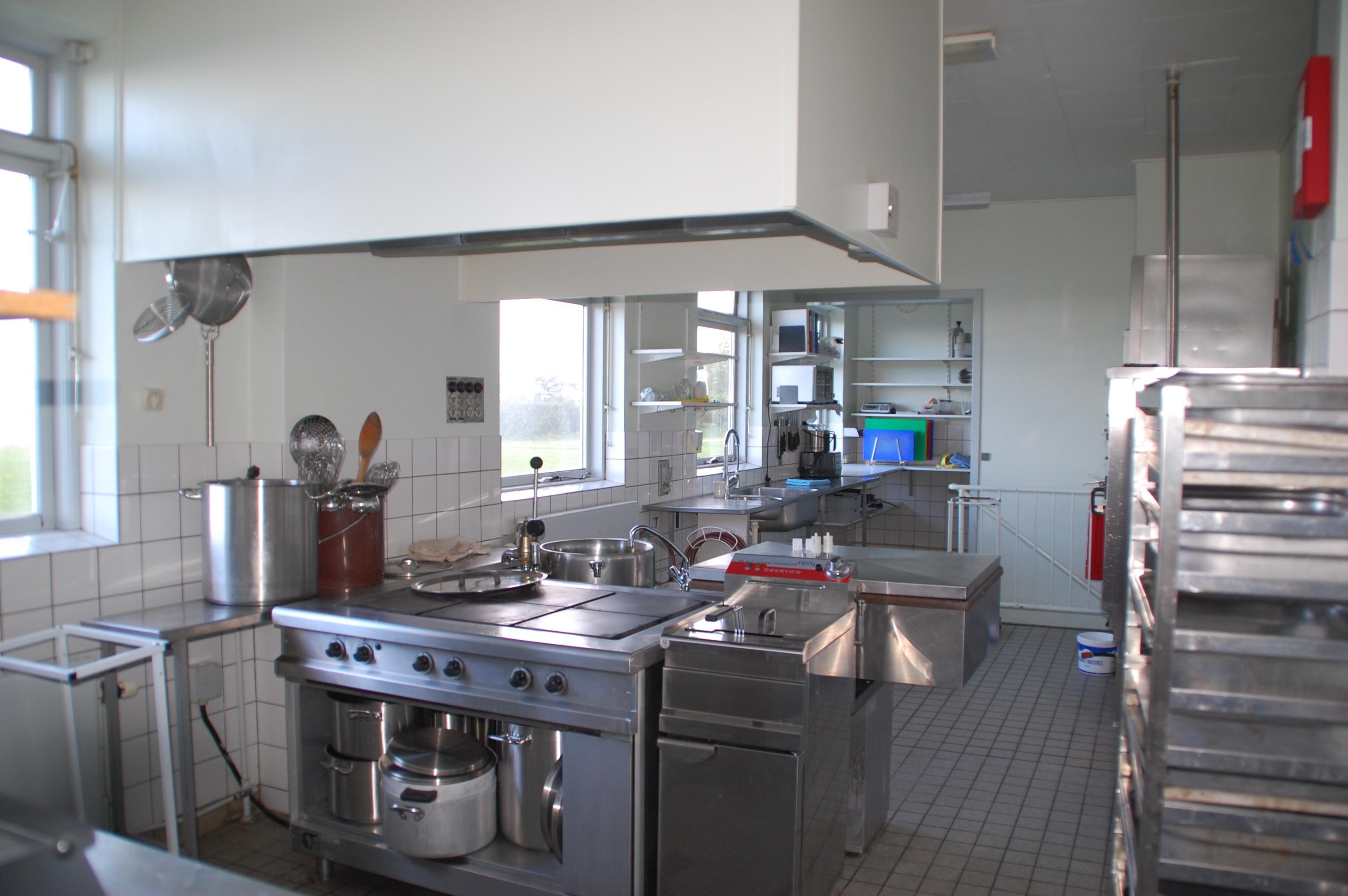 Boligen indeholder en stor spisestue med panoramaudsigt, hvor der kan dækkes op til 100 gæster. Hertil er en stor opholdsstue. I forlængelse af spisestuen/selskabslokalet er et veludstyret industrikøkken. Her er alt hvad der skal være i et køkken og mulighed for at lave mad til hele selskabet. I køkkenet er der nedgang til kælder med køle- og fryserum, viktualierum samt fyrrum. Fra kælderen er der desuden udgang til parkeringspladsen.