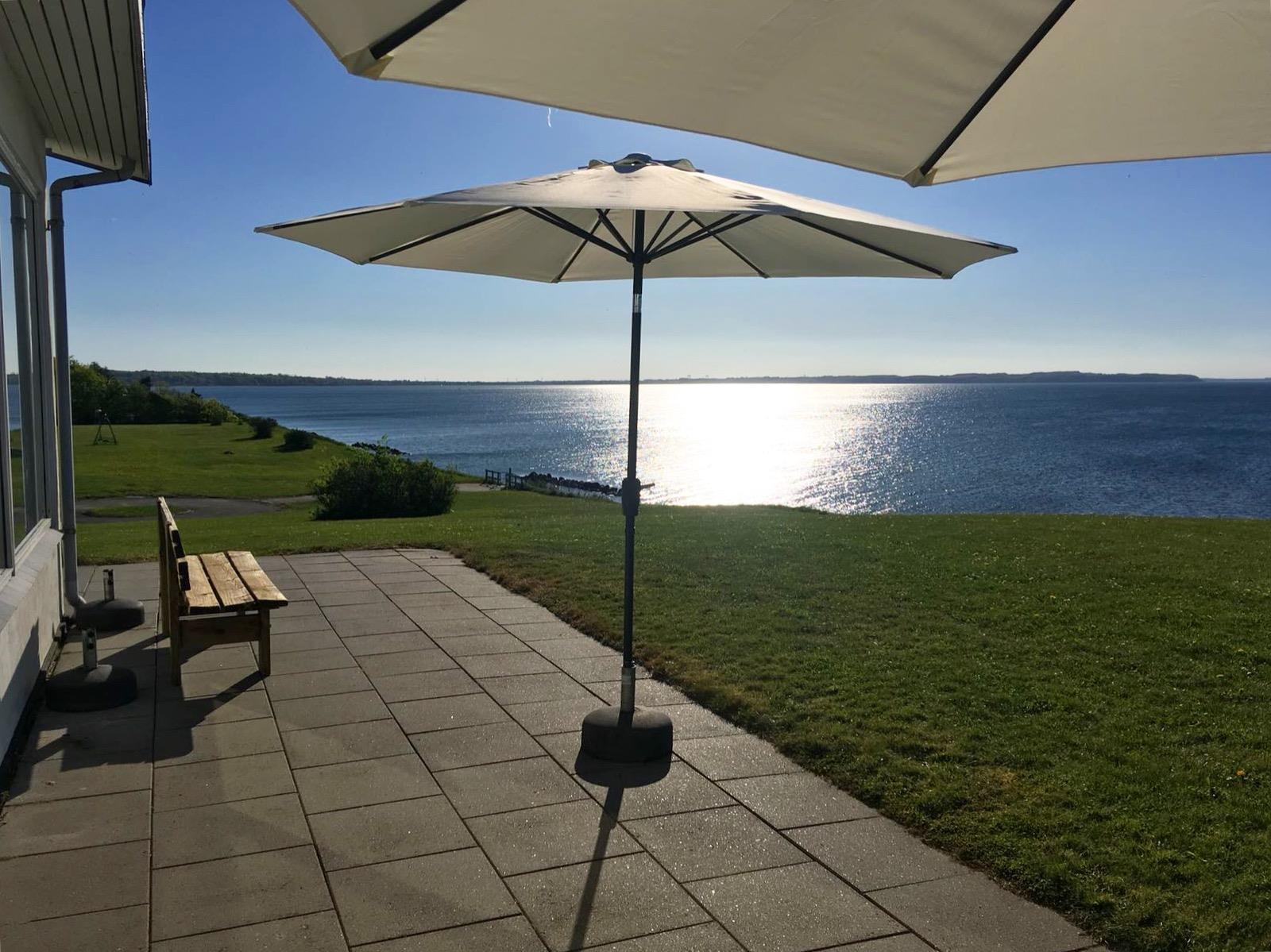 Lej hele Sct. Knudsborg ved havet med privat strand, stor grund og udendørs pool fra maj til september.