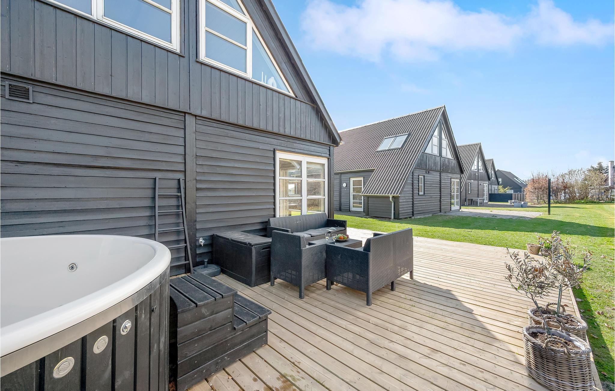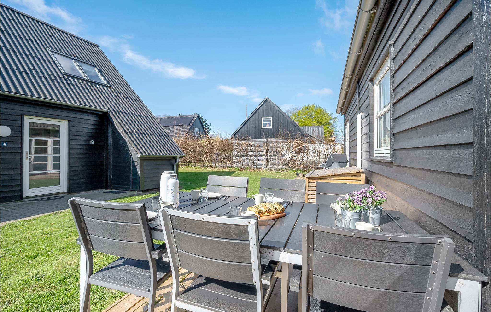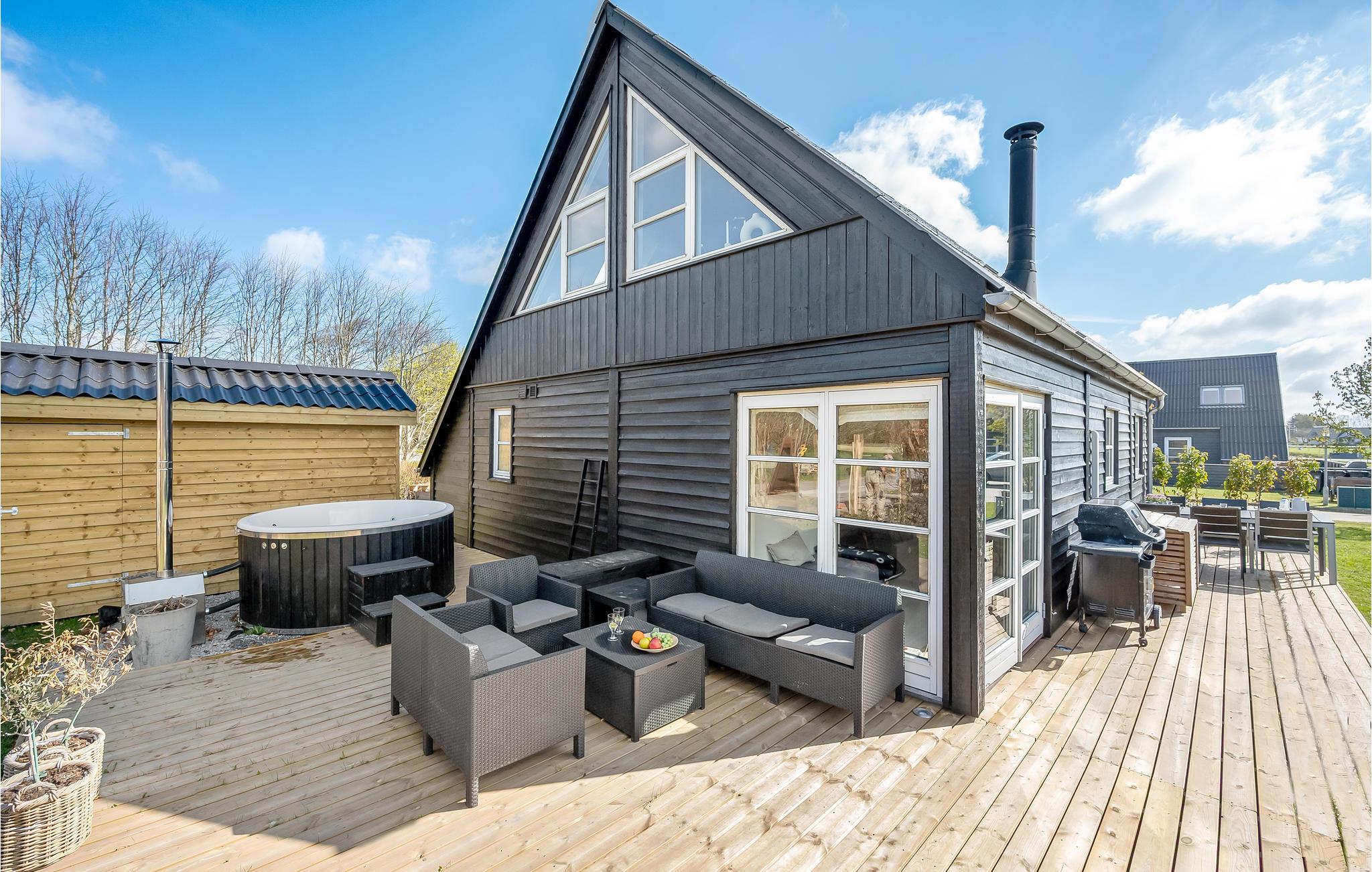 På den åbne terrasse kan I trylle lækkerier frem på grillen og slappe af i komfortable havemøbler. Der er også vildmarksbad, hvis I får lyst til at slappe af i det fri.