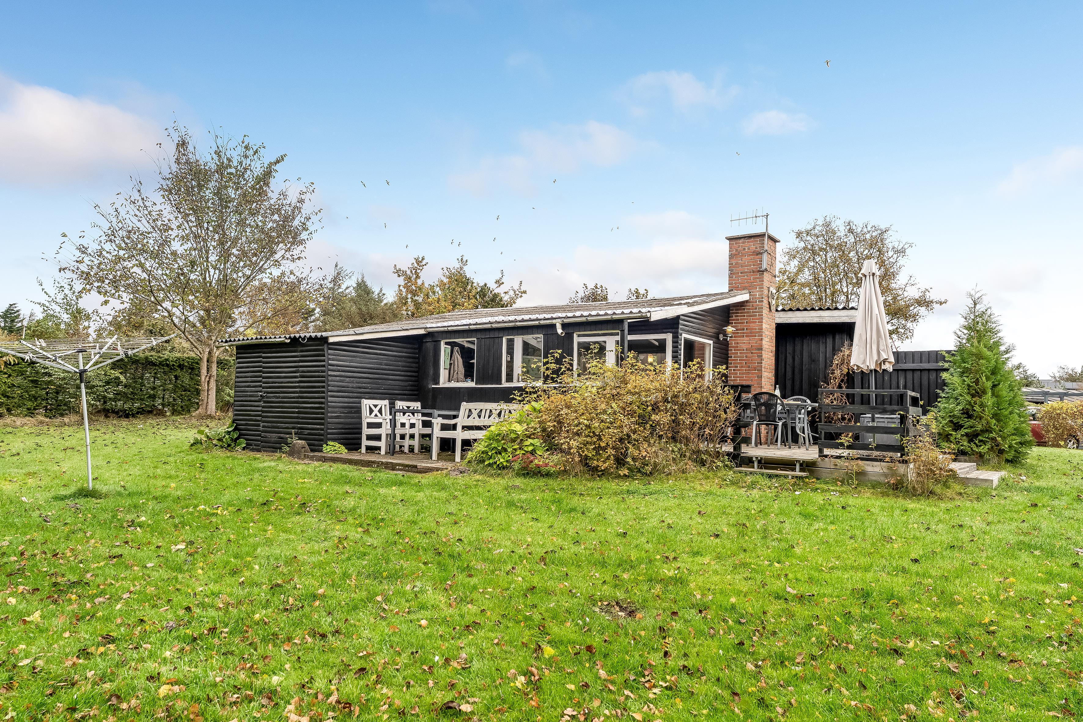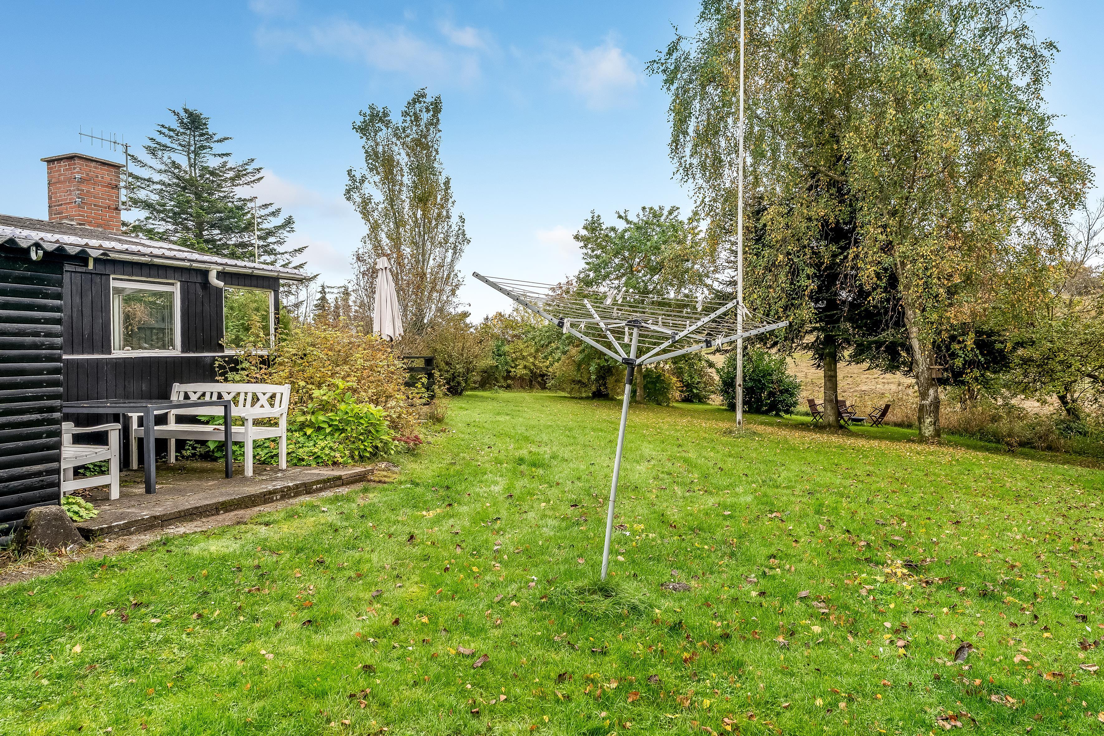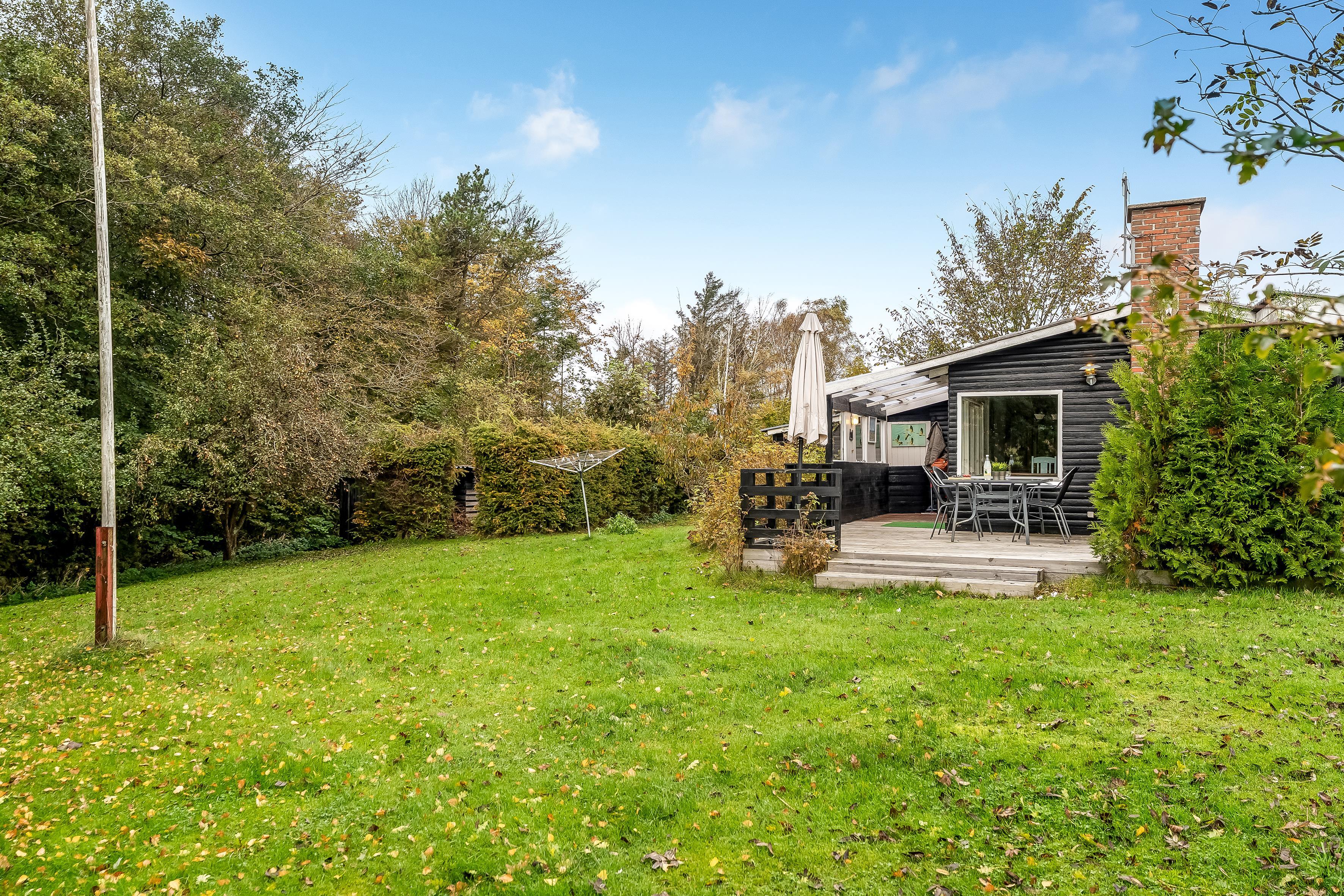 Med et grundareal på 1291 kvadratmeter er der rigeligt med plads til at lege og slappe af i naturen. Huset har et samlet areal på 45 kvadratmeter, der er optimalt indrettet for at maksimere komfort og funktionalitet. Indenfor finder du et rummeligt soveværelse med en dobbeltseng og der er desuden en sovesofa i stuen, der let kan omdannes til 2 ekstra sovepladser. Dette gør det nemt at rumme op til 4 personer uden at gå på kompromis med komforten.