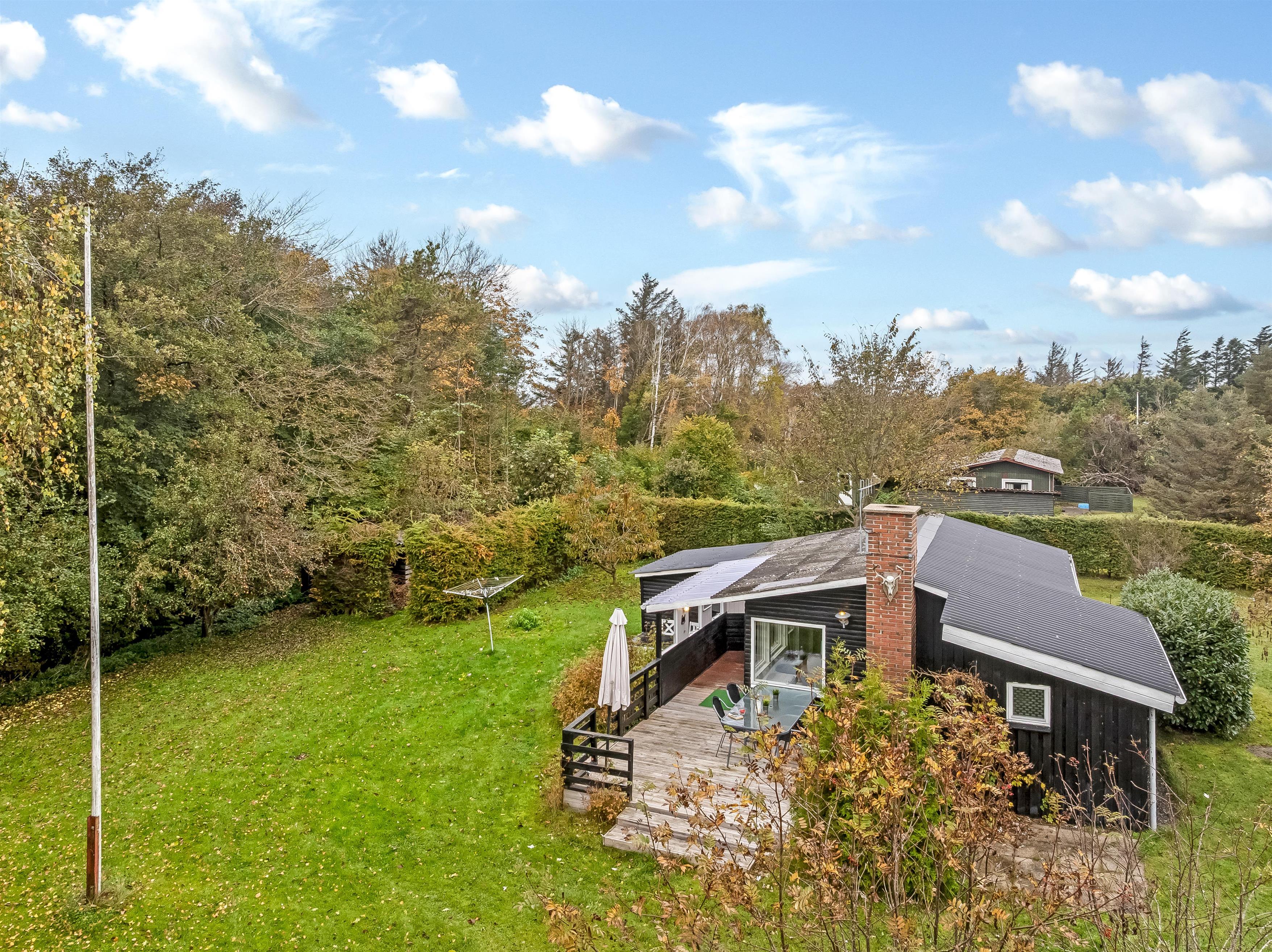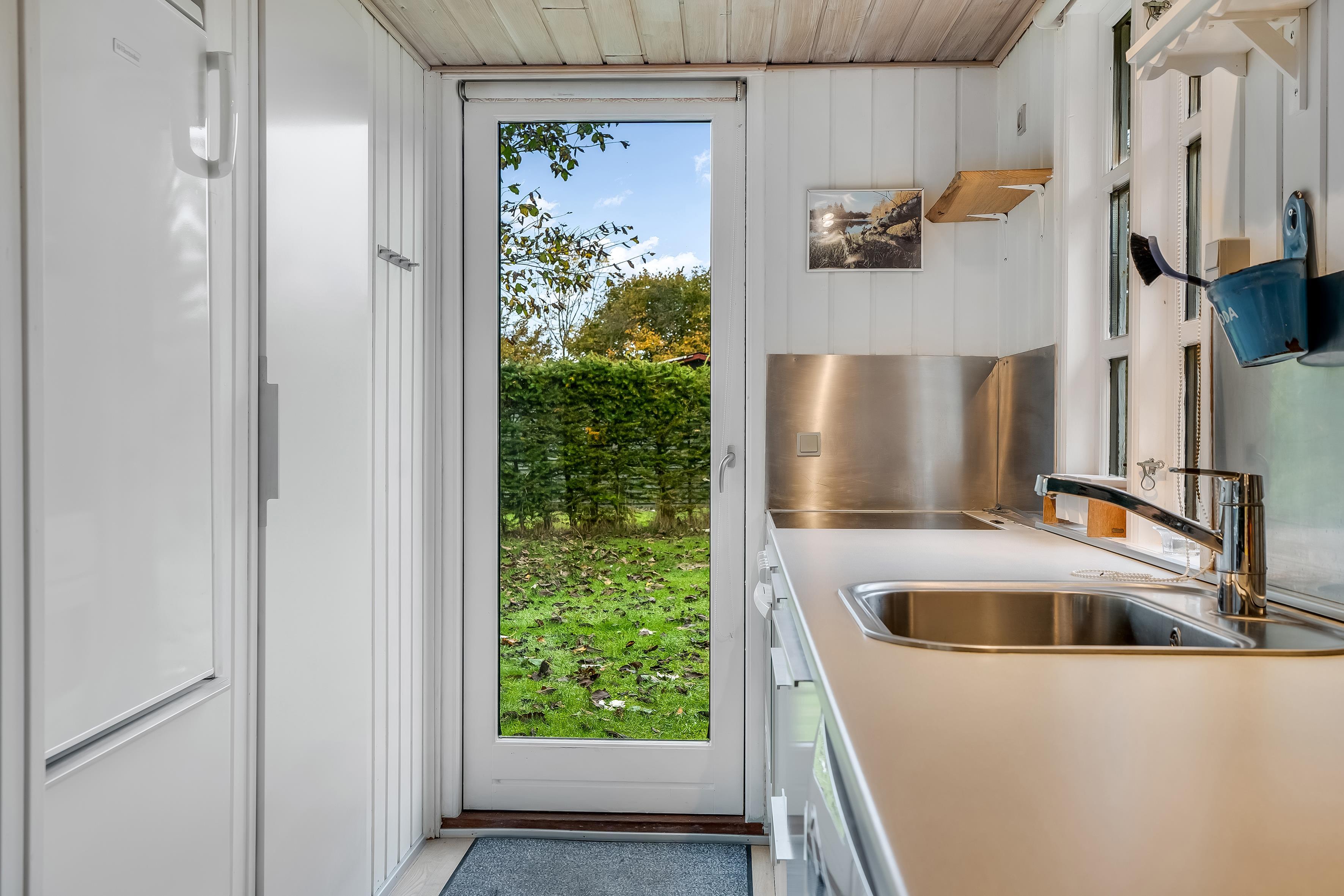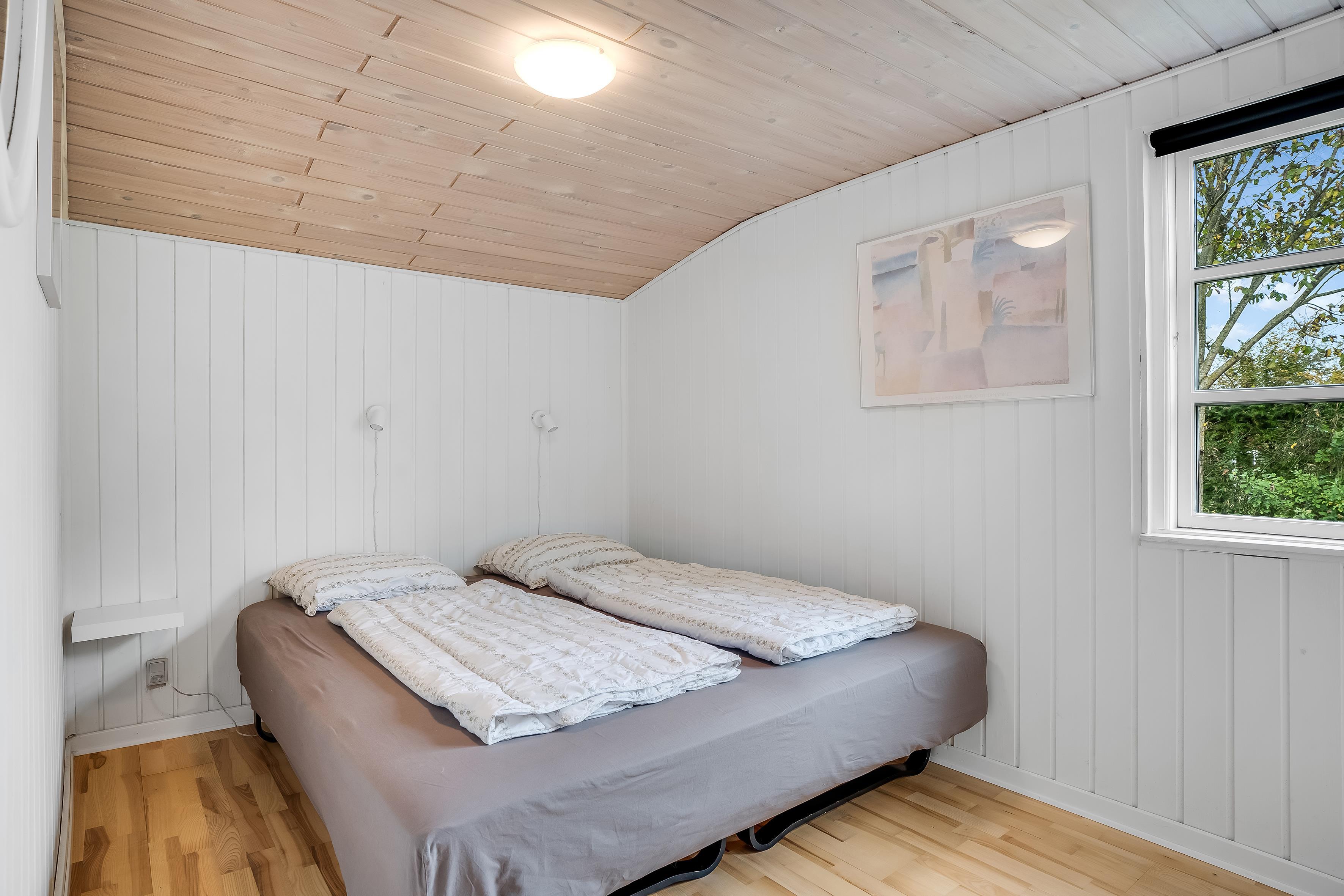 Med et grundareal på 1291 kvadratmeter er der rigeligt med plads til at lege og slappe af i naturen. Huset har et samlet areal på 45 kvadratmeter, der er optimalt indrettet for at maksimere komfort og funktionalitet. Indenfor finder du et rummeligt soveværelse med en dobbeltseng og der er desuden en sovesofa i stuen, der let kan omdannes til 2 ekstra sovepladser. Dette gør det nemt at rumme op til 4 personer uden at gå på kompromis med komforten.