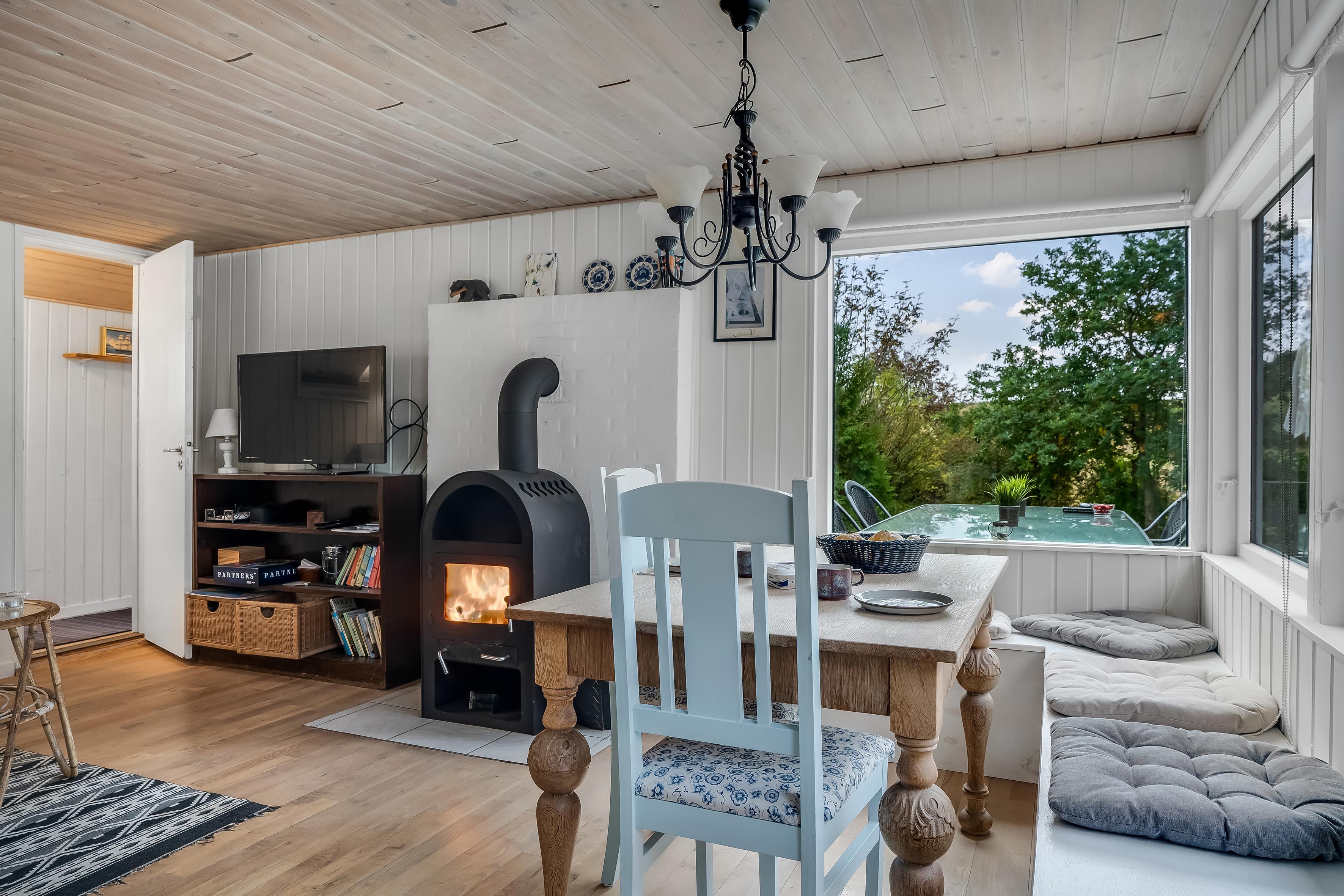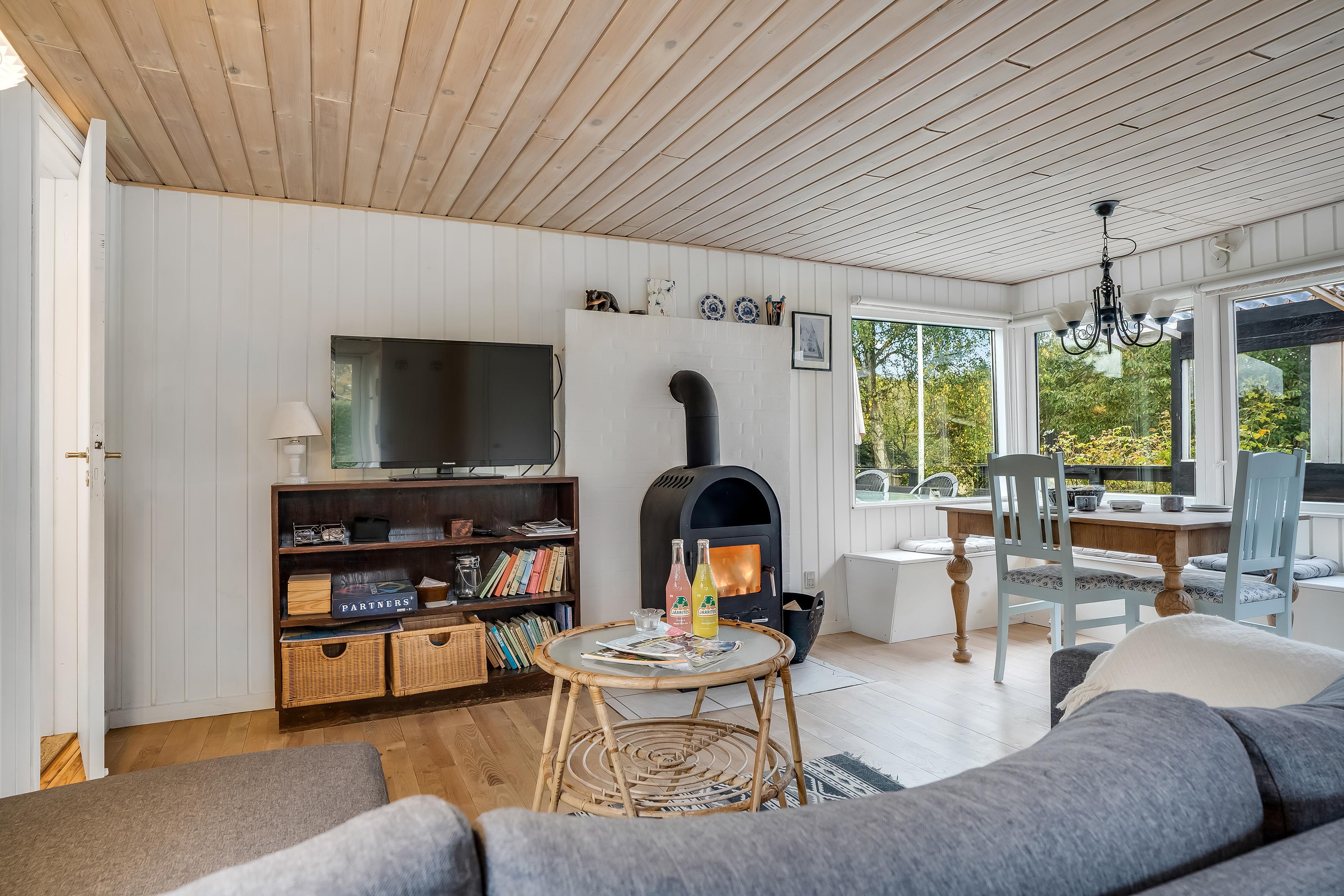 Huset er også udstyret med en brændeovn, som skaber en varm og hyggelig atmosfære på køligere aftener. Der er et fjernsyn men Danske TV kanaler til underholdning, samt trådløst internet, så du kan holde forbindelsen til omverdenen, hvis du ønsker det.