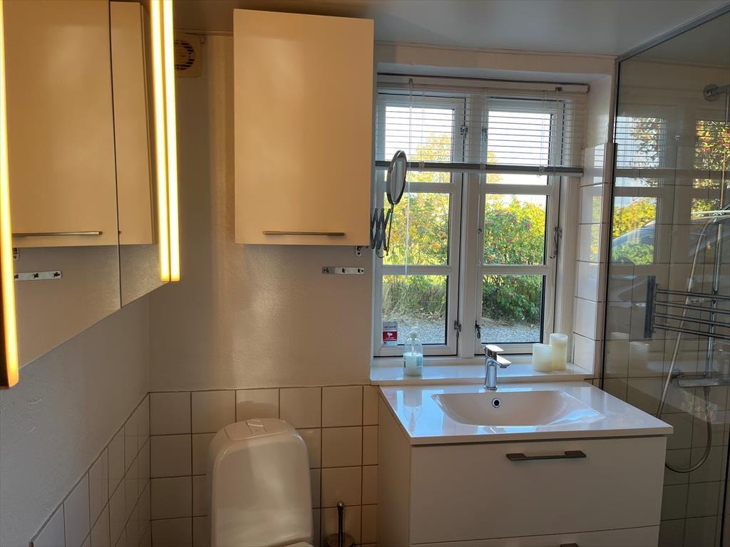 Badeværelse med gulvvarme, bruseniche, toilet og håndvask