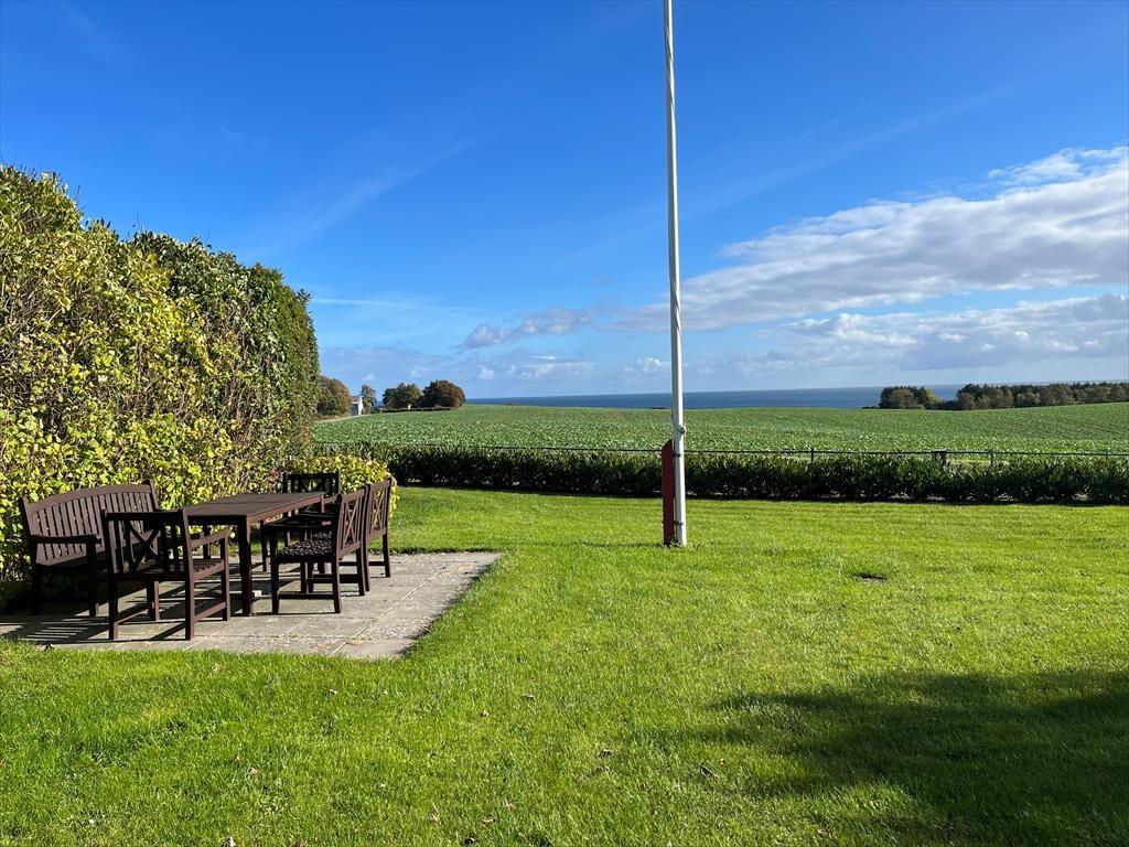 Dejlig solrig have med havudsigt og mange hyggelige kroge, terrasser, havemøbler, liggestole og parasol.
