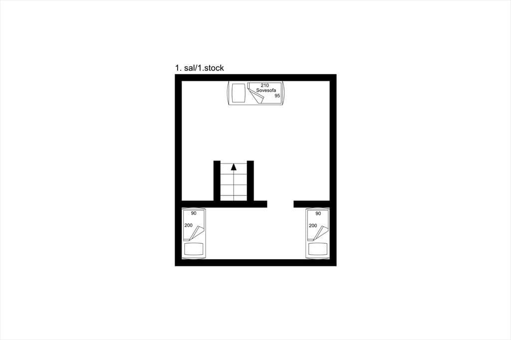 1 soveværelse med 2 senge. 1 dobbeltsovesofa i stuen