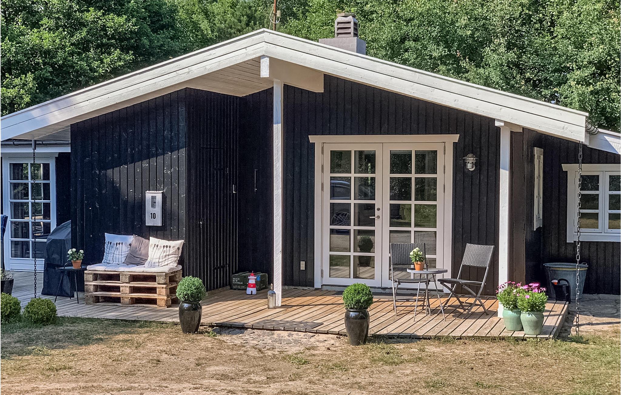 Nydeligt og velindrettet sommerhus med flot og moderne møblering i lyse og indbydende farver og en meget rar stemning overalt i huset. Dette sommerhus fremtræder overalt lyst og velindrettet, og byder bl.a. på en godt åbent køkken, pejs og varmepumpe samt gratis internet. Dejligt åbent miljø der indbyder til ro, afslapning og feriehygge.Flot separat opholdsstue med komfortable møbler og med udsigt til smuk natur. Dejligt stort badeværelse med spa-bad og sauna, hvor I kan slappe af og forkæle jer selv. Huset ligger i et dejligt sommerhusområde, og byder også på en god og uforstyrret træterrasse hvor I kan nyde ferien i husets komfortable havemøbler og spise mad fra grill. På grunden er der også plads til leg og boldspil. Der er ca. 1 km til en glimrende sandstrand. Husets mange moderne faciliteter gør det velegnet til ferie uanset årstid.