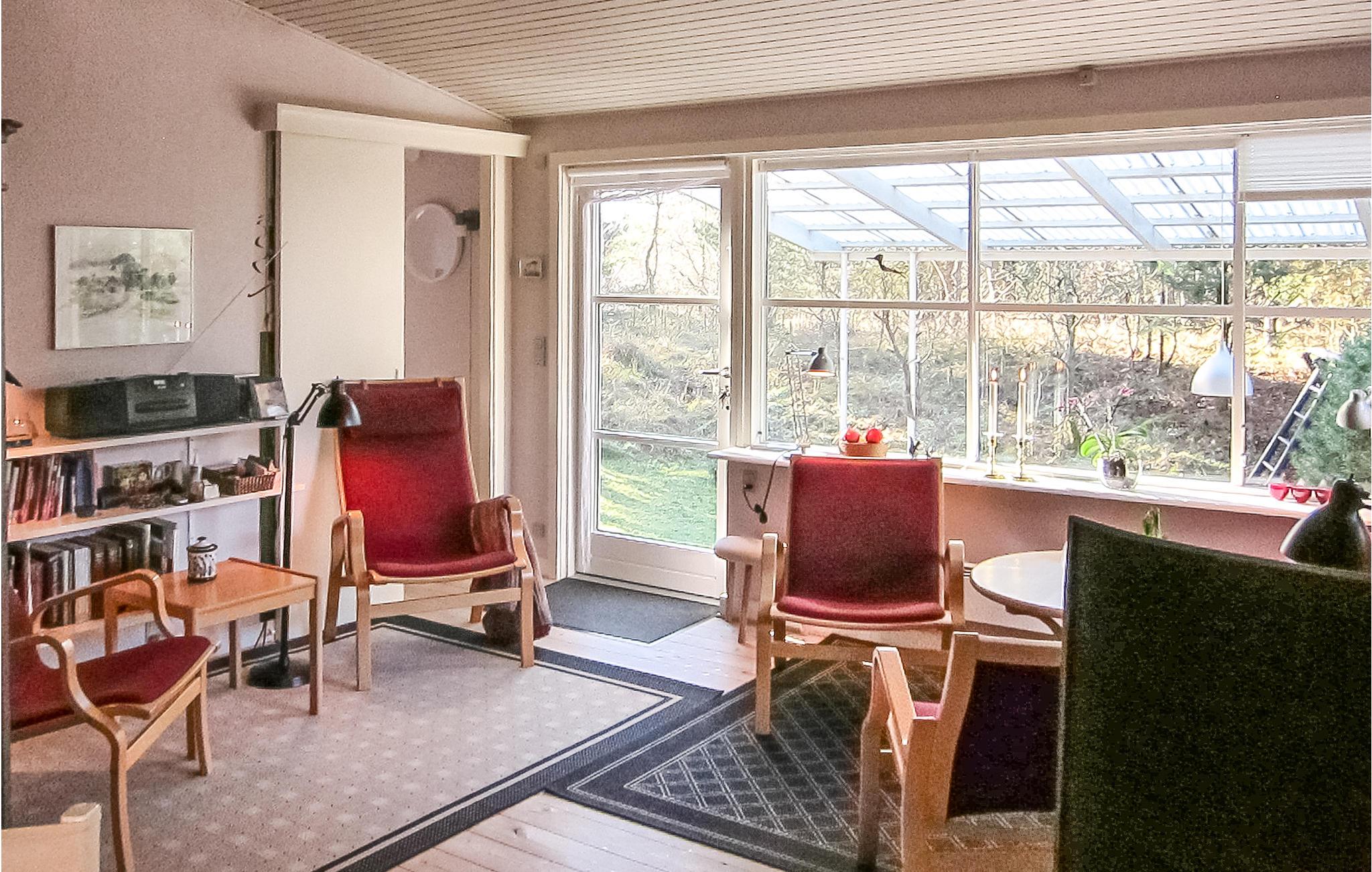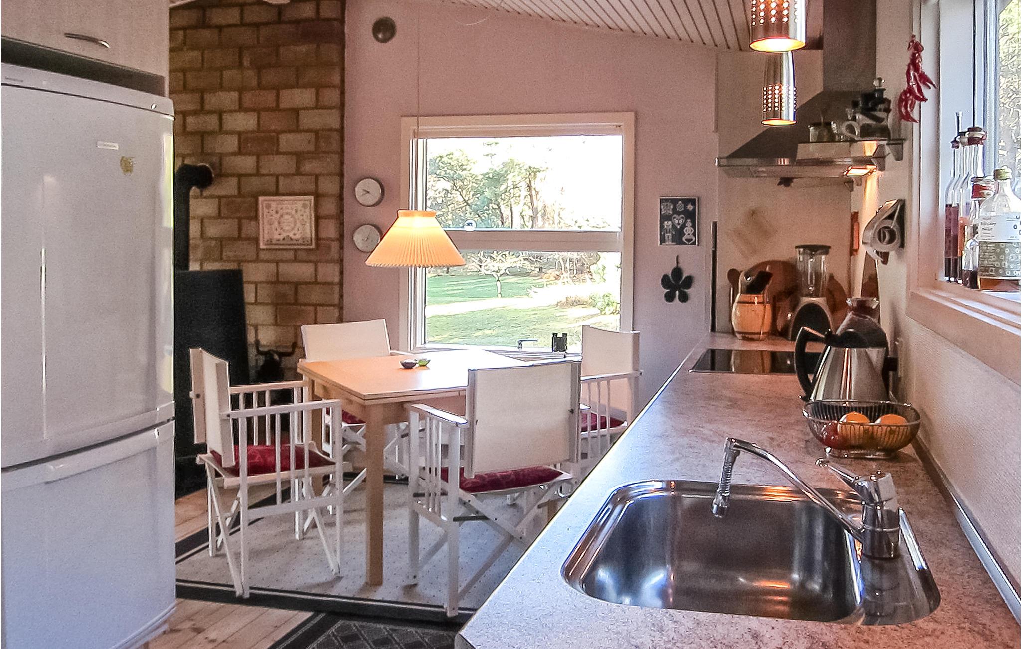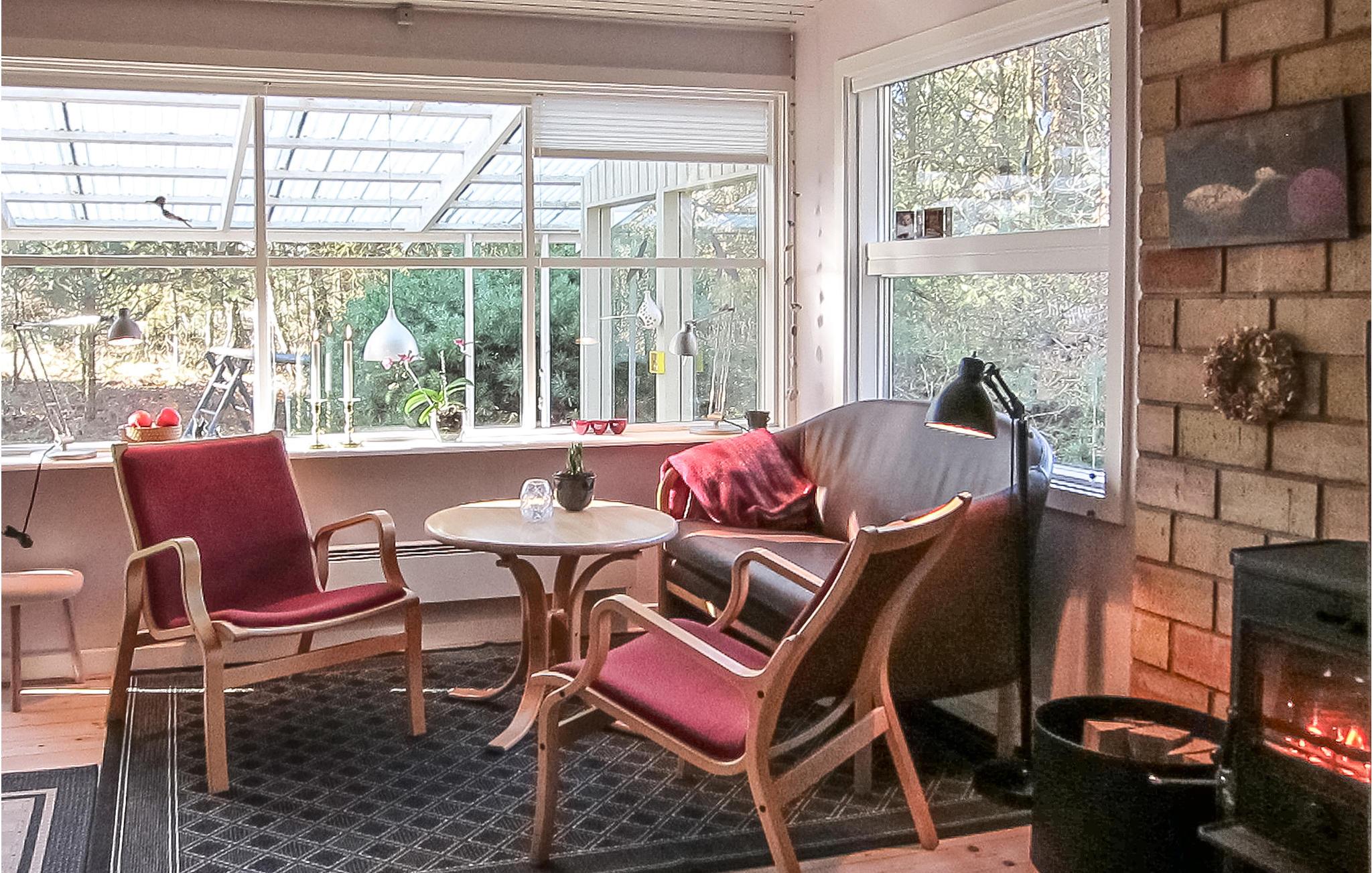 Husets hjerte er den smagfuldt indrettede opholdsstue, som ligger i åben forbindelse med det veludstyrede køkken m. spiseplads. I stuen kan I slænge jer i komfortable møbler, mens I ser film, hører radio eller musik og om vinteren lytter til de knitrende flammer i brændeovnen (brænde er inkluderet). Derudover består huset af et pænt badeværelse og to mindre, men gode soveværelser (det er muligt at lave dobbeltseng i begge værelser). I udhuset finder I en vaskemaskine og tørretumbler.