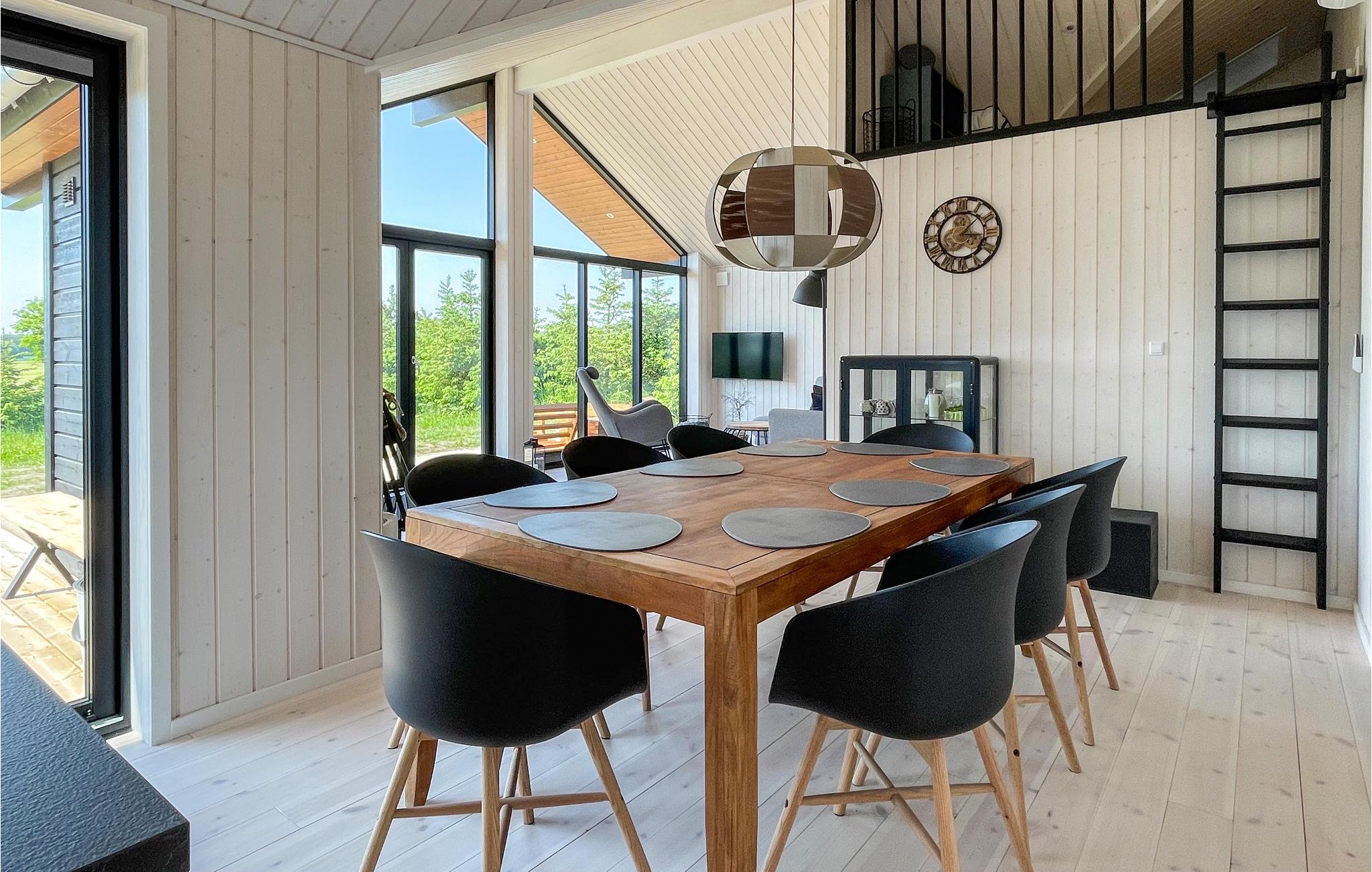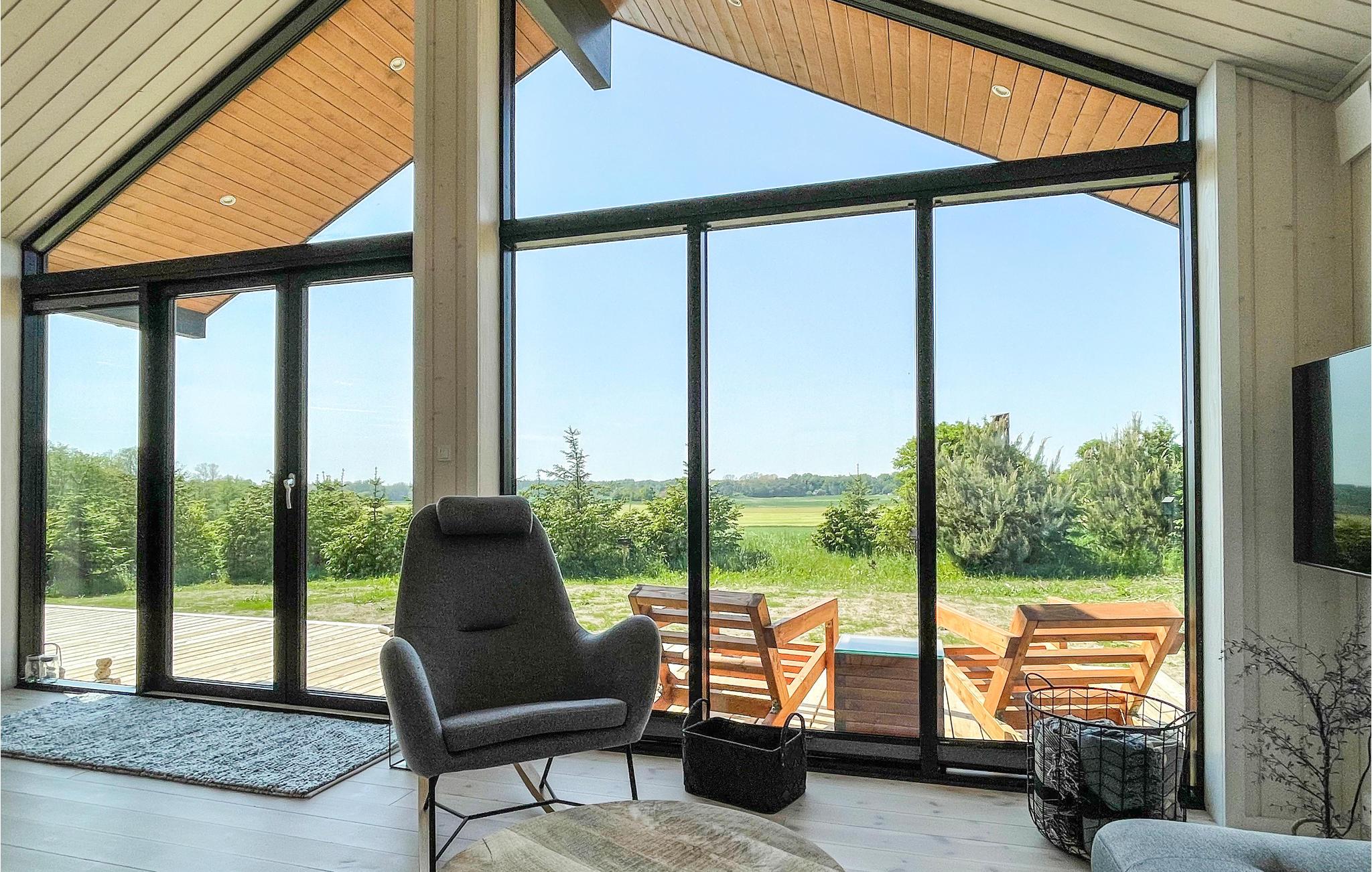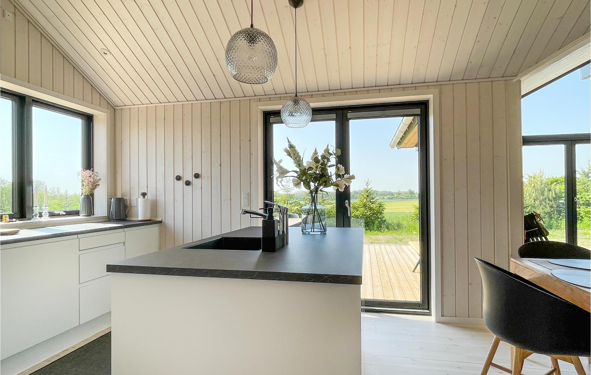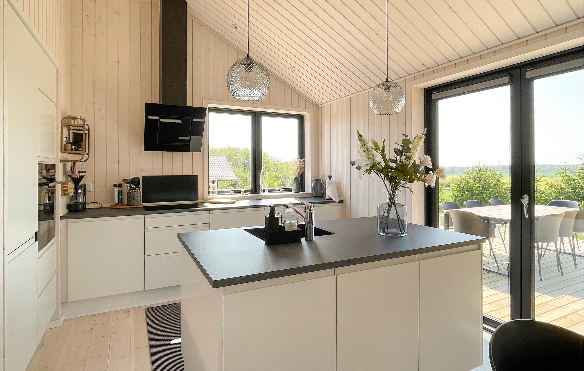 Velkommen til dette luksuriøse feriehus, der emmer af feriestemning. Husets hjerte er den smagfuldt indrettede opholdsstue med mange hyggelige og komfortable siddepladser, en dejlig spiseplads og udsigt til de grønne omgivelser gennem store glaspartier. Her kan I se fjernsyn, høre radio eller musik, spille kort- og brætspil og bare hyggesnakke, mens I flader ud i møblerne. I det åbne, veludstyrede køkken er det en leg at tilberede lækre feriemåltider. Huset har åbent til kip i stuen og køkkenet, hvilket skaber en rummelig og lys atmosfære. Der er skøn gulvvarme på badeværelset. Vaskemaskine og tørretumbler i entreen.