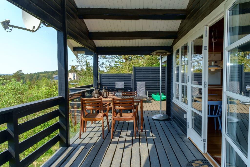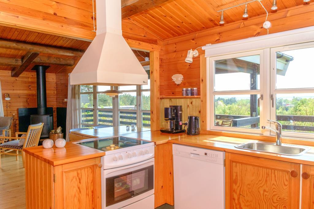 Dejligt, nyrenoveret og veludstyret sommerhus højtbeliggende på en blind vej på en naturgrund med en flot syd-/vestvendt panoramaudsigt over Ebeltoft Vig og Mols Bjerge, hvilke kan nydes fra såvel terrasse som stue og køkken. Skøn, stor og ugeneret terrasse med havemøbler og grill, opdelt i en åben terrasse med gennemgående sol og en overdækket terrasse, hvor aftendrinken kan nydes, mens solen går ned over Mols Bjerge. Hyggelig og personligt indrettet opholdsstue med sans for detaljer med brændeovn, TV med parabol, stereoanlæg med CD og DVD. Godt og veludstyret køkken med keramisk komfur, køleskab med separat fryser, mikrobølgeovn og opvaskemaskine. Flot, nyere badeværelse med brusekabine, gulvvarme og vaskemaskine. Husets sovepladser fordeler sig på 3 soveværelser: 1 med dobbeltseng, 1 med 2 enkeltsenge og 1 med køjeseng. Alle med gode og behagelige boxmadrasser. Til de små feriegæster byder huset på barneseng og høj barnestol, babybadekar samt legetøj, spil, børnebøger og videofilm til både drenge og piger. Huset er særdeles veldisponeret, og er derfor velegnet for to par eller en familie. God beliggenhed og velegnet for vandreture i Mols Bjerge. Huset ligger desuden i gåafstand til stranden, skoven, butikkerne og restauranterne i Ebeltoft by.