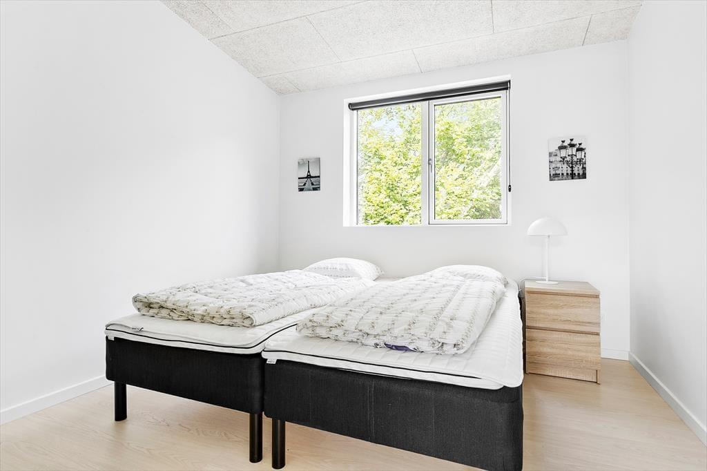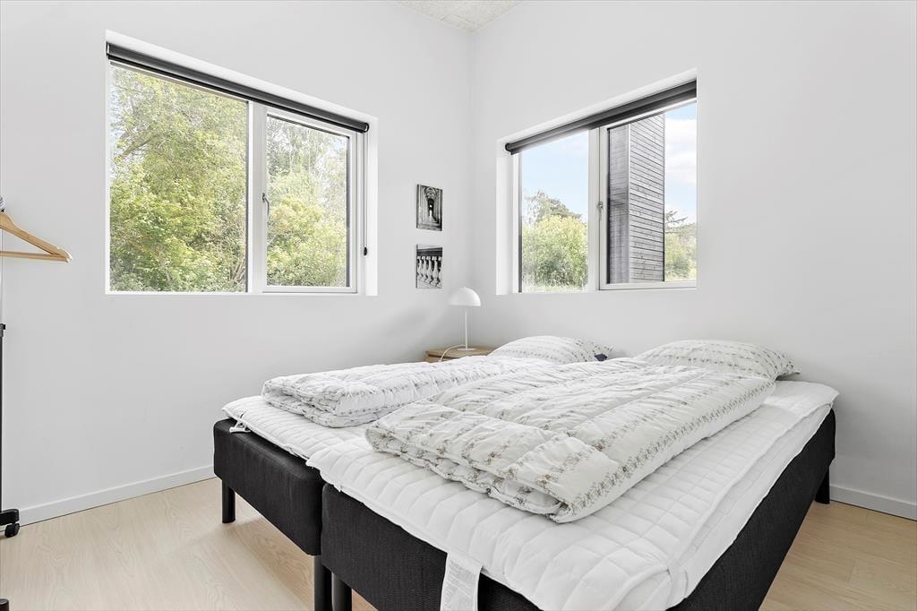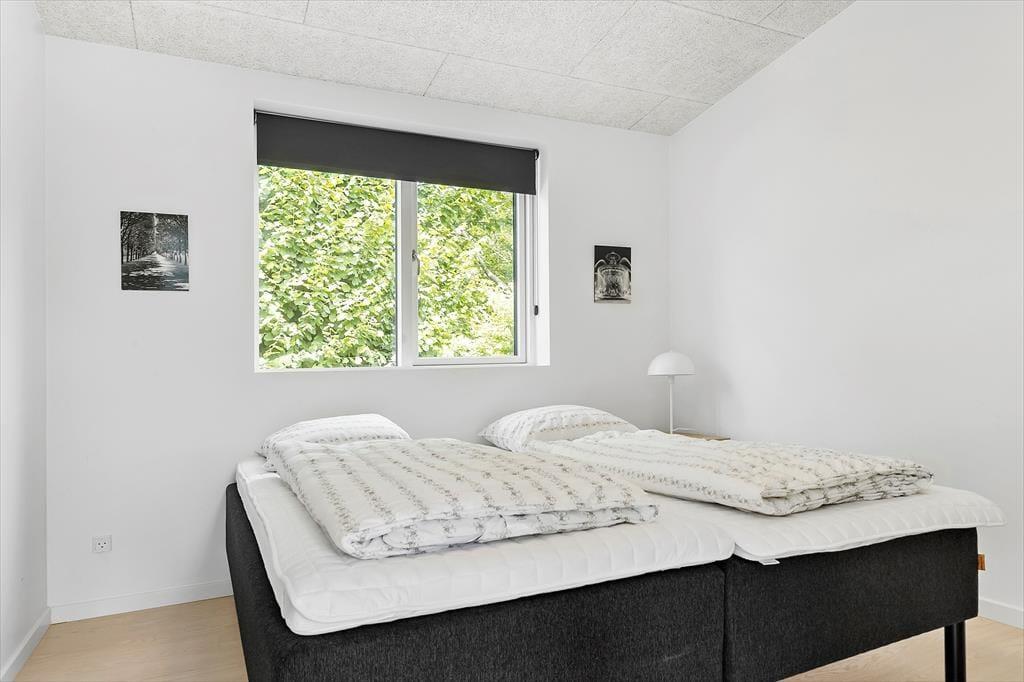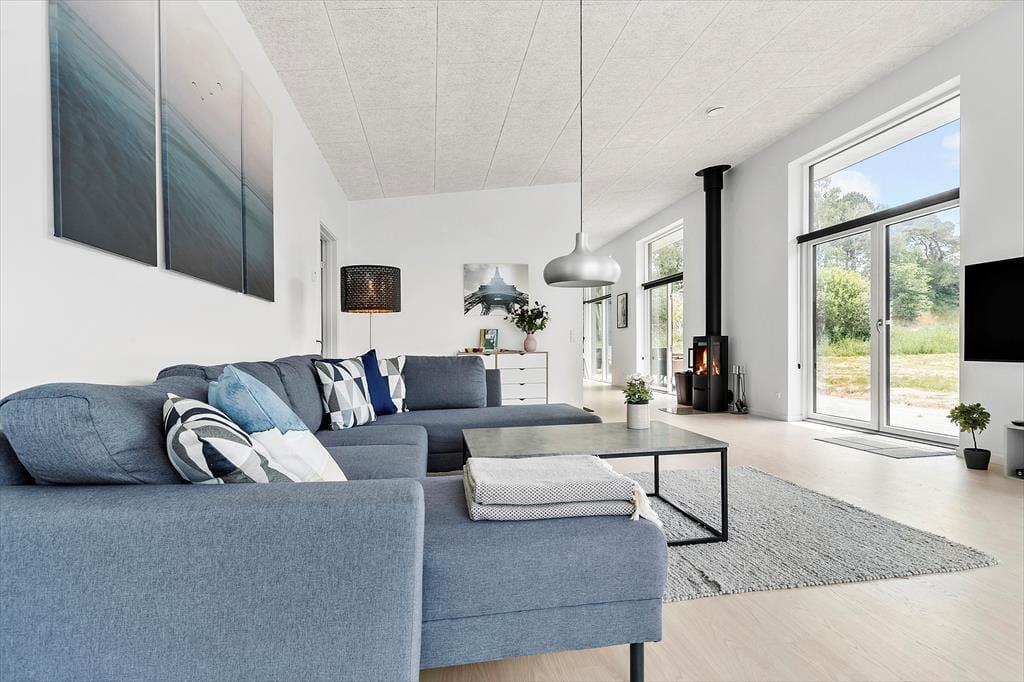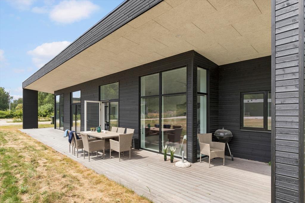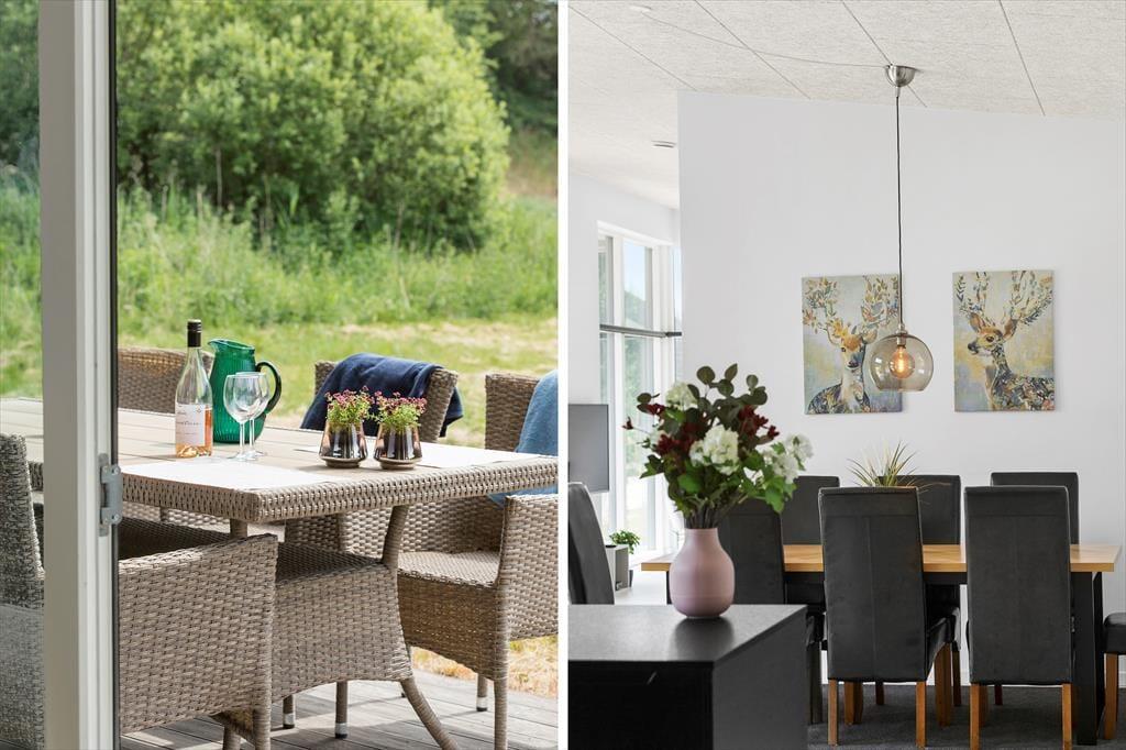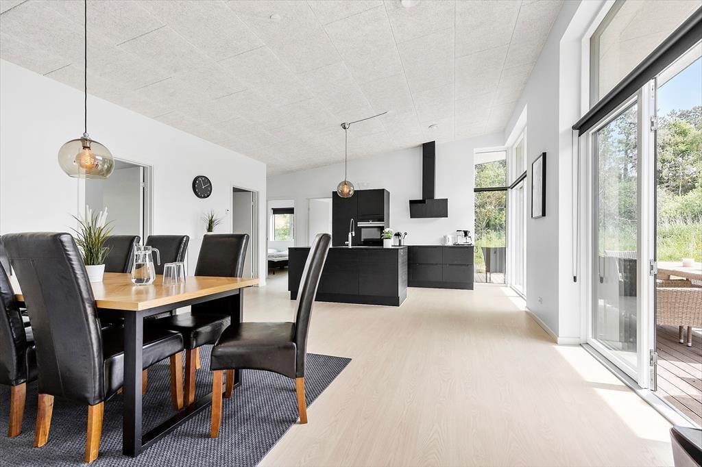 Ikke langt fra Ebeltoft by findes dette flotte, nyere feriehus. Stuen emmer af lys og rummelighed med komfortable møbler og hyggelig brændeovn – perfekt til afslapning efter en dag med oplevelser. Herfra er der direkte udgang til en overdækket terrasse, hvor morgenkaffen kan nydes i ro og fred. Det stilrene og veludstyrede køkken er åbent til stuen og har alt, hvad du behøver – fra opvaskemaskine til indbygget ovn. Huset byder på to elegante badeværelser: Det ene med bruseniche, spa-bad og adgang til sauna, og det andet med bruseniche samt vaskemaskine og tørretumbler. De fire store soveværelser har dobbeltsenge, som kan deles til enkeltsenge, og til de mindste gæster står både høj stol og barneseng klar.