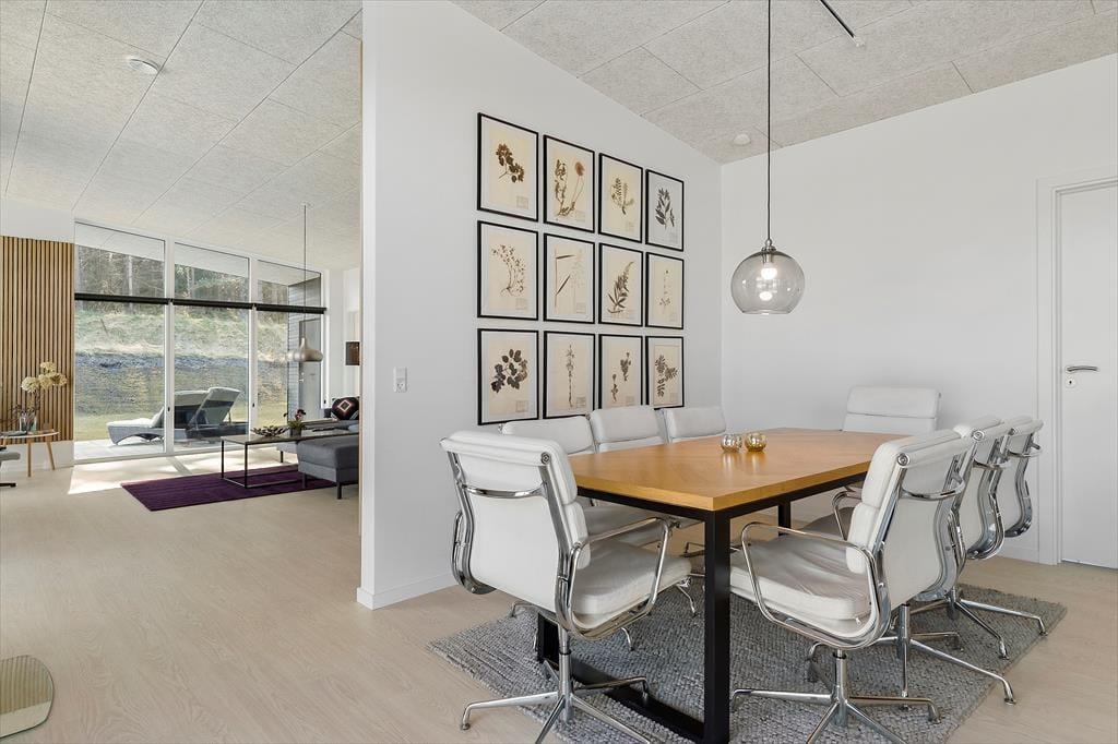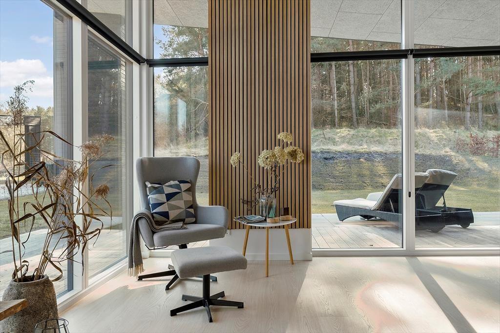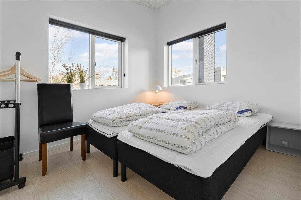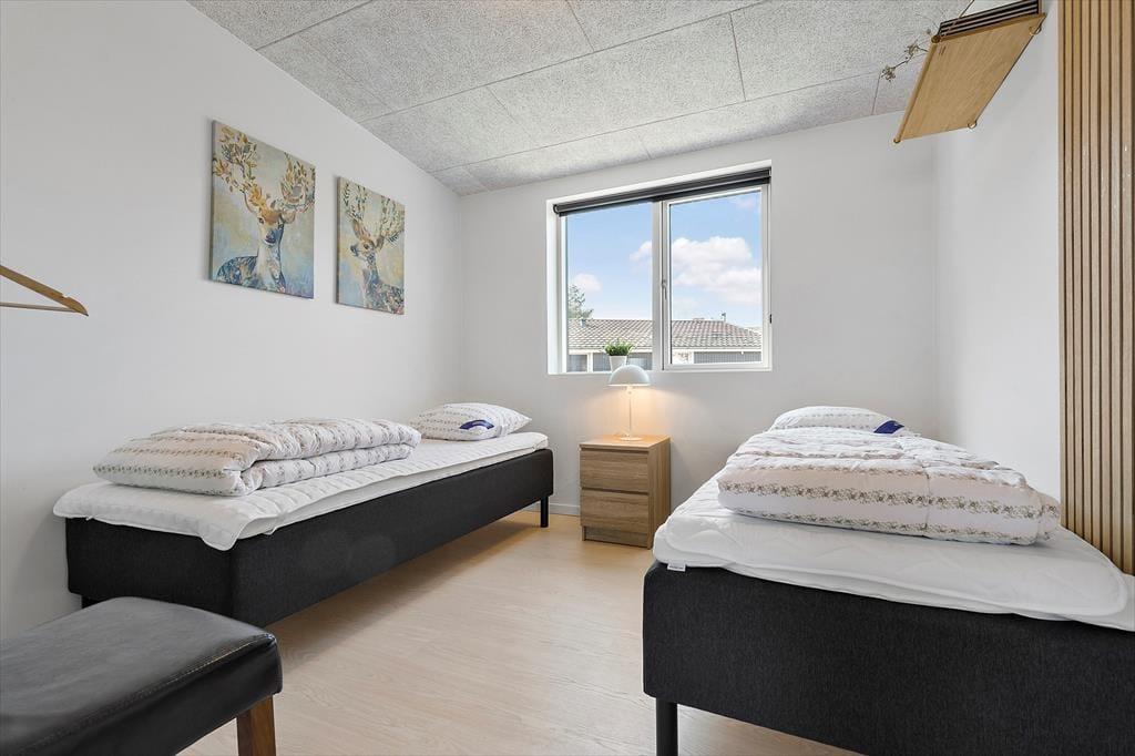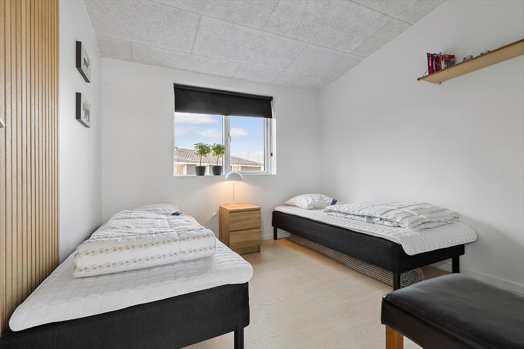 Velkommen til Bækholmen 5 C— et lyst og nyopført feriehus, som rummer plads til 8 personer og evt. jeres firbenede ven . Huset byder på en lys og indbydende stue med komfortable møbler og brændeovn, hvor I kan samles omkring god snak, spil eller en hyggelig film‑aften. Fra stuen har du direkte adgang til overdækket terrasse — perfekt til morgenkaffen eller aftensmaden på grillen. Køkkenet er moderne og veludstyret med bl.a. indbygget ovn, opvaskemaskine og alt du skal bruge for at lave dejlige måltider sammen. Fordelingen over fire soveværelser gør det let at skabe rum både for par, venner og børn, og med to badeværelser — hvor det ene har spa‑bad og sauna — bliver hygge og afslapning sat i højsædet. For de mindste gæster er både høj stol og barneseng klar.