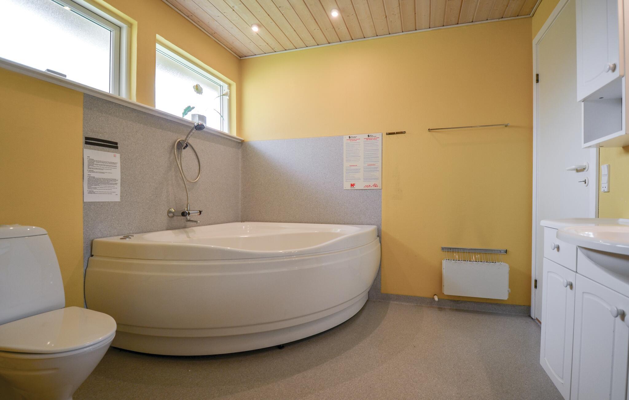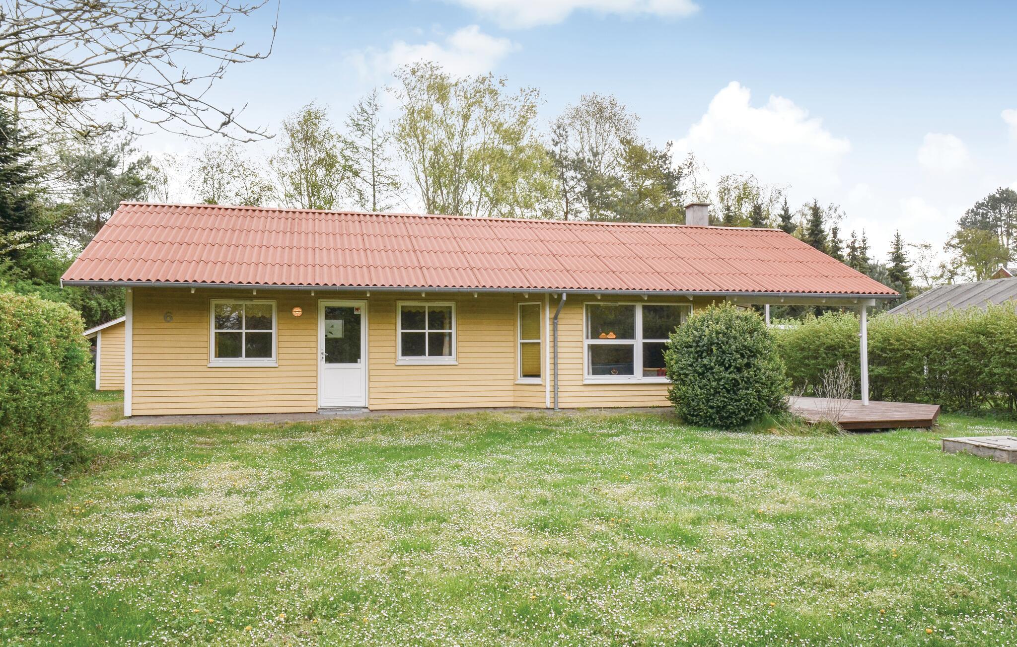 Hyggeligt feriehus nær Vibæk Strand med spabad, sauna og plads til udendørs aktiviteter.