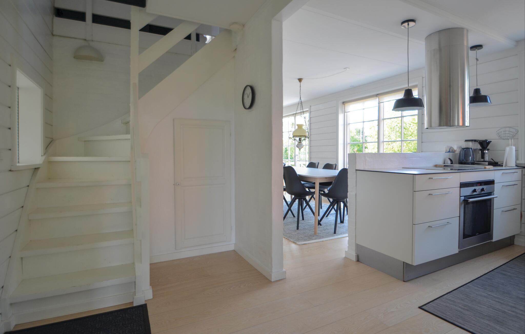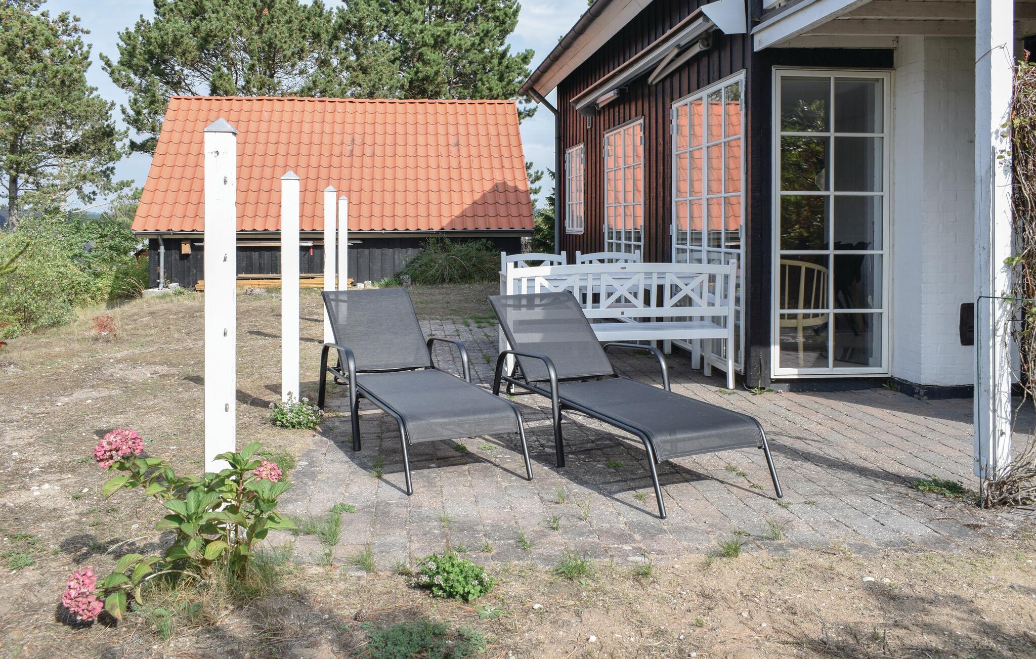Flot træhus med havudsigt nær Vibæk Strand