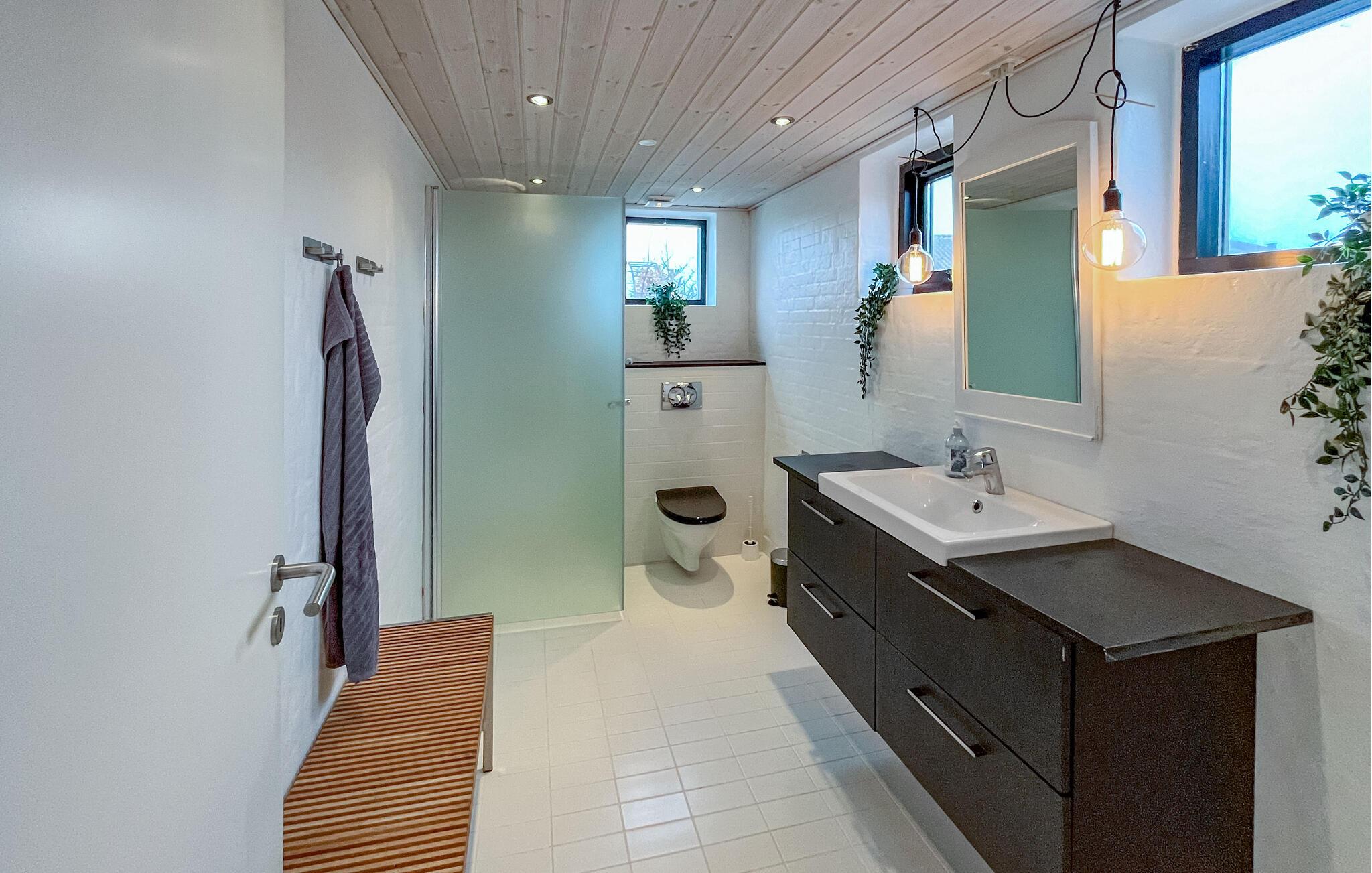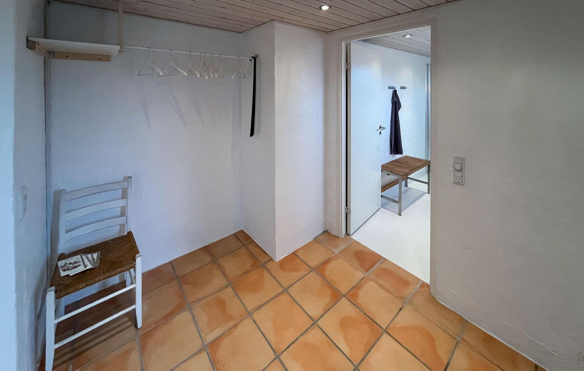 De rummelige stuer med hjemlig indretning giver hele familien masser af plads til at slappe af. De åbne hemser skaber en hyggelig og luftig atmosfære, mens det veludstyrede køkken lægger op til at give sig god tid til fælles madlavningsprojekter. Der er flere terrasseområder rundt om huset, så I har mulighed for at dække op til dagens måltider i sol eller skygge alt efter behov. En skøn vej til selvforkælelse er at veksle mellem koldtvandskarret og saunaen. Nærheden til stranden gør dette hus til et herligt sted at sætte hverdagen på pause og bare nyde roen og omgivelserne.