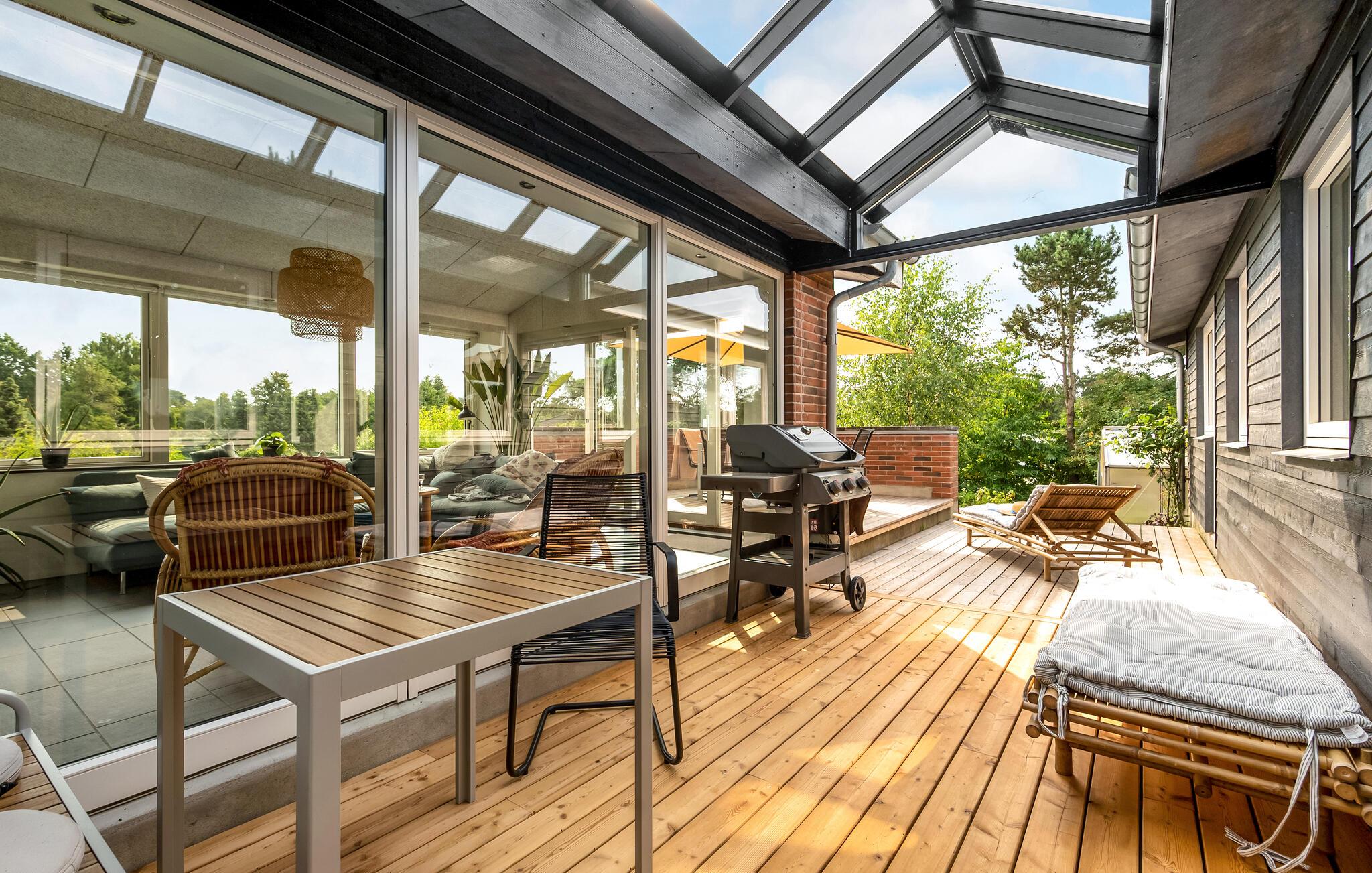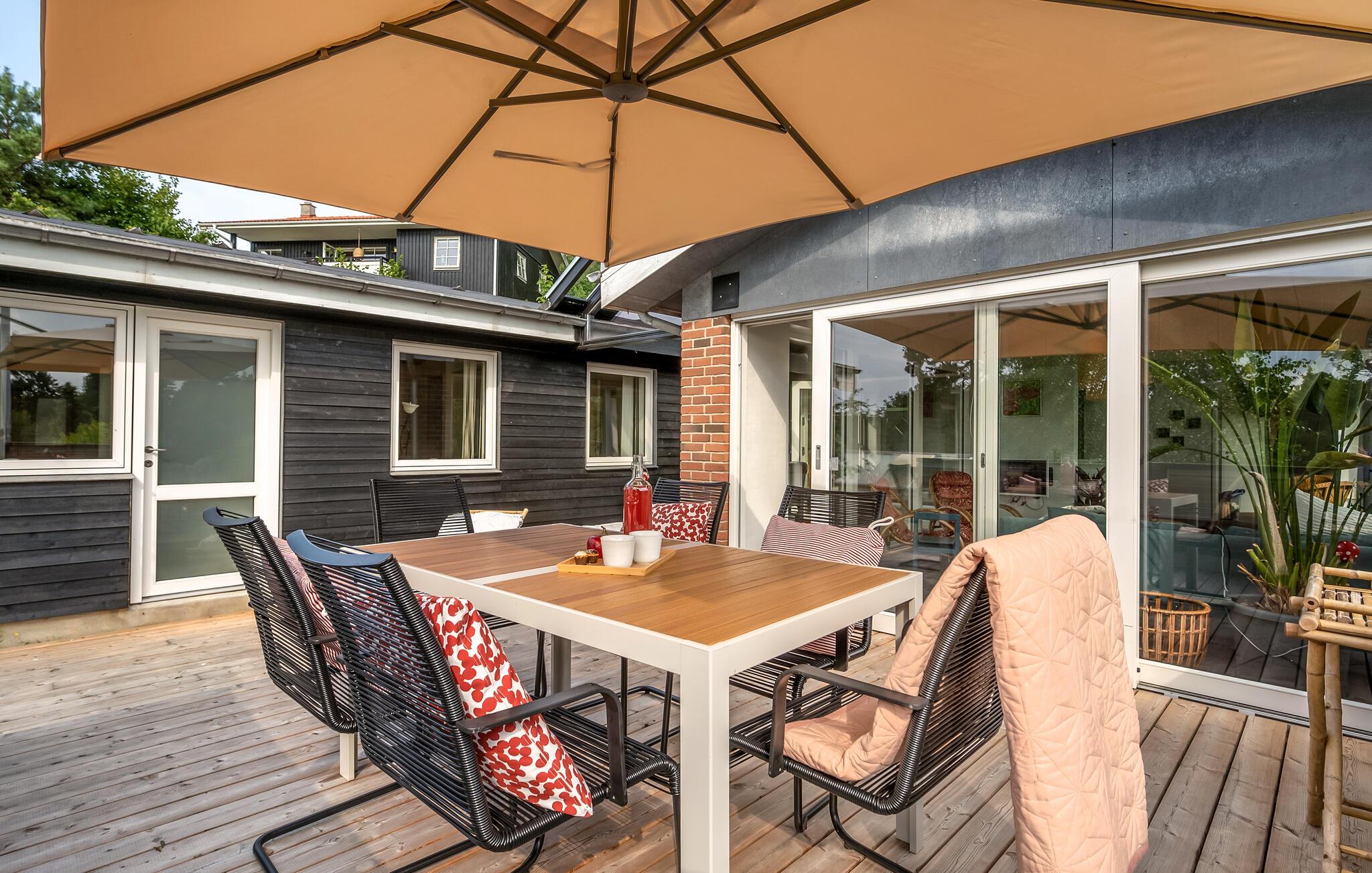 Feriehuset er flot og indbydende, indrettet med en stilsikker hånd, der fremhæver husets karakter. I kan se frem til en rolig, nordisk farveskala med mange træelementer, så I får følelsen af, at de naturskønne rammer fortsætter indendørs. På kølige dage kan I tænde op i brændeovnen.