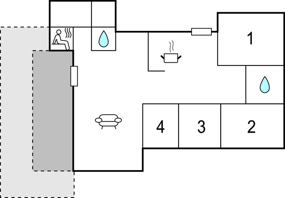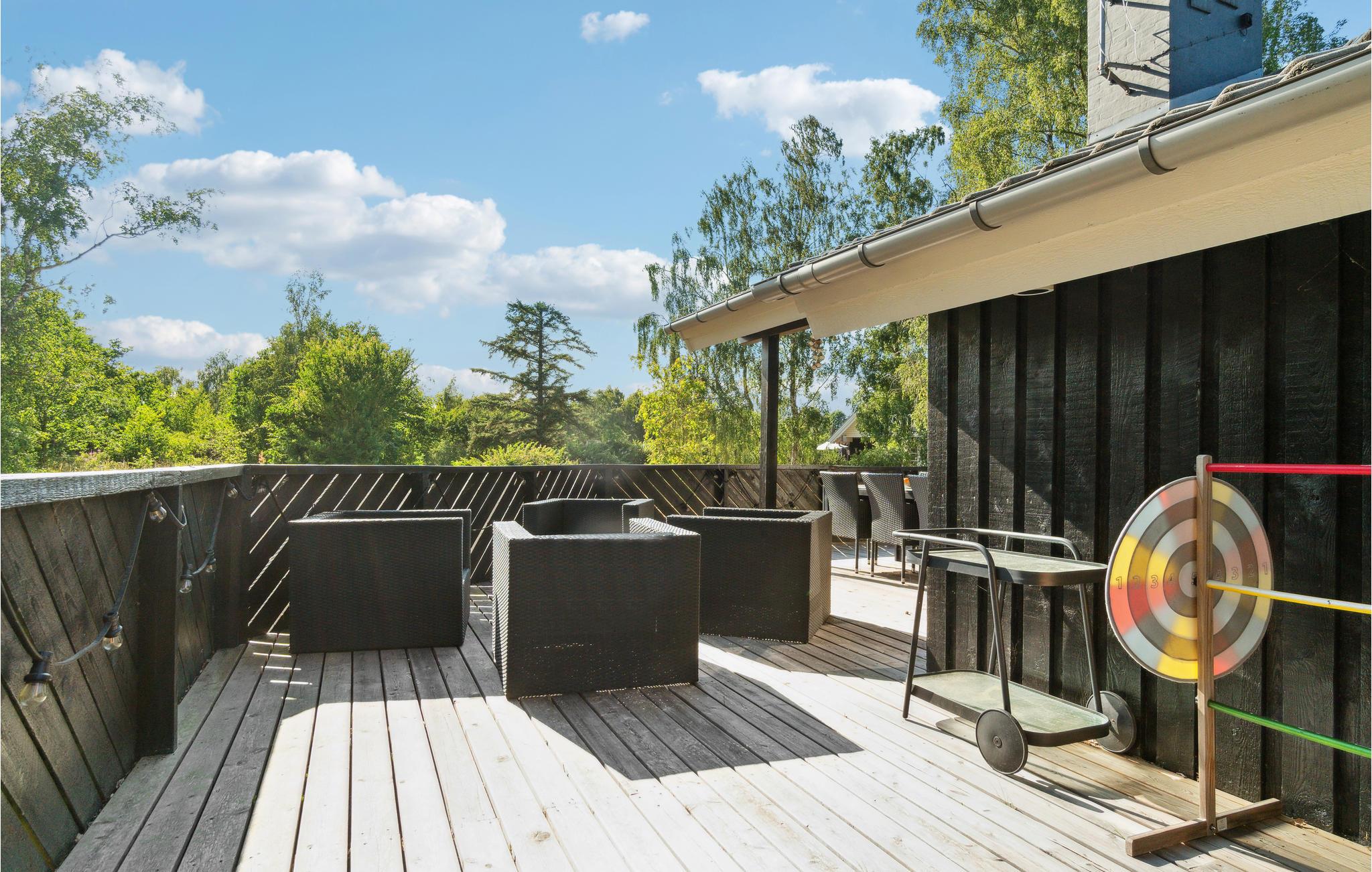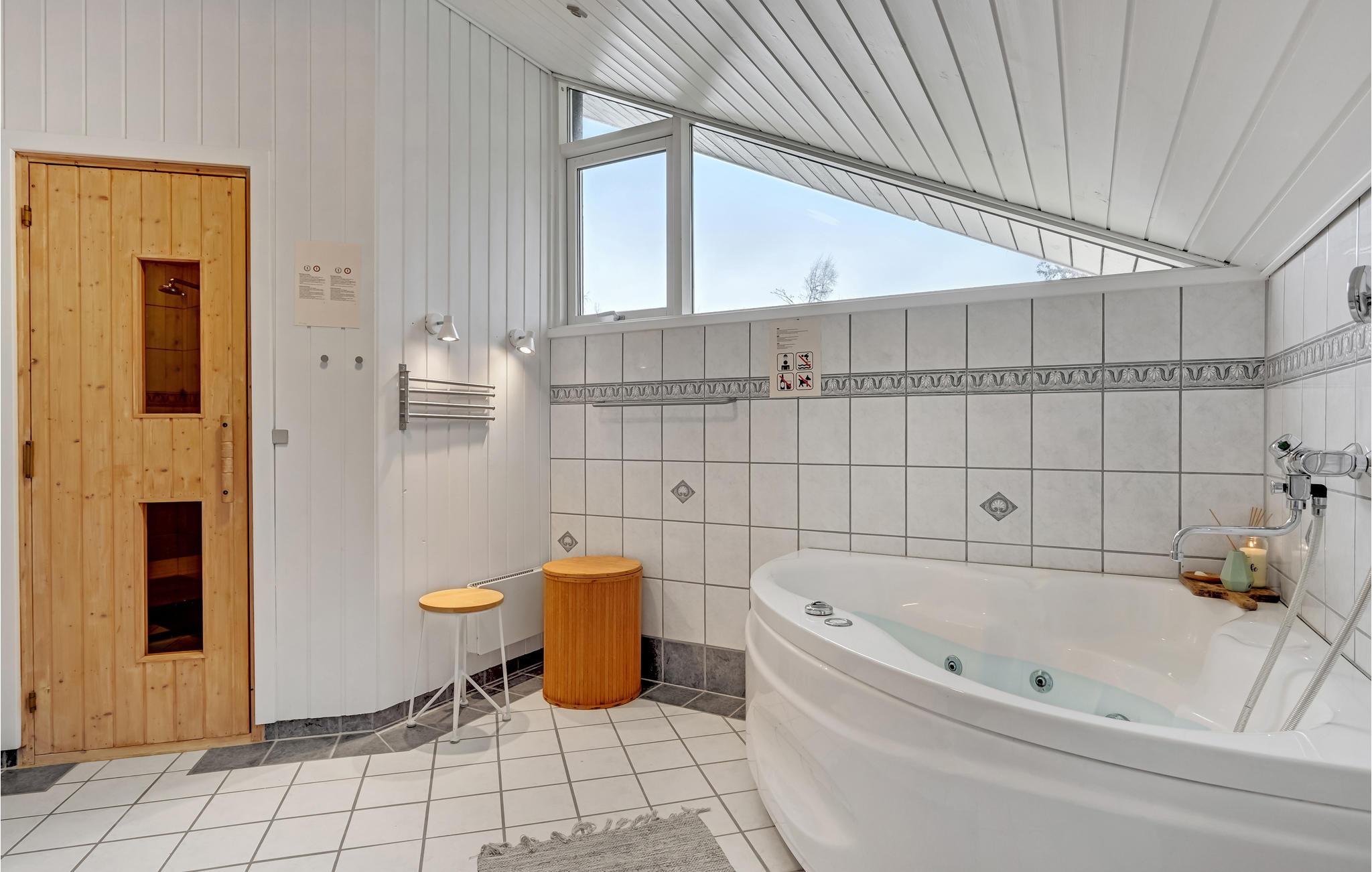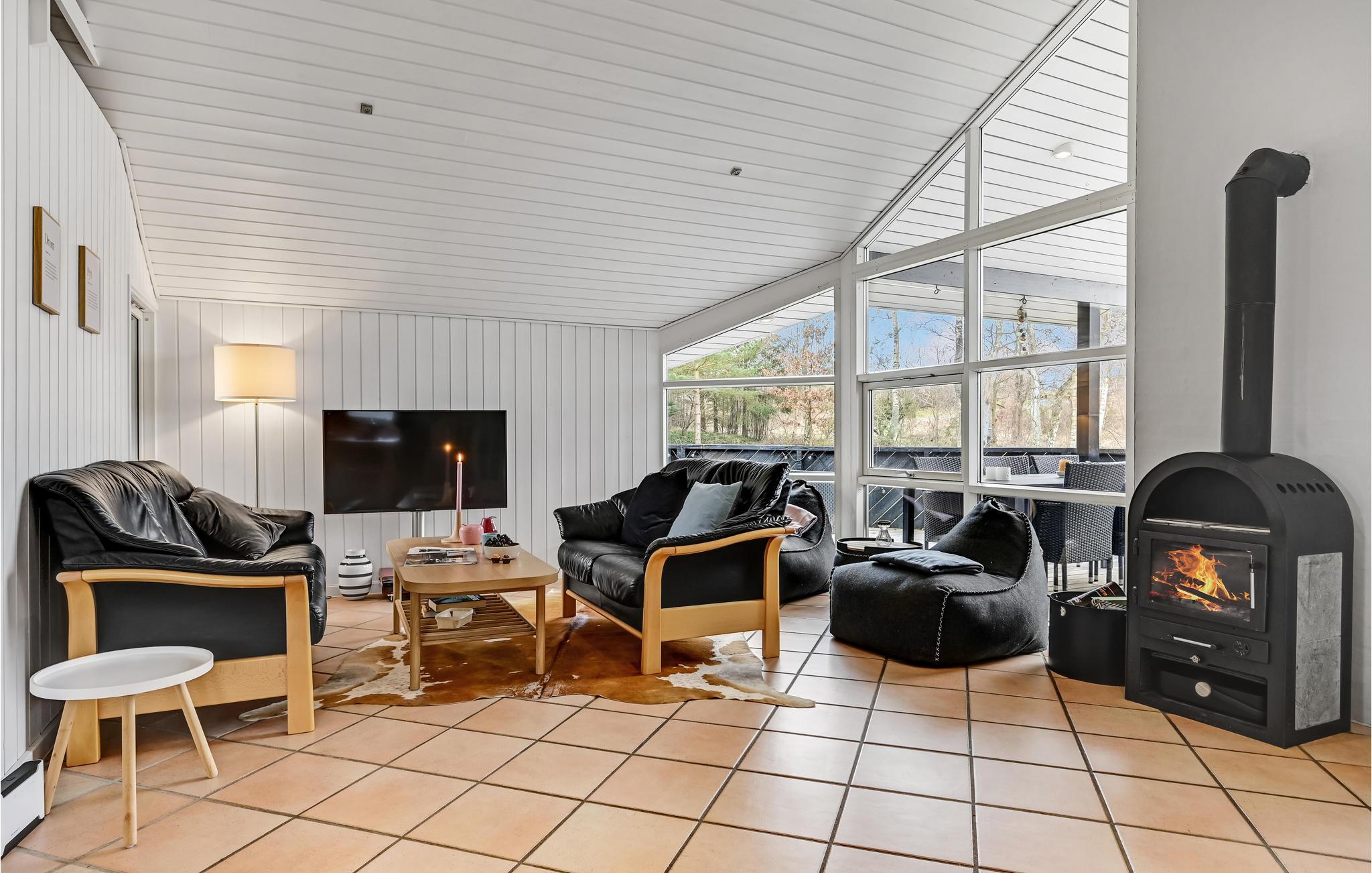 Her er der god plads og helt igennem skønne rammer til den store familie. Nyd hyggestunderne sammen i det store, lyse opholdsrum, som kombinerer køkken, spisestue og dagligstue og derfor fyldes med alverdens aktiviteter i løbet af dagen. Mens børnene kan kaste sig over legetøjet og børnebøgerne, kan I læne jer tilbage i spabadet eller glemme alt om hverdagens travle program i saunaen. Den afskærmede terrasse bliver jeres foretrukne sted at tilbringe de lyse sommeraftener, hvor I sikkert helst vil sidde ude i solen og grille. Når mørket falder på, kan I samles omkring bålet og riste skumfiduser eller bage snobrød.