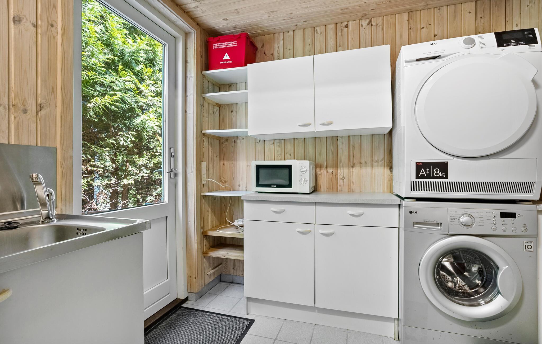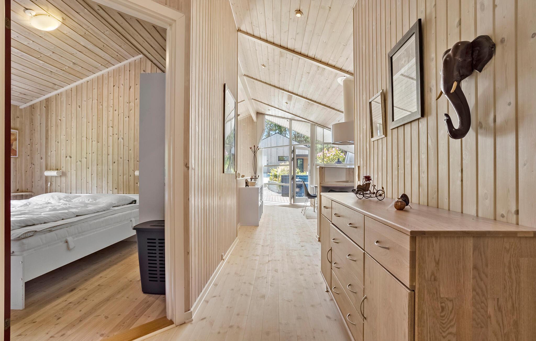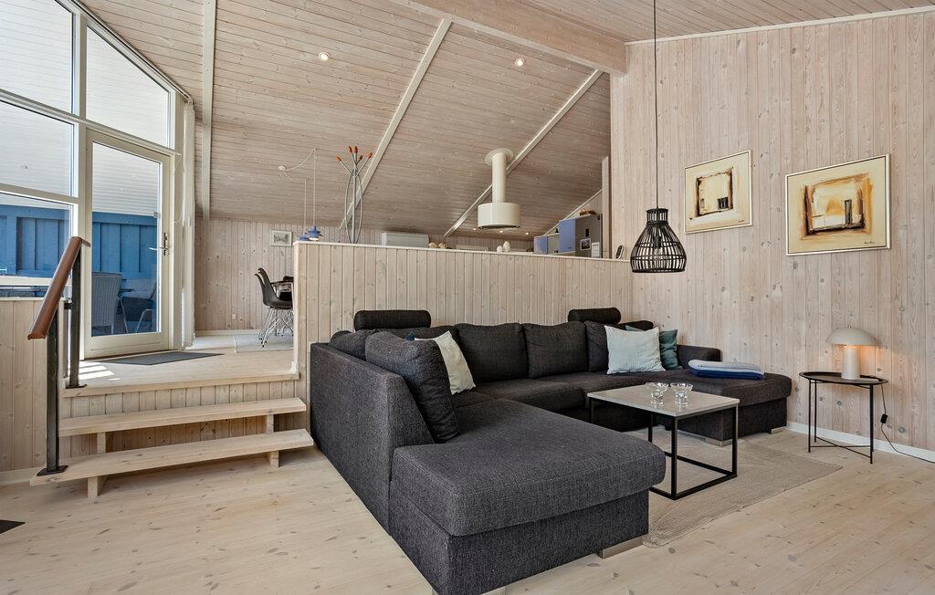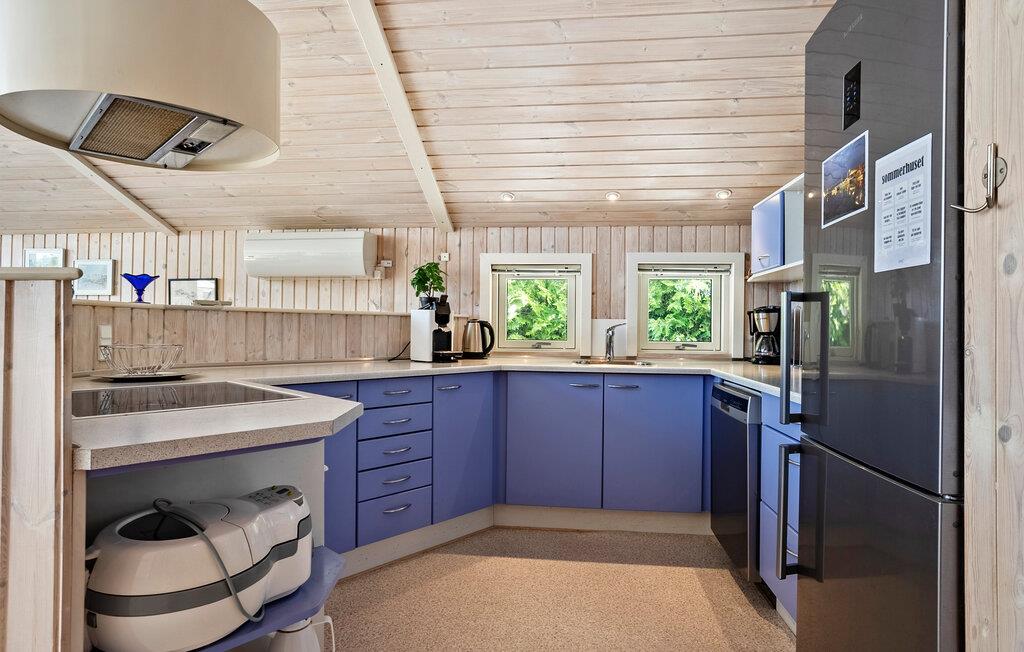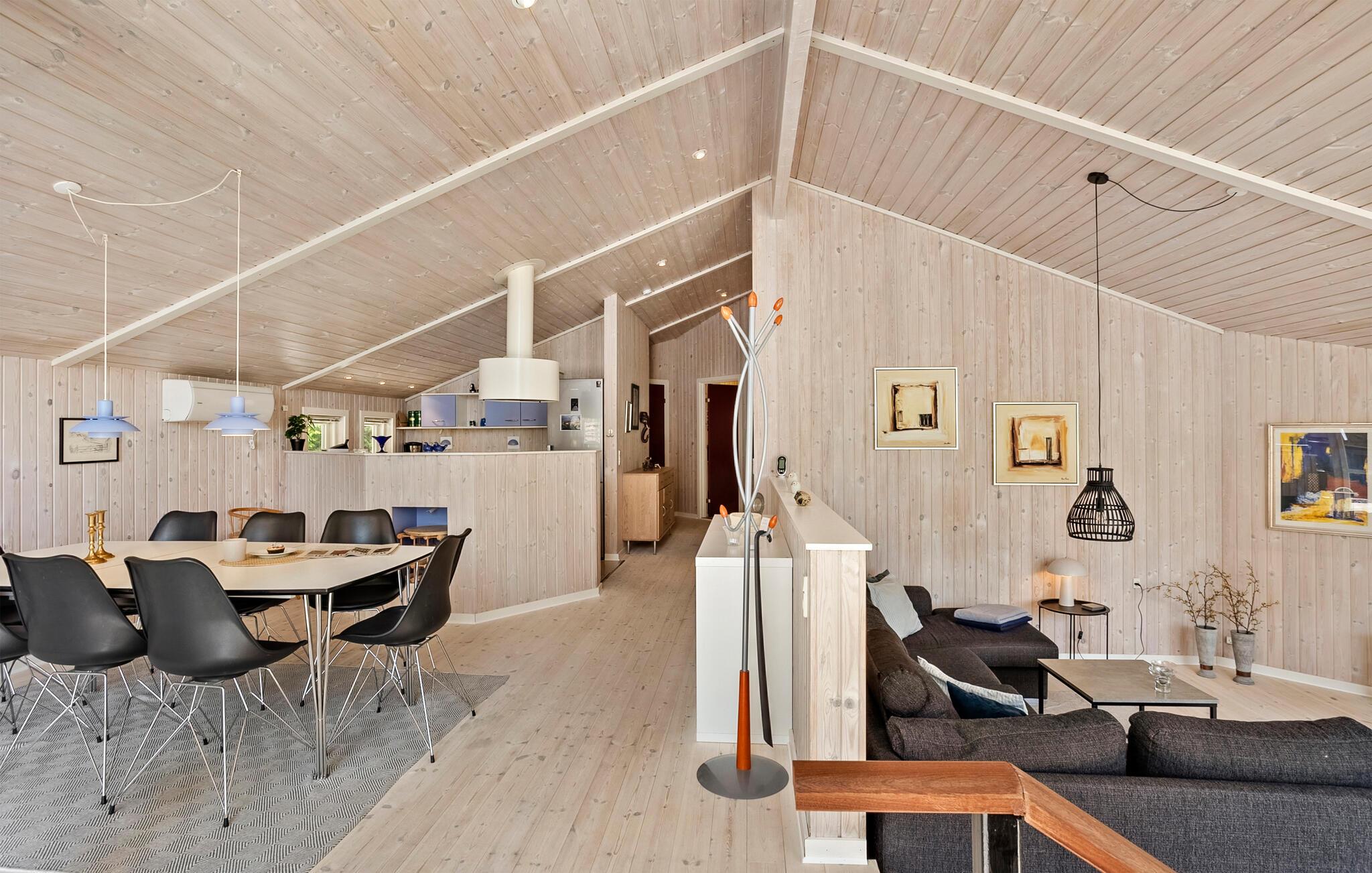 Dette lyse og rummelige feriehus byder jer velkommen med sin smagfuldt møblerede indretning og lover afslappende feriedage med familien, omgivet af en fredelig grøn oase. Glæd jer til lækre feriemåltider ved det stilfulde spisebord, lyt til den blide knitren fra pejsen, mens I slapper af med en bog, og hyg jer sammen i den behagelige sofa til ved sjove spilleaftener eller spændende samtaler over et glas vin.