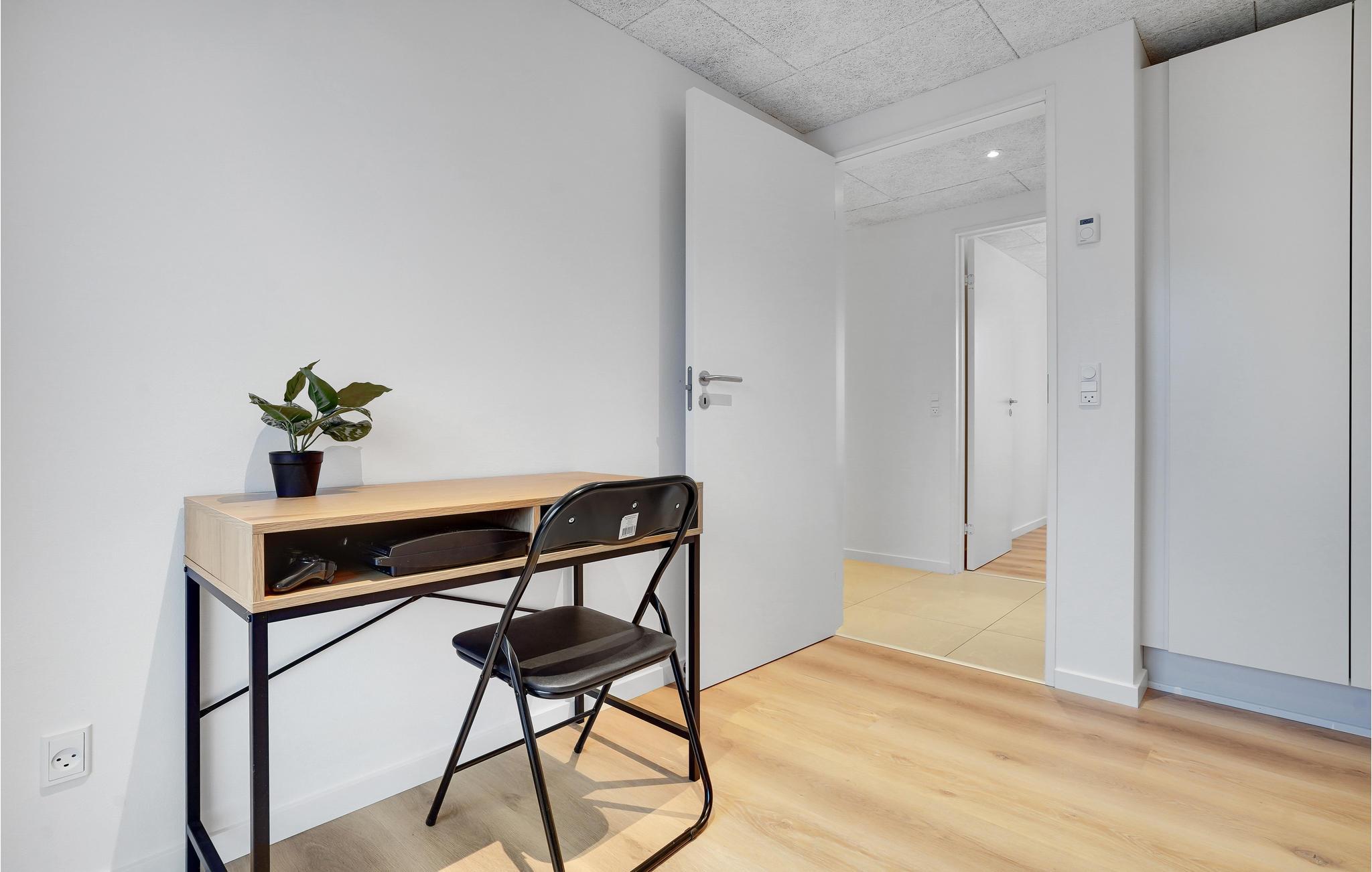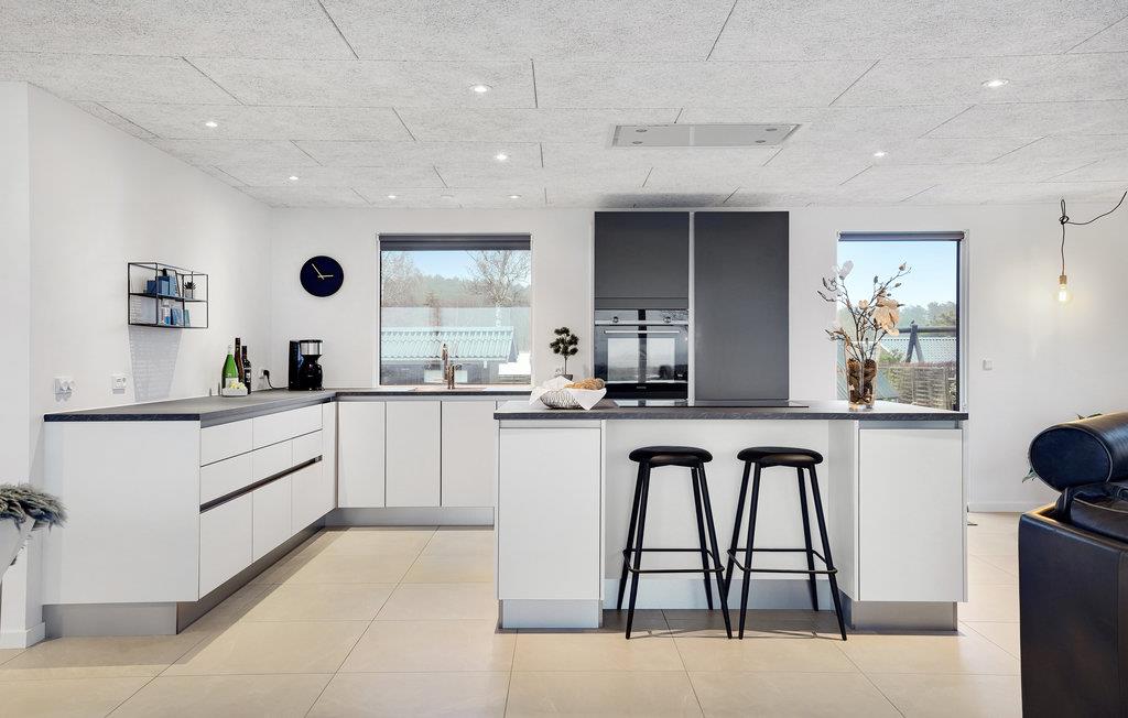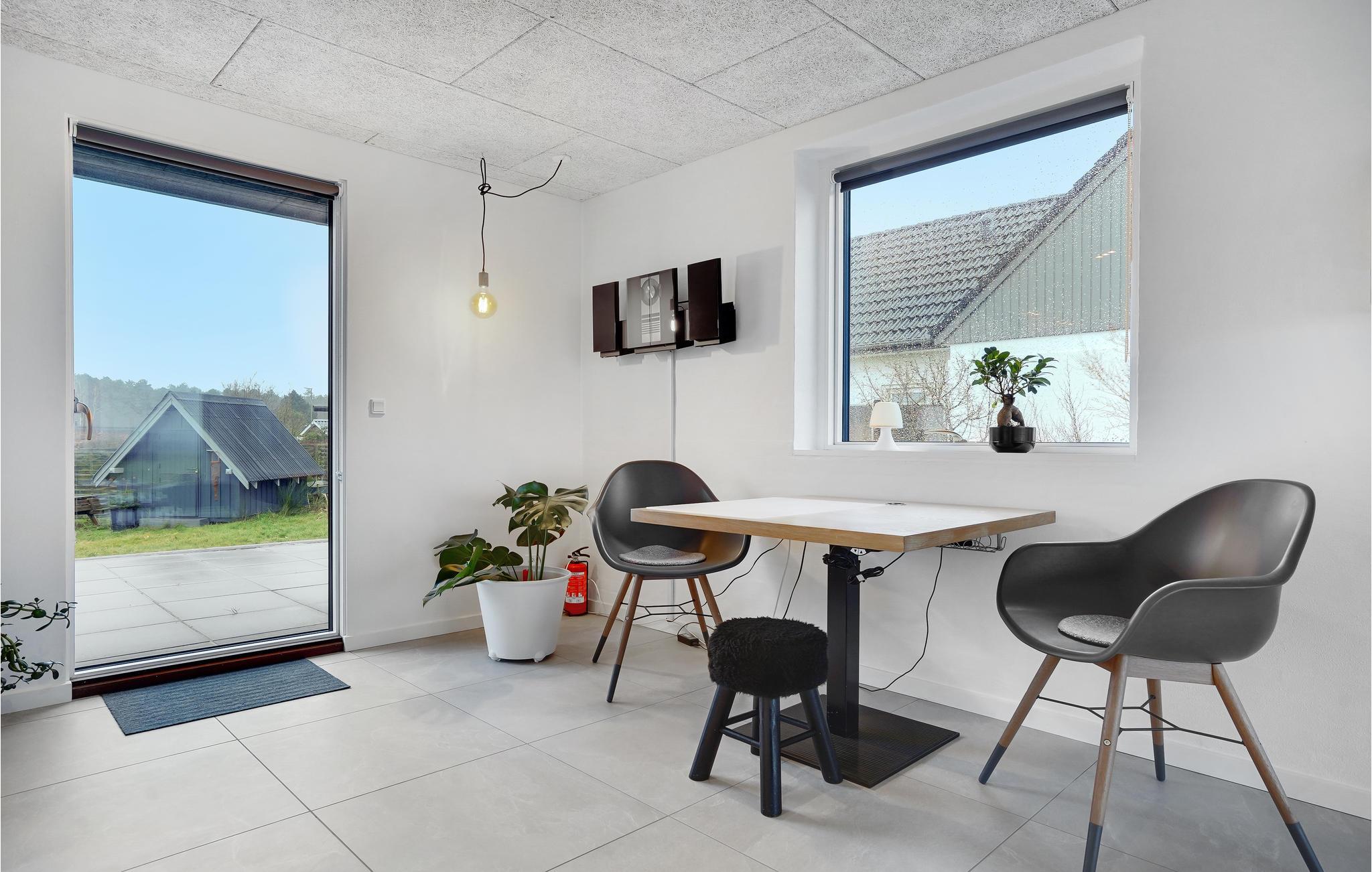 Dette sommerhus ligger kun få meter fra stranden og havet, ideelt til en ferie med lange gåture på stranden og dejlige dage ved havet. Hvis I skulle få brug for at arbejde undervejs på ferien, kan I sidde komfortablet ved hæve/sænke-bordet, her er også en god fibernetforbindelse.