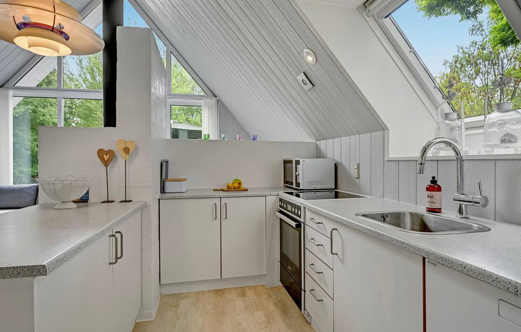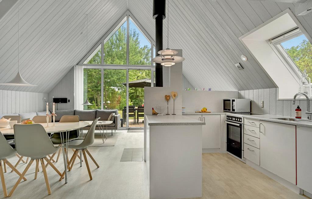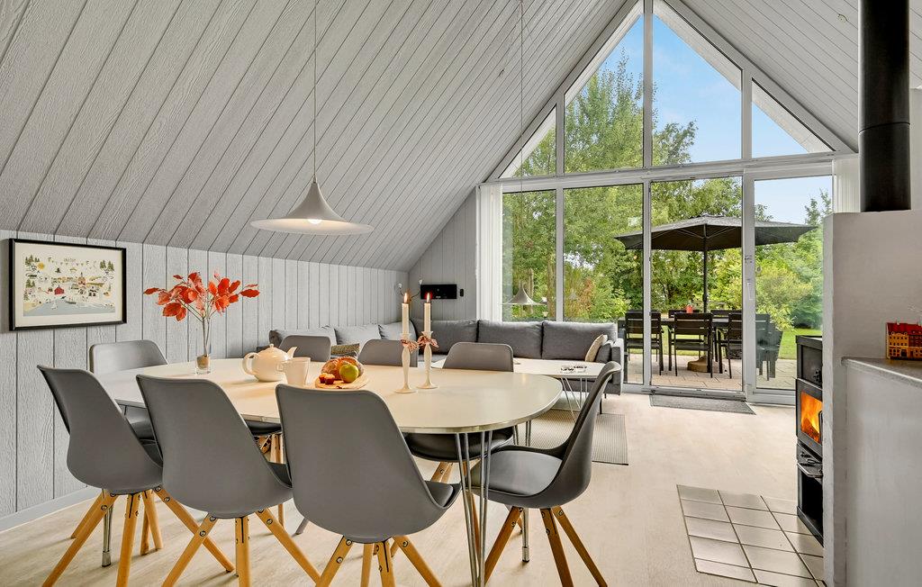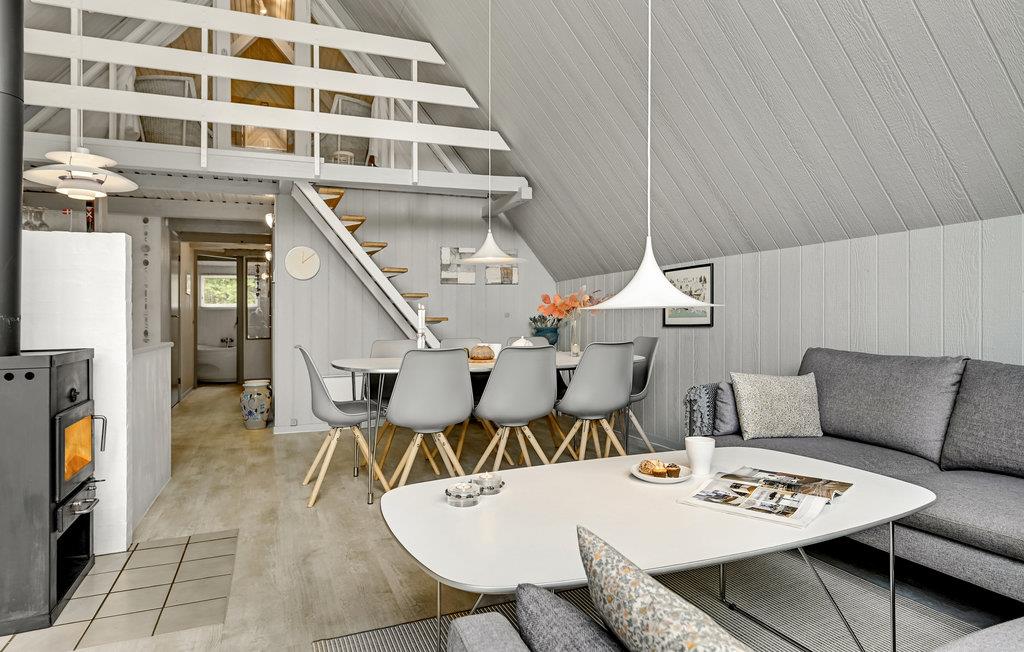 Der er kun 3 km til Ebeltoft centrum, hvortil der er gode busforbindelser. Huset ligger på en plan grund. Det er komfortabelt og hyggeligt indrettet og indeholder mange attraktive faciliteter som sauna og spabad, der er med til at gøre ferien ekstra behagelig. På 1. sal er der desuden et ekstra tv. Dette dejlige feriehus har plads til to familier.