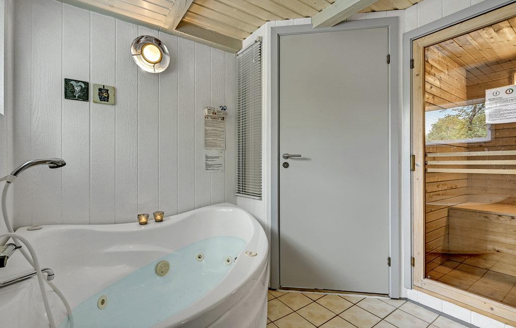 Hyggeligt feriehus ved Vibæk Strand med sauna, spabad og nær strand, perfekt til to familier.