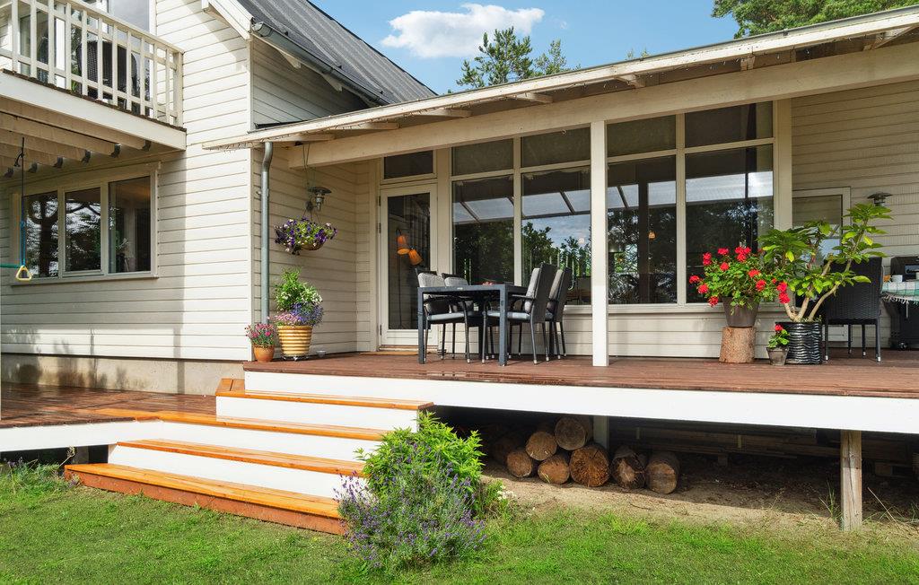 Med til huset hører en klassisk veranda, hvor I kan nyde solskinsdagene, mens børnene springer om kap på trampolinen eller spiller fodboldkamp.