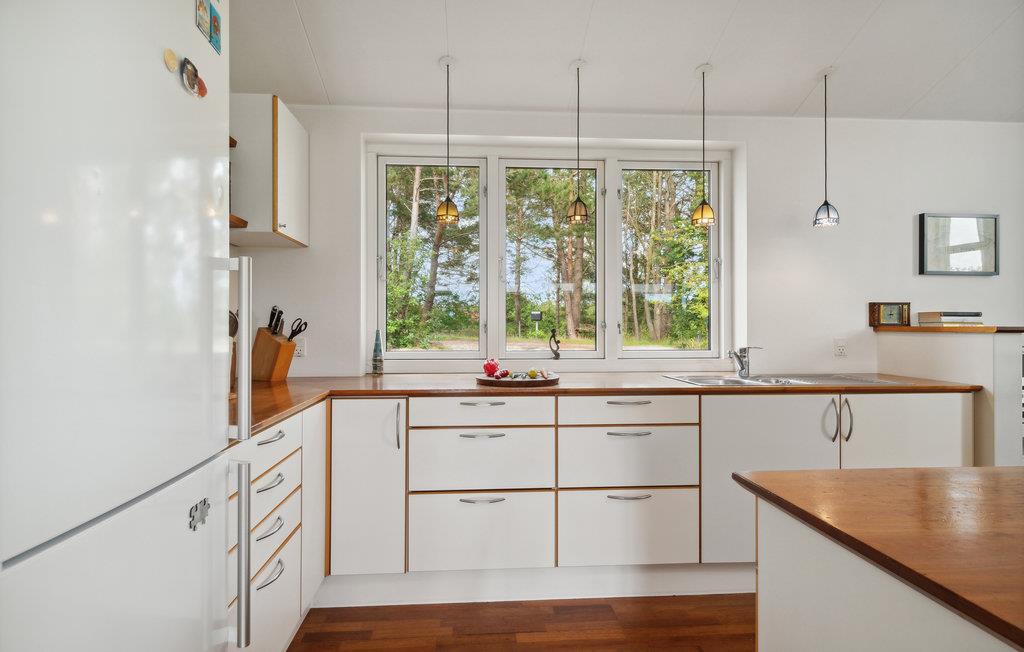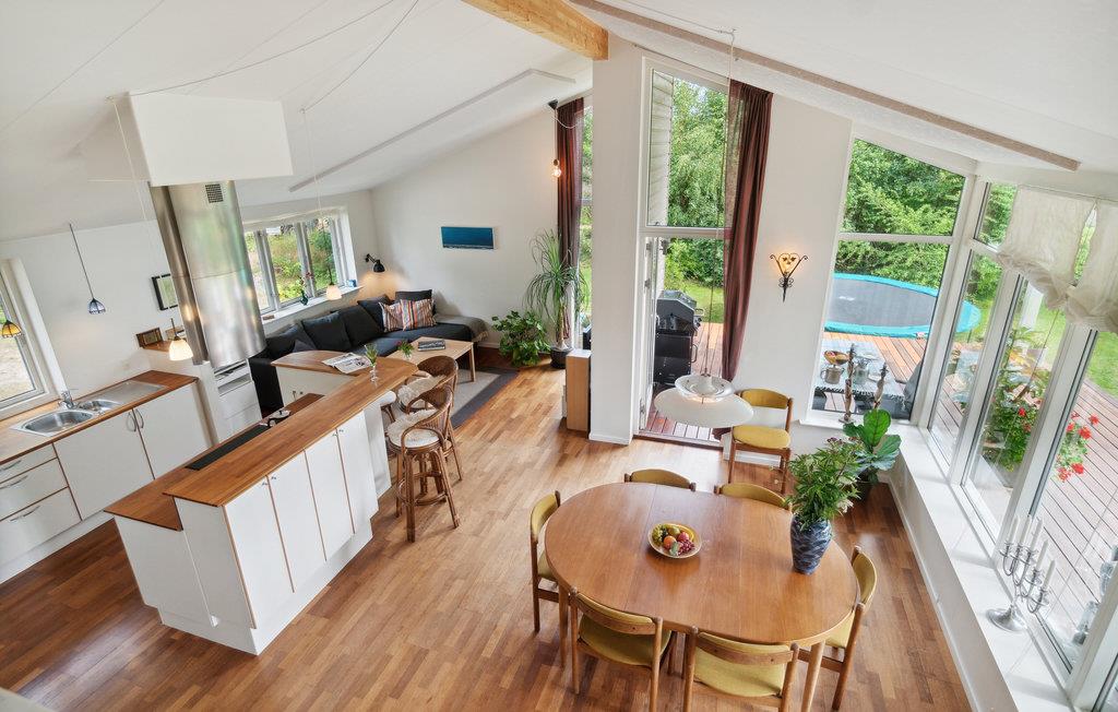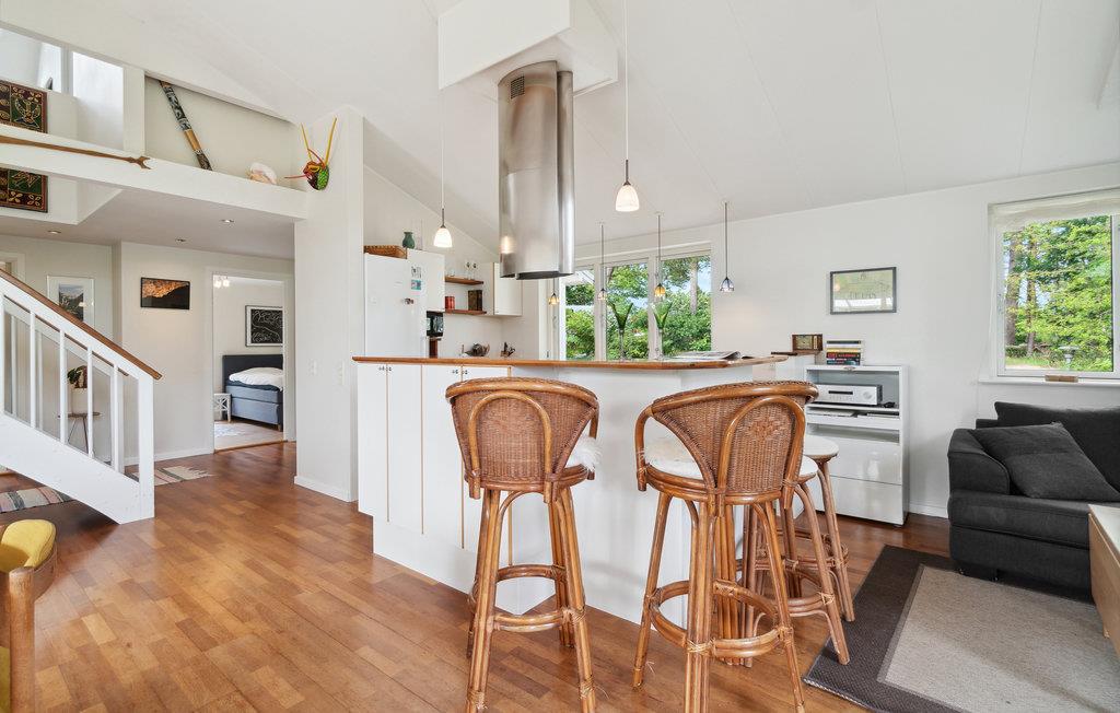 Dette charmerende feriehus ligger i smukke, grønne omgivelser nord for Ebeltoft. Her flytter I ind i en lys og tiltalende bolig med lyse rum og indretningsløsninger i naturfarver, der passer til husets stil. Tilbring hyggelige stunder med familien i stuen og nyd udsigten til haven, mens I klarer madlavningen eller slapper af i sofahjørnet. I kan vælge mellem alt fra et klaver til Playstation, legetøj og streamingmuligheder, når I vil kaste jer over hyggelige aktiviteter, så det ikke ud til, at nogen kommer til at kede sig.