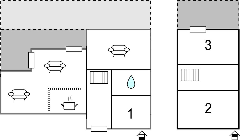 Soveværelse (nr. 2) - 1 Soveplads. (Enkeltseng(e)). 2 Sovepladser. (Sofa, madras eller lignende).