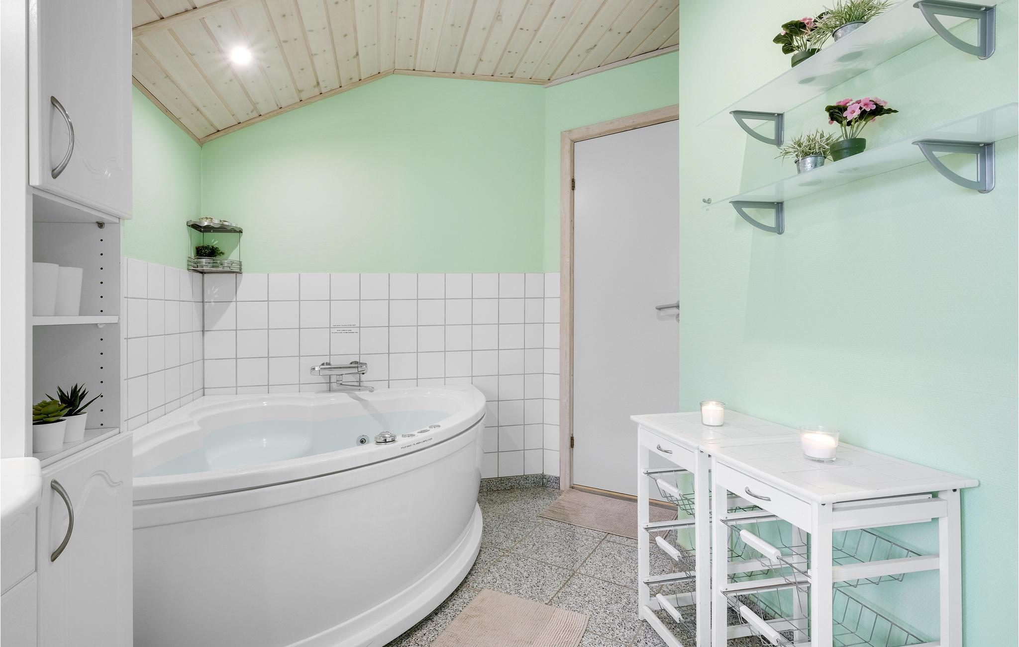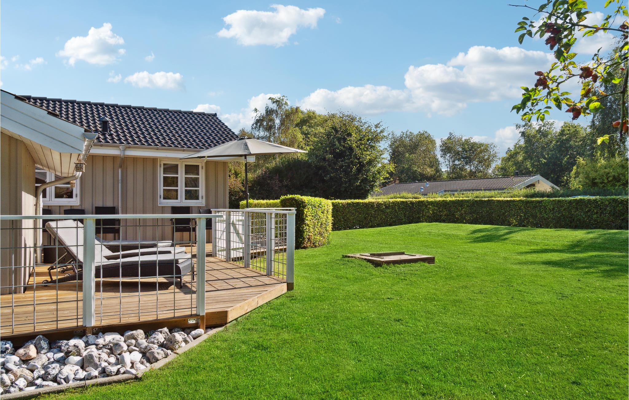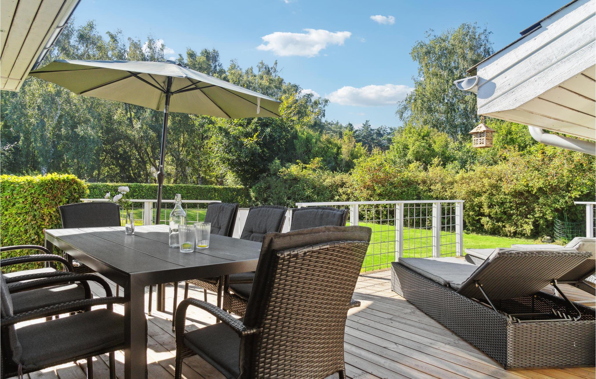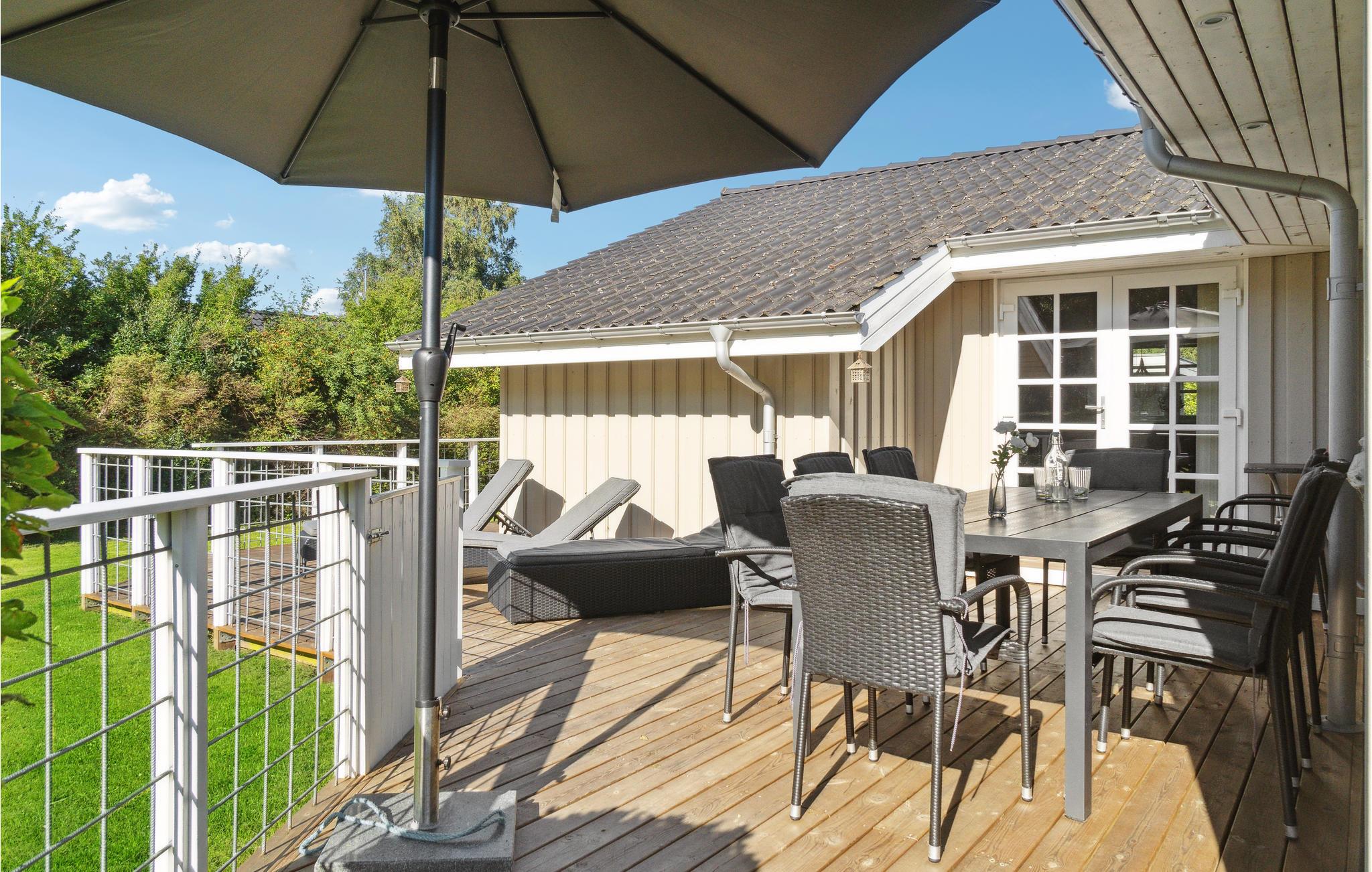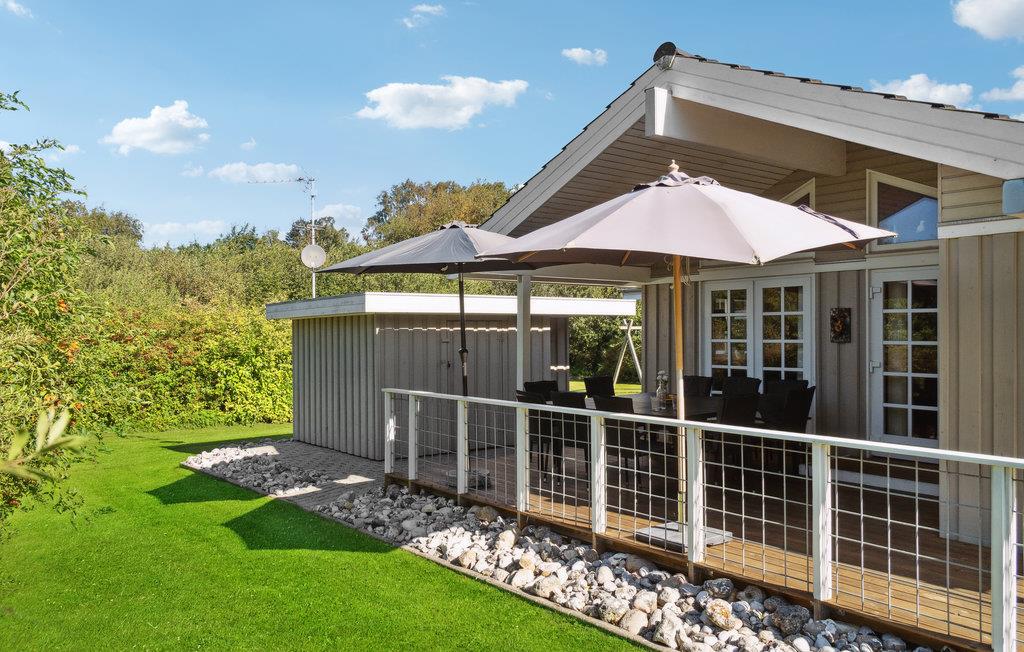 Charmerende feriehus nær Ebeltoft med stor terrasse, sauna og spabad, ideelt til familier hele året rundt.