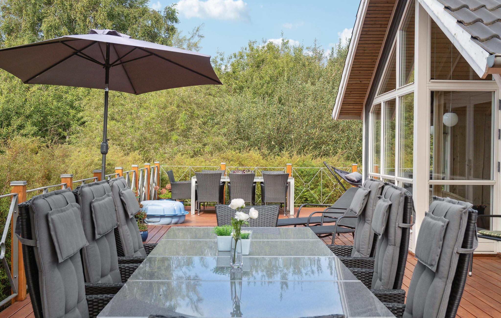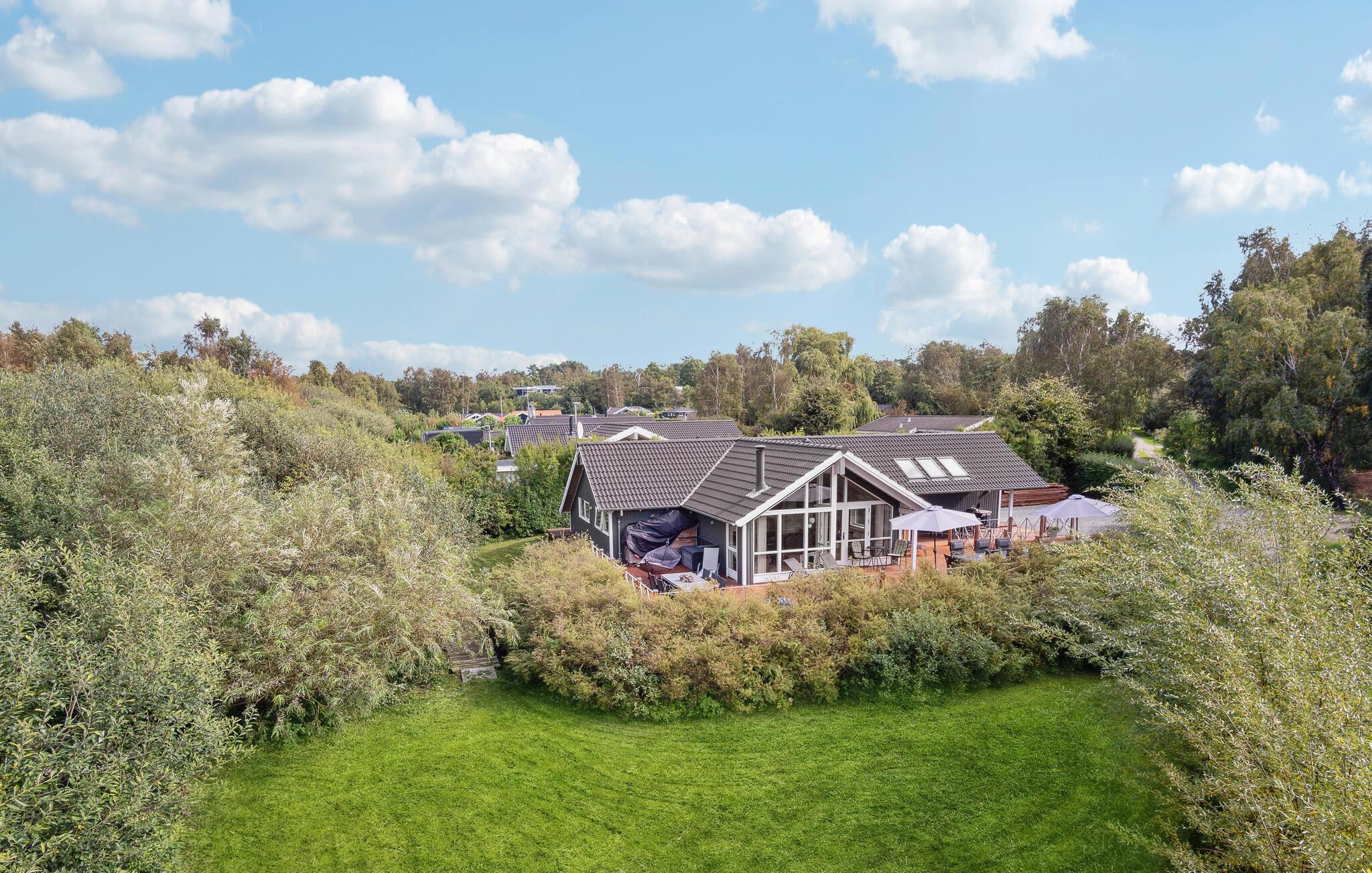 Smagfuldt indrettet feriehus med mange fine detaljer. Det er lyst og overalt hersker der en venlig atmosfære samtidig med, at der er lagt vægt på god kvalitet, hvad byggematerialer som inventar angår. Da der er to gode badeværelser og fem gode soveværelser, er huset velegnet til en stor eller to familier. Huset ligger på en plan grund med græsplæne, læfuldt og for enden af en stille sommerhusvej. Via et stisystem har I nem adgang til såvel stranden som Ebeltoft by. Nærheden til byen og stranden gør et ferieophold til en dejlig oplevelse uanset årstid.