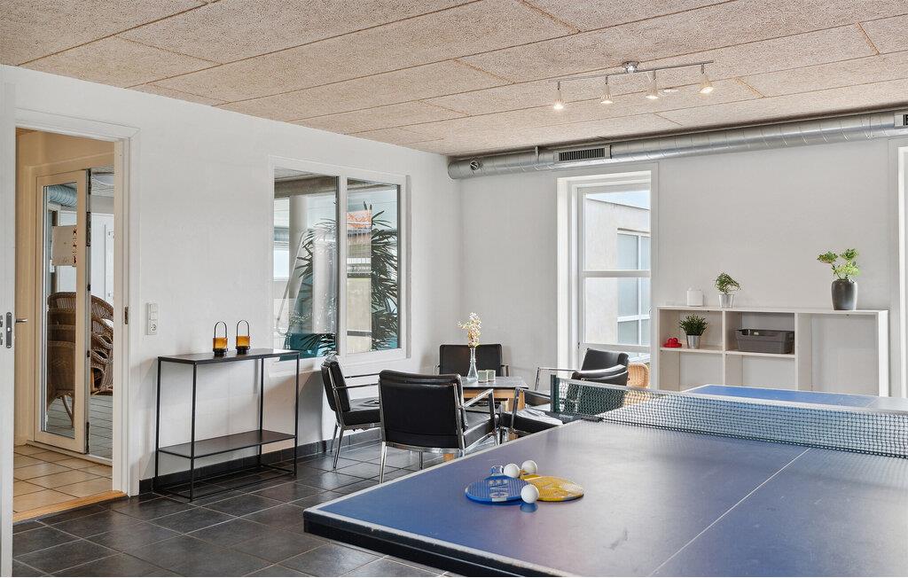 Dette fantastiske tre-etagers hus ligger i vidunderlige Mols Bjerge tæt på Ebeltoft og er en sand drømmebolig for en stor familie eller flere familier, der gerne vil på ferie sammen. Huset byder på mange komfortable soveværelser og en hems, så her er alle muligheder for at finde roen efter en herlig feriedag. På første sal finder I den rummelige stue, hvor de komfortable møbler indbyder til hygge og samvær ved brændeovnen på de kølige dage. Fra stuen er der en skøn udsigt over Ebeltoft Vig og til Fregatten Jylland. Husets indretning emmer af både komfort og varme, der understreges af de behagelige farveskalaer, der skaber en rolig og behagelig atmosfære. I de to aktivitetsrum finder I et rigt udvalg af muligheder, herunder bordtennis, bordfodbold, airhockey eller dart. I poolområdet venter jer både en vandrutsjebane og lidt lækker wellness i spabadet og saunaen.