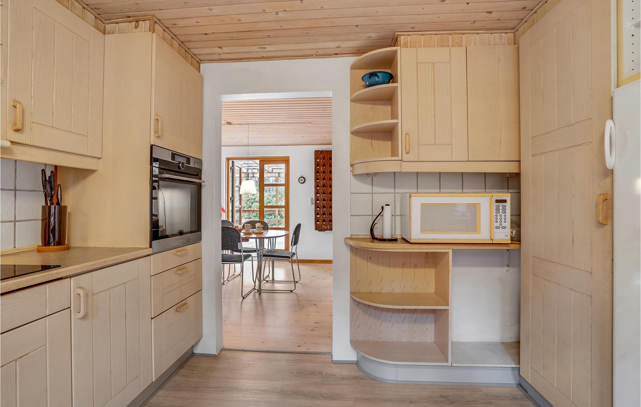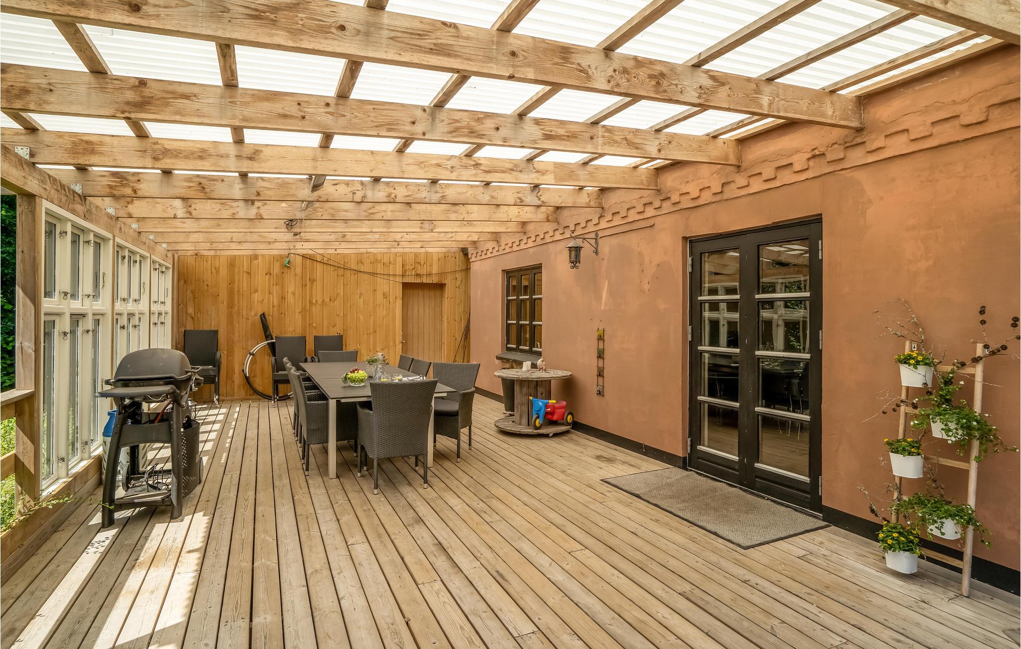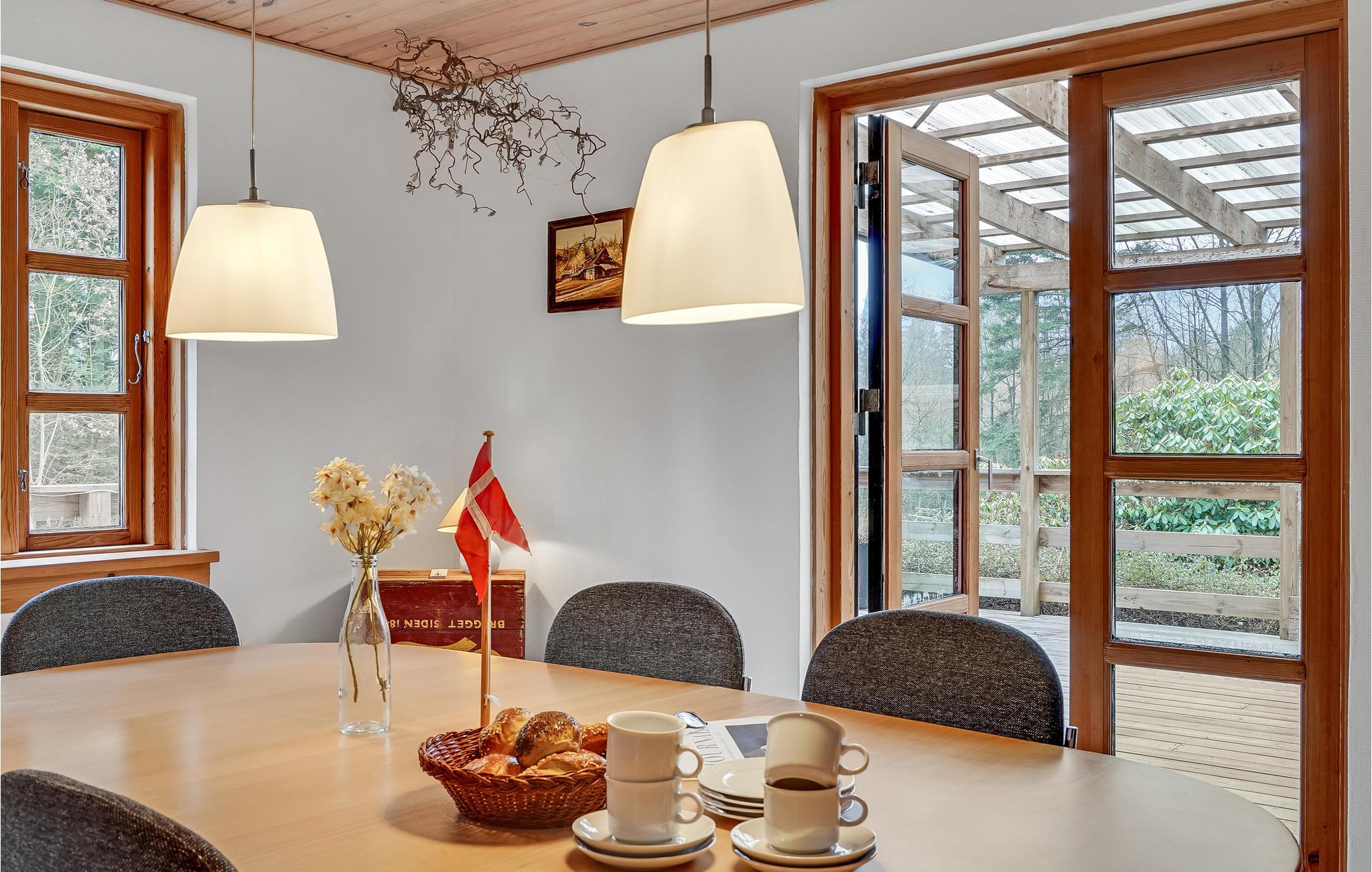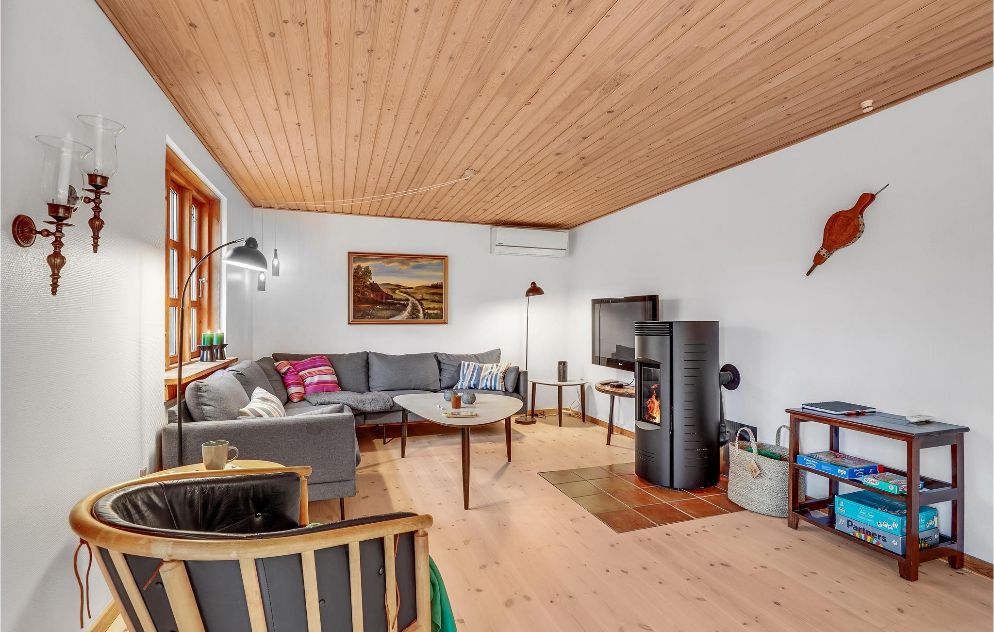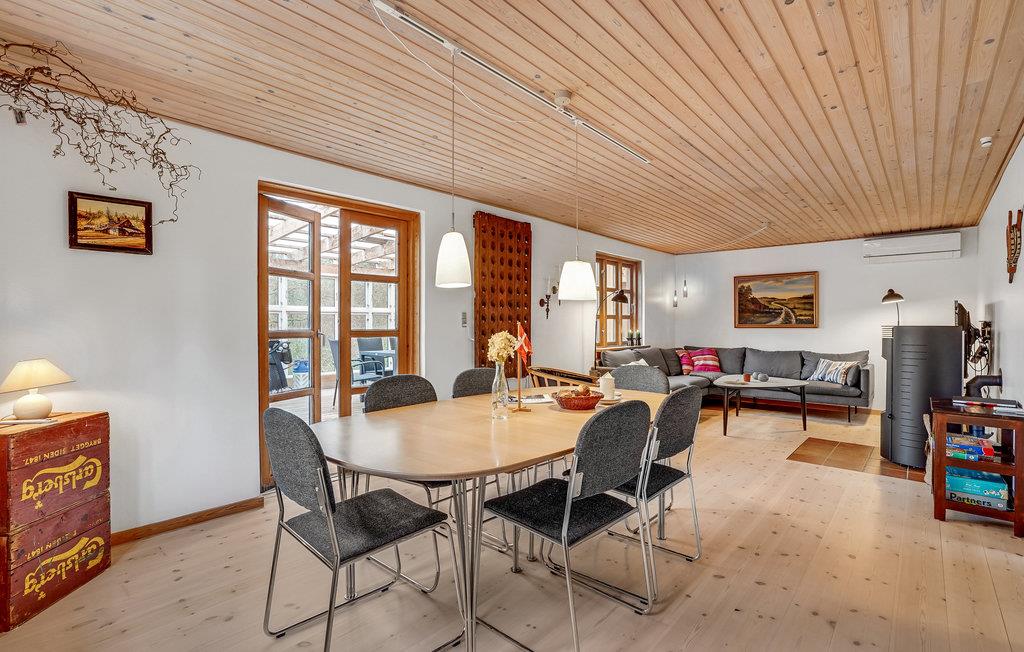 Velkommen på denne fredfyldte grund, hvor denne hyggelige ferievilla ligger placeret. Her kan I se frem til en hyggelig ramme om de rolige stunder, når I vender hjem fra dagens eventyr. Nyd dagens måltider rundt om det lange spisebord og læn jer senere godt tilbage i sofahjørnet, mens ilden knitrer stemningsfuldt i pilleovnen, som skaber en behagelig atmosfære på de kølige aftener.