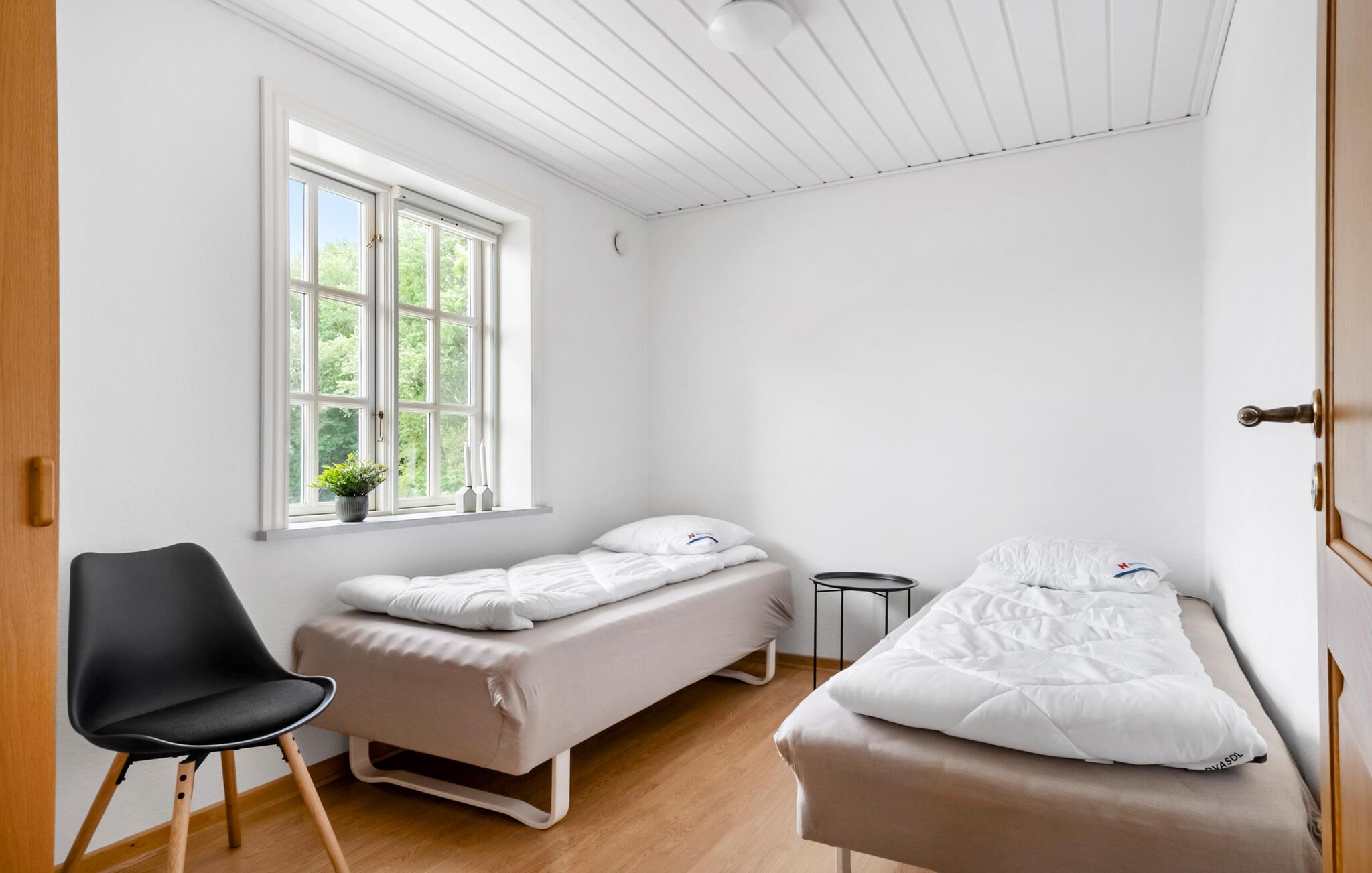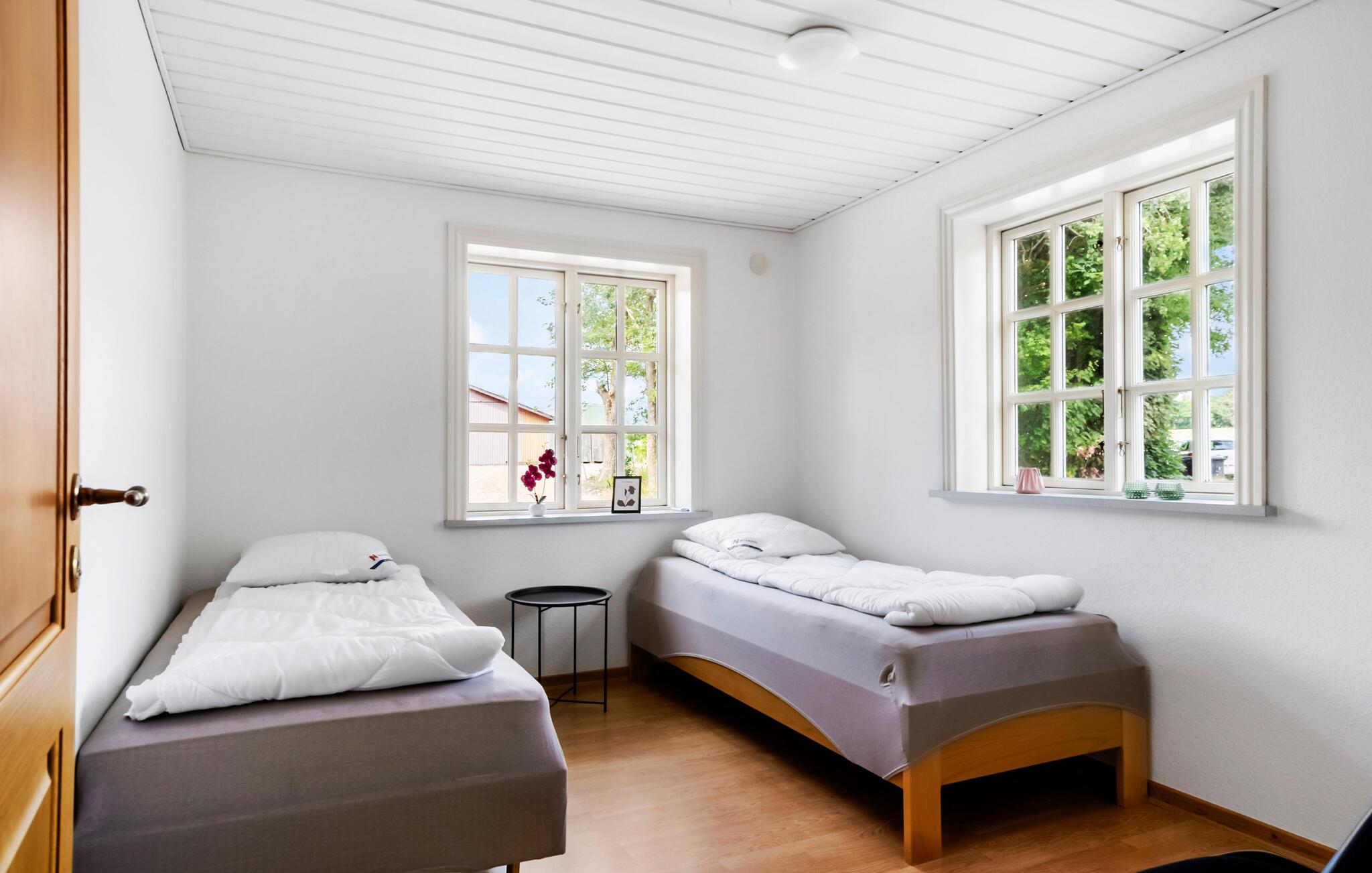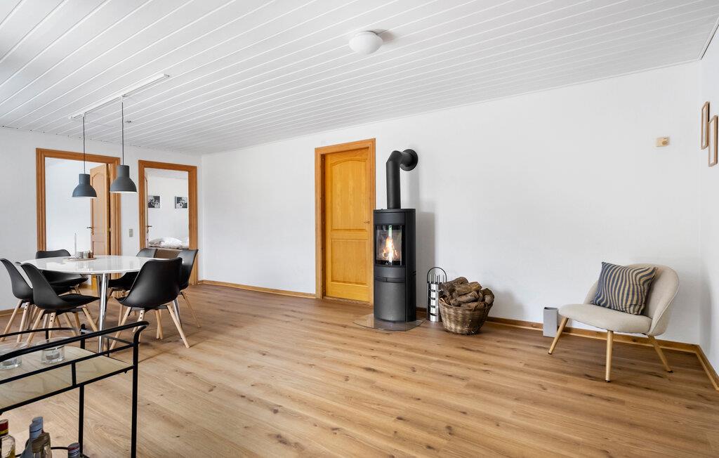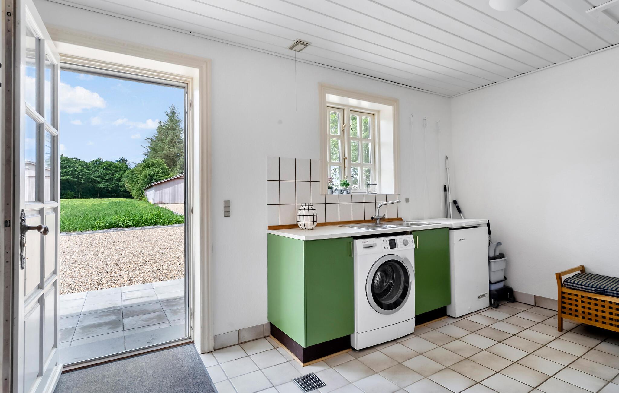 Der er lagt op til en herlig ferie i landlige rammer. Her kan hele famlien trække stikke fra hverdagen og nyde feriedagene i et hus, der både er moderne og har sjæl. Der falder et dejligt lys ind i boligen, hvor fine detaljer er bevaret og kombineret med moderne bekvemmeligheder. Tænd op i brændeovnen, når I vender hjem efter en frisk gåtur og sæt jer med et godt glas vin, efter I har kreeret en lækker feriemiddag i det indbydende køkken.
