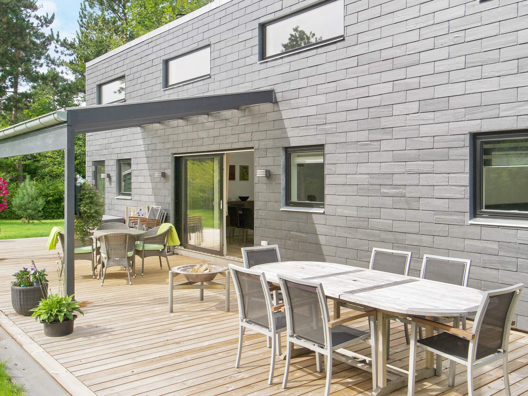 Udenfor strækker en overdækket terrasse sig langs ejendommen, og i den ene ende finder du et spabad med plads til op til otte personer. Spabadet kan varmes effektivt op med varmepumpe om sommeren og derudover med brænde for en hyggelig oplevelse. Hele grunden dækker cirka 1.500 m², hvilket giver masser af plads til udendørs aktiviteter, leg og afslapning.