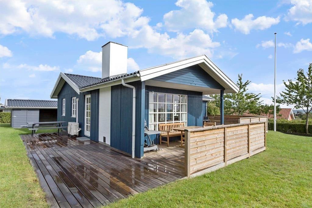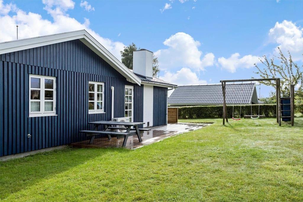 Sommerhusets dejlige træterrasse bliver hurtigt et naturligt samlingspunkt på ferien. Her kan du nyde solens stråler, læne dig tilbage med en god bog eller samle familien til lange, hyggelige måltider under åben himmel. Terrassen indbyder til både afslapning og samvær, og de rolige omgivelser gør det let at finde feriens tempo. Start dagen med morgenmad i den friske luft og slut den af med en stille aften, hvor himlen farves i bløde nuancer, mens roen sænker sig over området. Haven omkring sommerhuset giver plads til leg, afslapning og små pauser i solen – og det er let at forestille sig børnene lege, mens de voksne nyder et øjebliks fred.