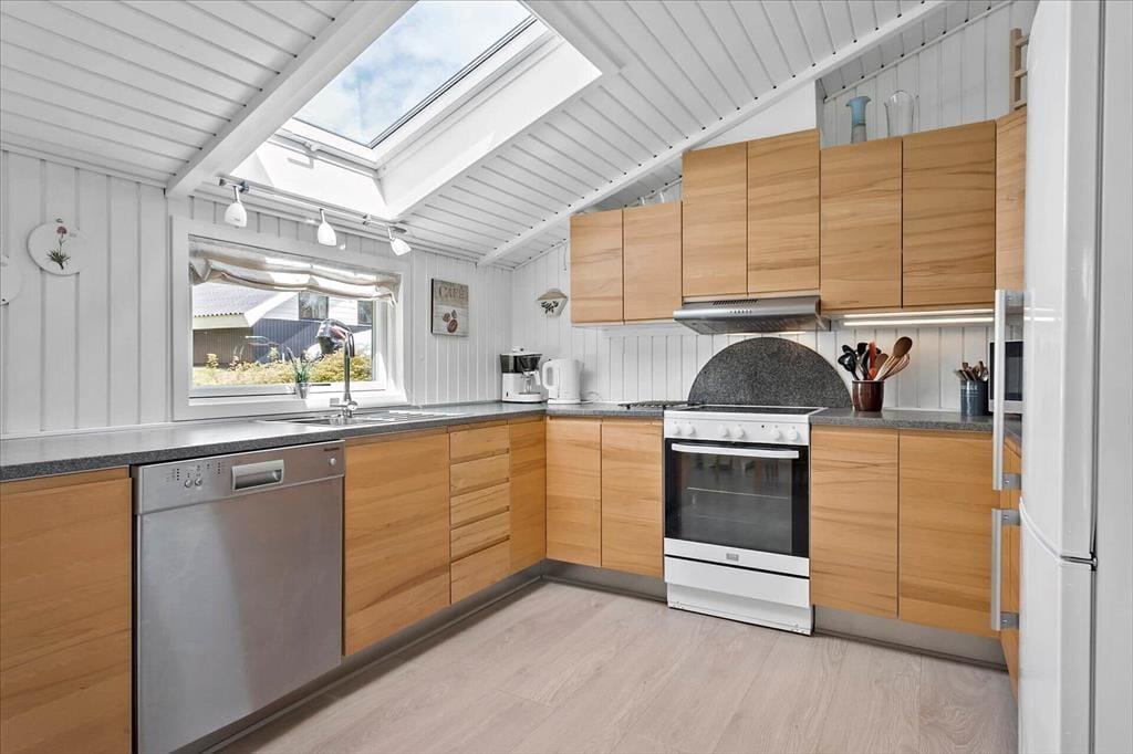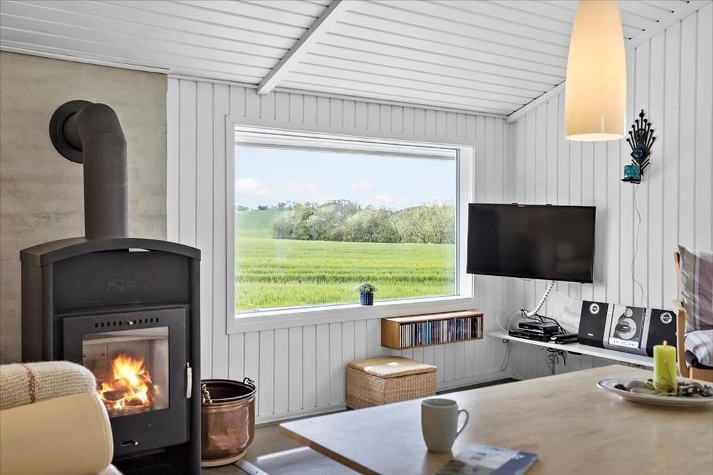 Indenfor mødes du af et lyst og indbydende sommerhus, hvor den hyggelige indretning straks får skuldrene til at sænke sig. Her er der skabt en varm og hjemlig atmosfære, hvor feriens rolige stunder kan nydes i fulde drag. Brændeovnen bliver hurtigt samlingspunktet på køligere dage, når flammernes knitren spreder varme og hygge i rummet, og du kan læne dig tilbage med en kop kaffe eller et glas vin. De lyse omgivelser og den behagelige stemning gør det let at føle sig hjemme, og her er plads til både afslapning, nærvær og gode samtaler. Sommerhuset inviterer til at skrue ned for tempoet og op for feriefølelsen – uanset årstid.