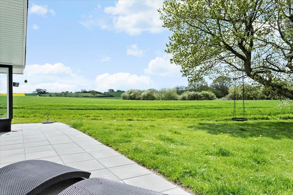 Udendørs venter en dejlig, ugeneret have, hvor du kan nyde stilheden og den friske luft i fulde drag. Haven er omgivet af åbne marker, som giver en særlig fornemmelse af frihed og privatliv, og her kan du høre fuglene kvidre, mens solen varmer ansigtet. Terrassen indbyder til lange, dovne dage med morgenkaffe i solen og hyggelige aftener med grill og gode måltider under åben himmel. Haven giver også plads til leg, afslapning og rolige stunder med en god bog. At hunden er velkommen, gør det nemt at tage hele familien med, og de naturskønne omgivelser er ideelle til små gåture lige fra hoveddøren.