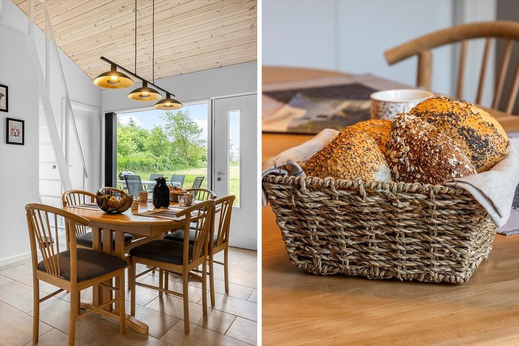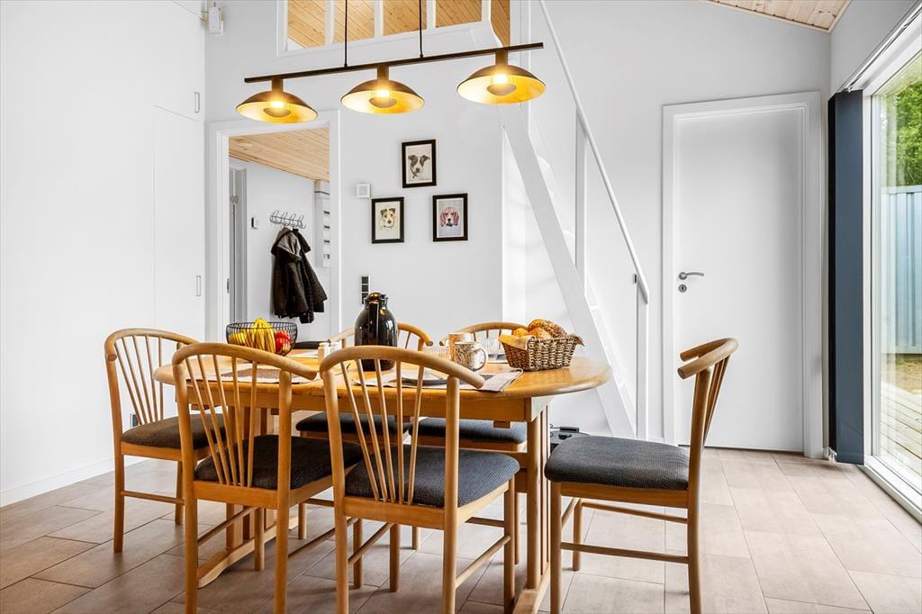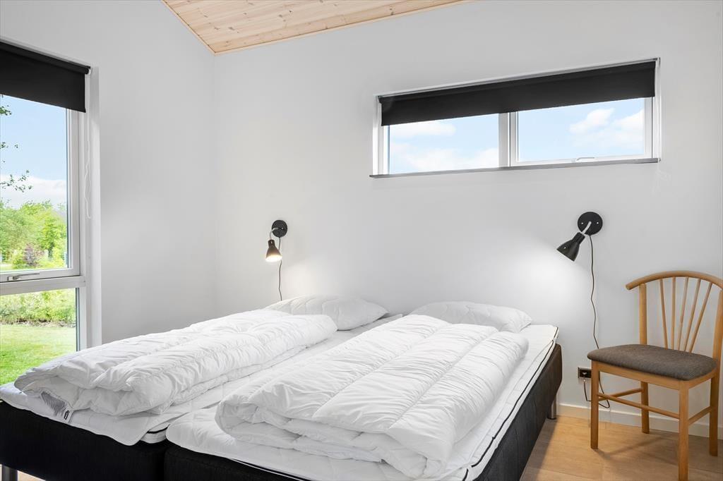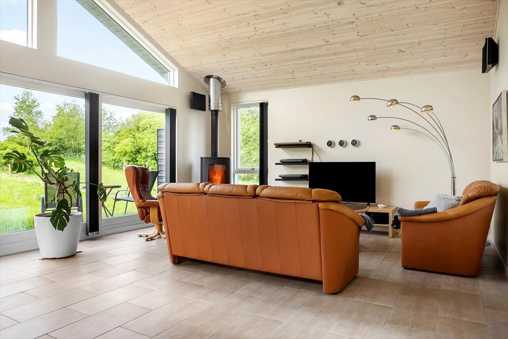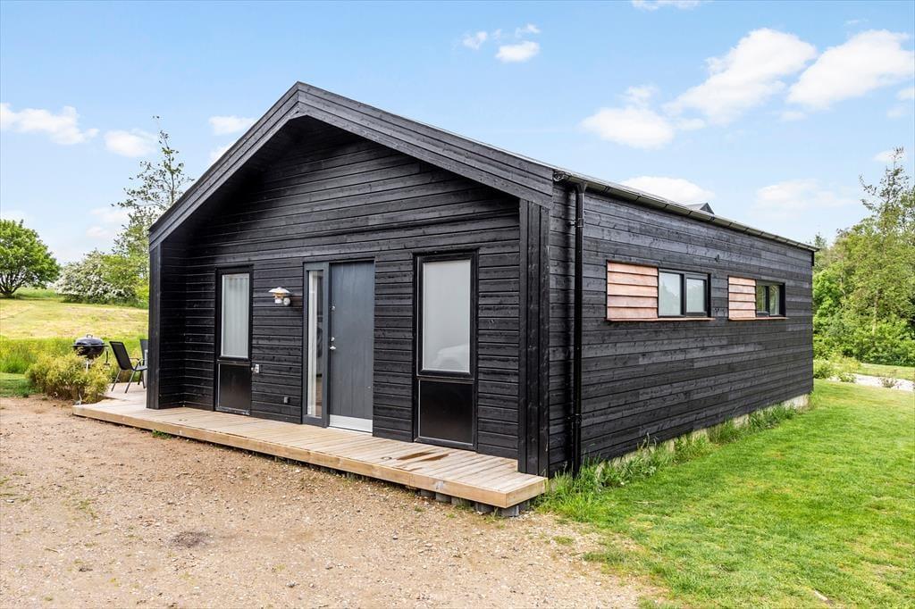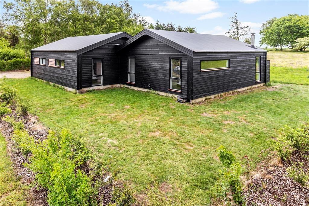 Det sortmalede sommerhus er nyopført og klar til at danne rammen om en ferie i lækre, tjekkede omgivelser – perfekt til afslapning og hygge året rundt. De store vinduespartier inviterer sollyset indenfor og sørger for, at du kan nyde forbindelsen til de smukke naturomgivelser – også selvom tiden bliver brugt på boglæsning, brætspil og madlavning inden døre. Om natten er der tre gode soveværelser at fordele sig på, og husets hems kan også tages i brug, så i alt kan I være op til seks voksne og to børn. Stuens brændeovn kan gøre indrelivet ekstra hyggeligt og stemningsfuldt, og hvis du og dine kære trænger til at koble helt af, er det skønt, at det store wellnessbadeværelse har både spabad og sauna.