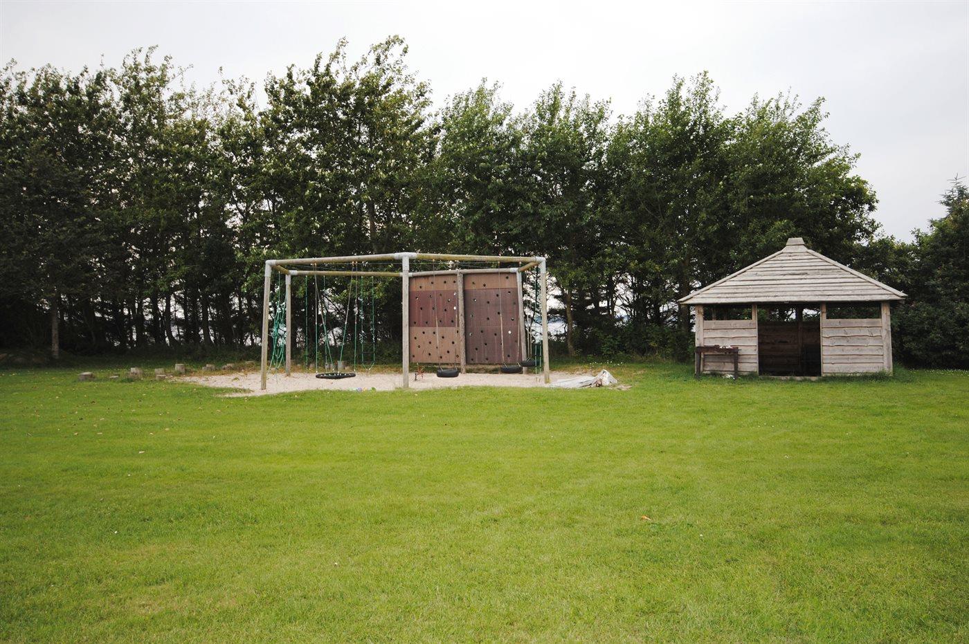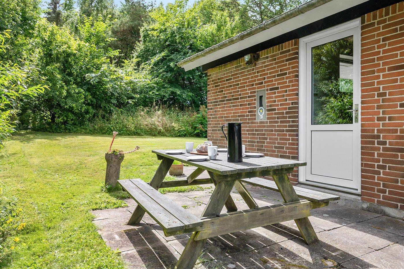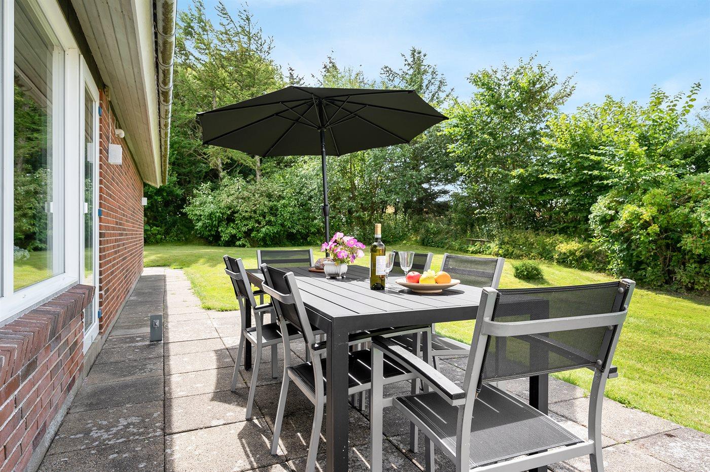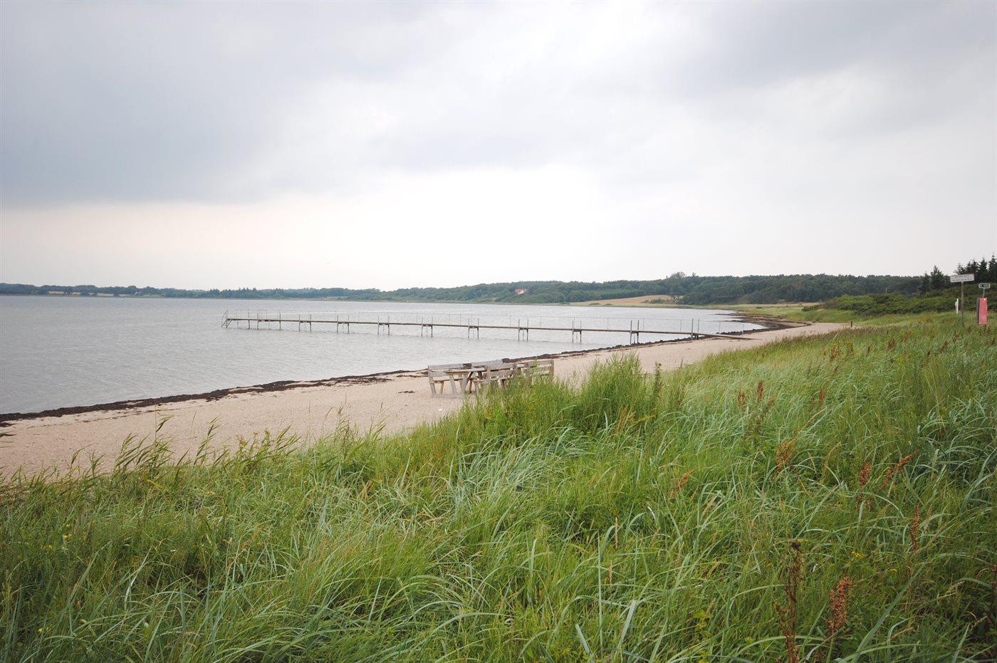 Ferieboligen er beliggende på en 5675 m² stor naturgrund. Der er 250 m til fjorden. Nærmeste forretning er beliggende i en afstand af 1000 m. Der er en golfbane i en afstand af 1500 m. Til ferieboligen hører 15 m² terrasseareal. Desuden er der 15 m² overdækket terrasse. Der er redskabsrum. Parkering ved ferieboligen.