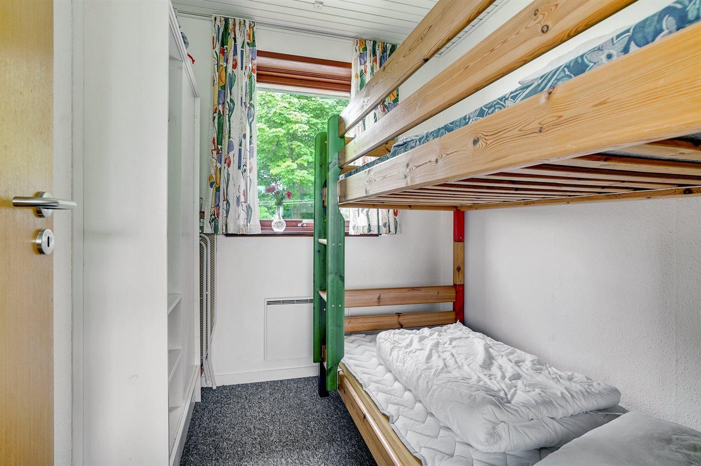 Der er i alt 3 soveværelser. Sovepladserne fordeler sig på: 2 sovepladser i dobbeltseng. 4 sovepladser i køjesenge. Derudover er der 1 stk. barneseng.
