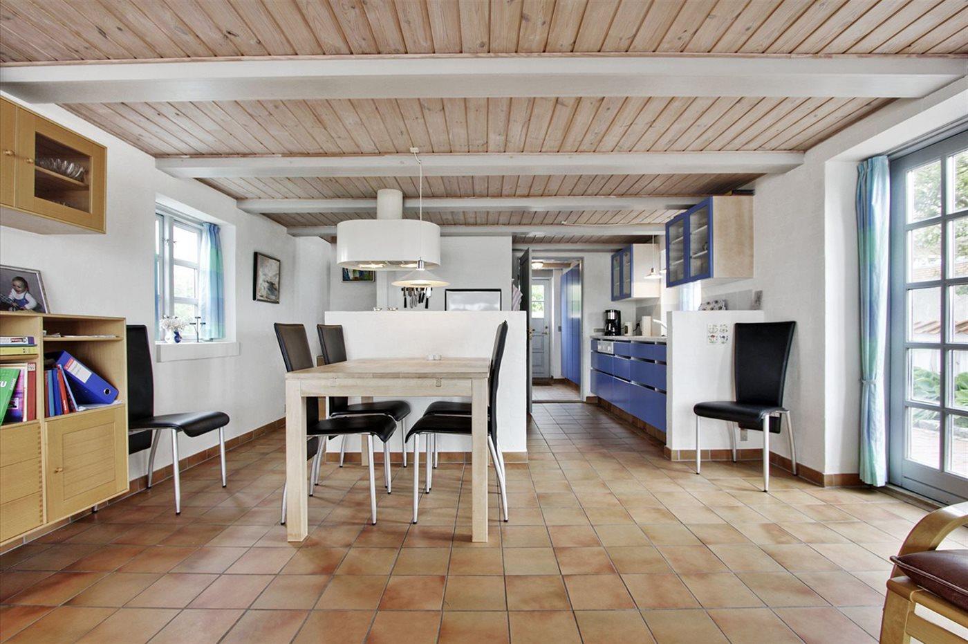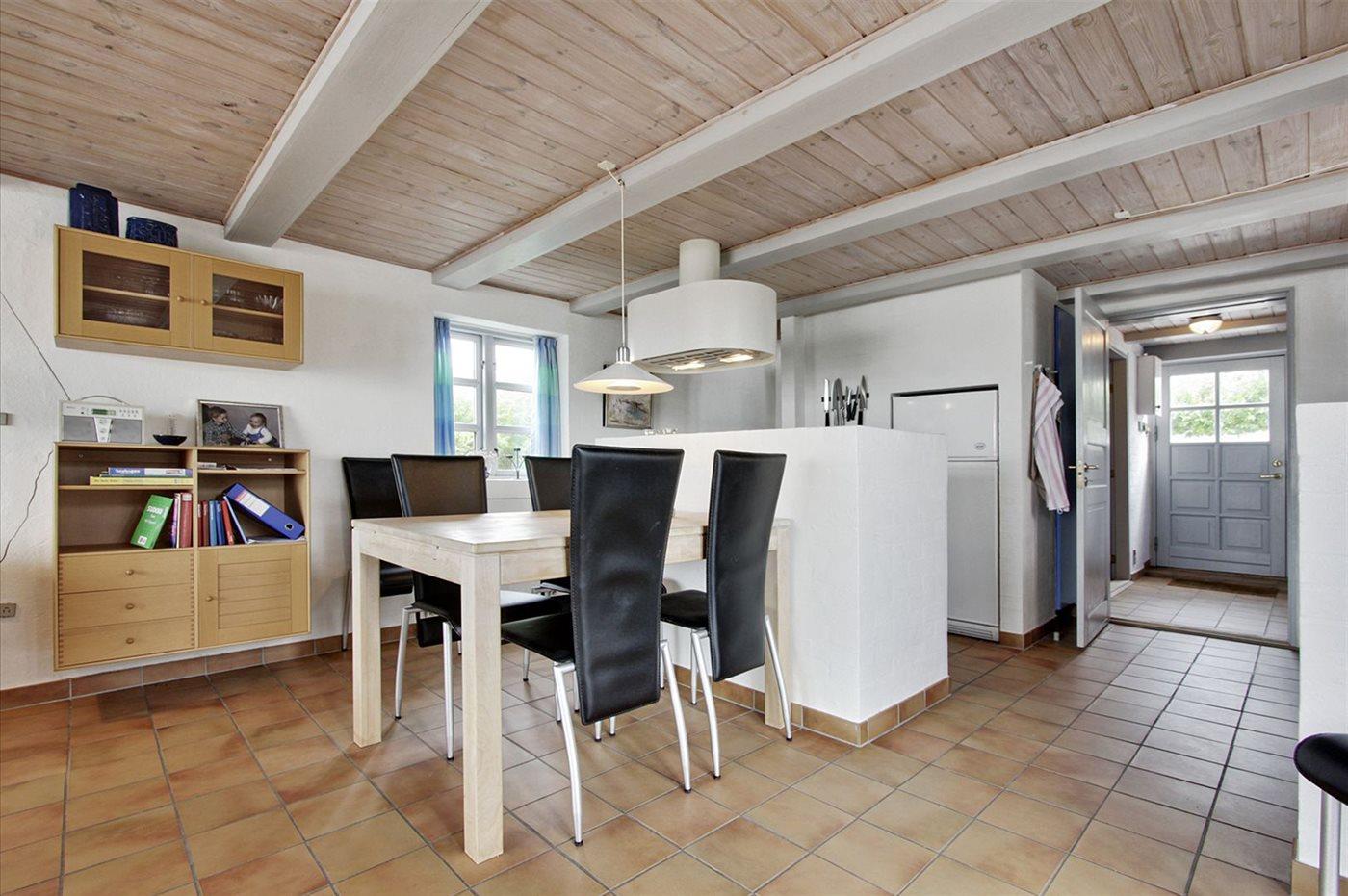 Køkkenet er udstyret med 1 køleskab. Der er 4 keramiske kogeplader, varmluftovn samt opvaskemaskine.