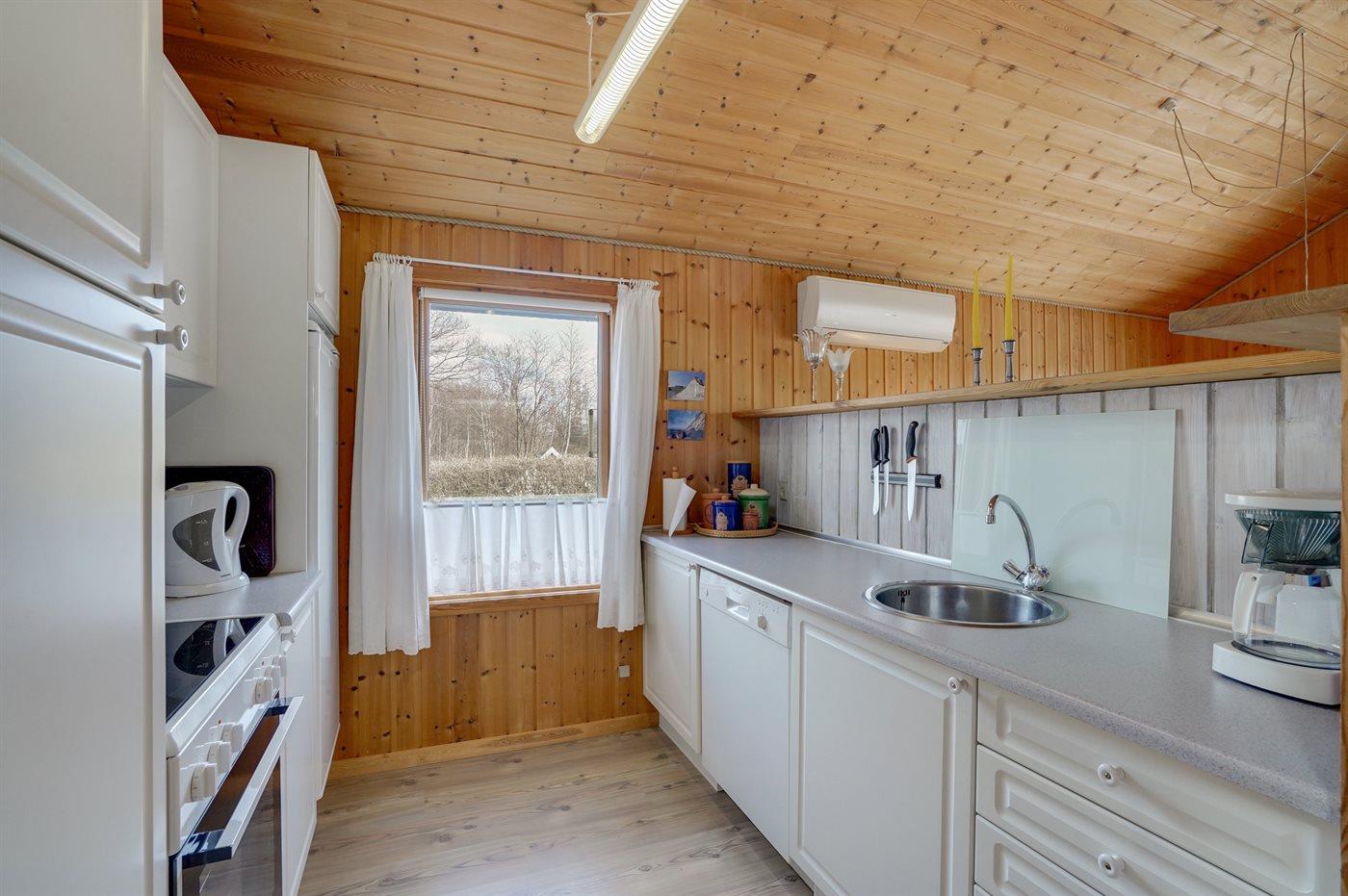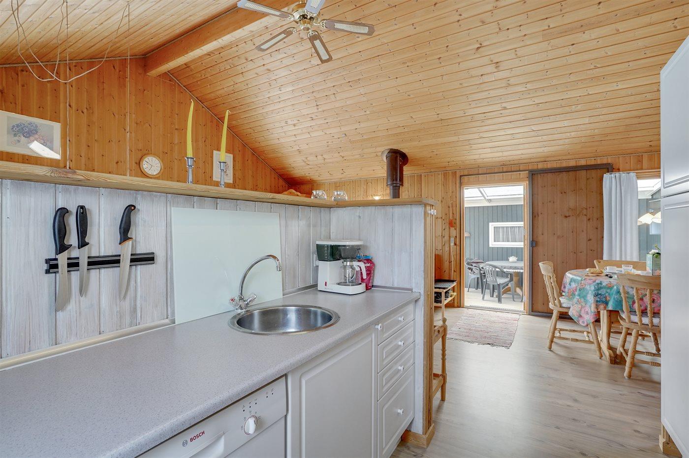Køkkenet er udstyret med 1 køleskab. Der er 4 keramiske kogeplader, varmluftovn, mikrobølgeovn samt opvaskemaskine.