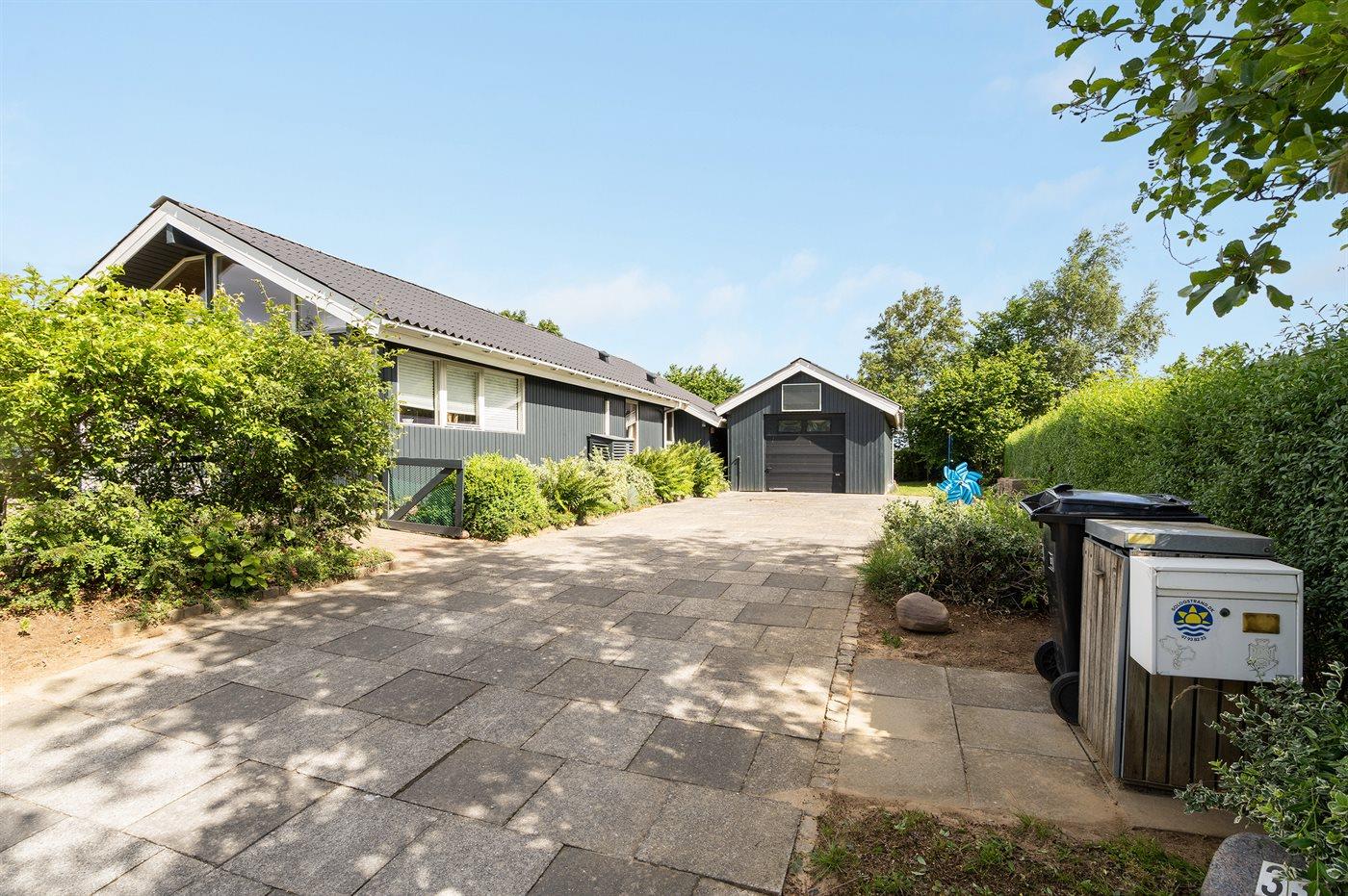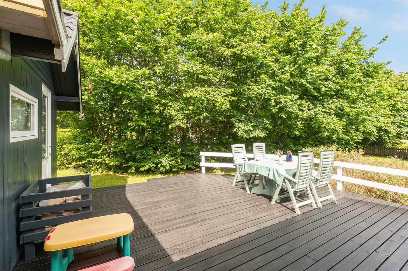 Hyggeligt sommerhus nær Limfjordens strand med terrasse, bordfodbold og naturgrund.