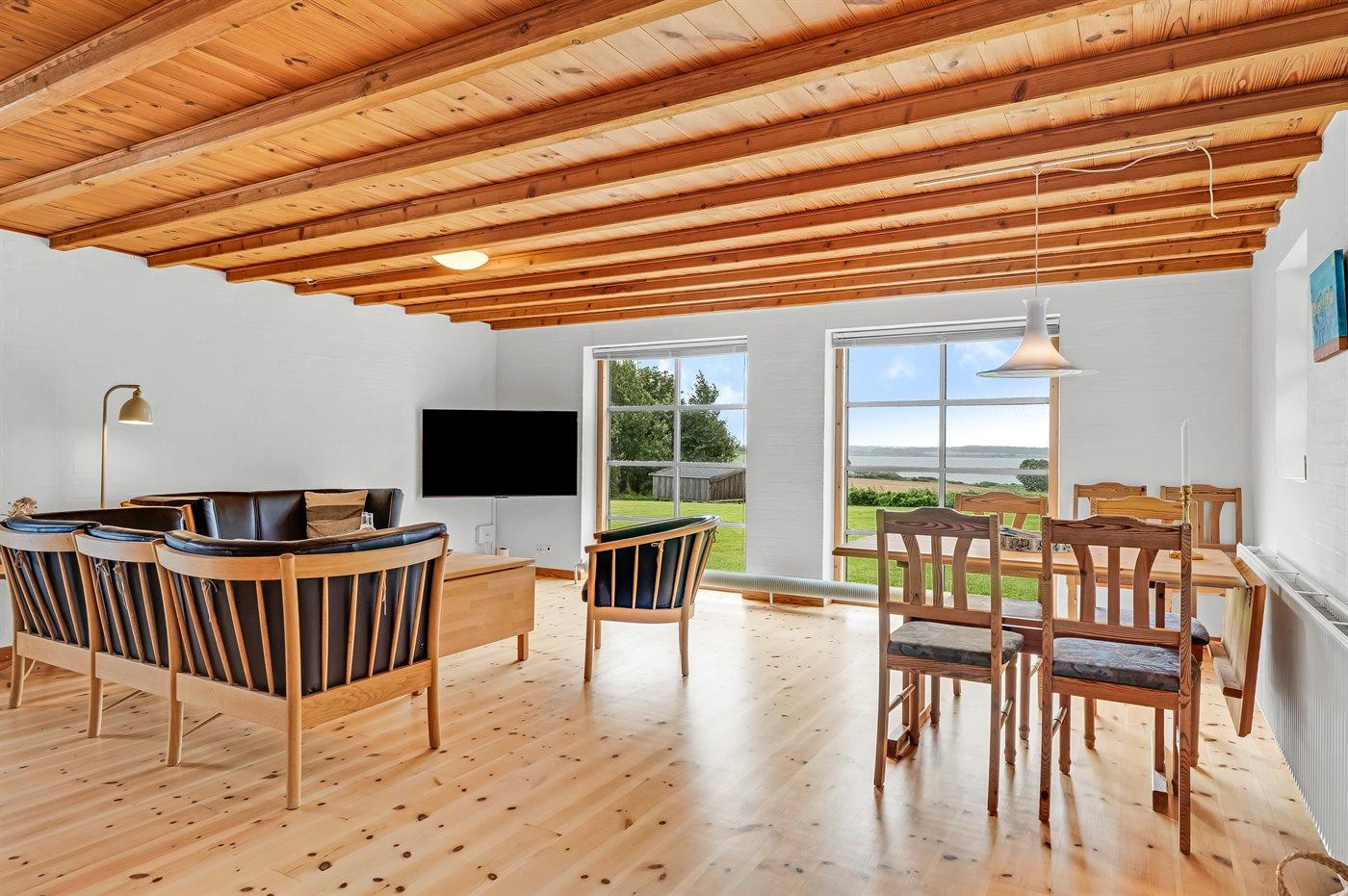 I det skønne sommerhusområde Vile på Salling finder du dette dejlige, stråtækte hus med den skønneste udsigt over fjorden. Huset ligger i naturskønne omgivelser og der er plads til op til 10 personer.