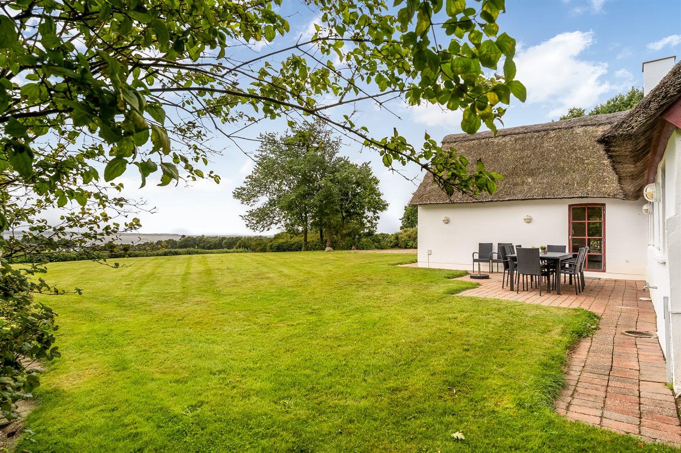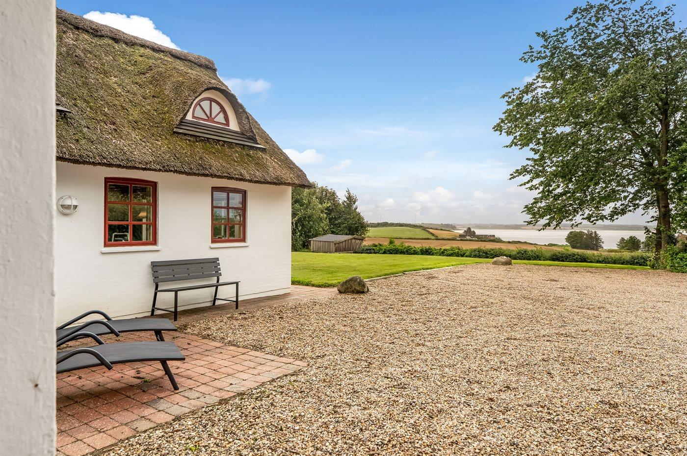 Skønt stråtækt sommerhus med fjordudsigt i Vile