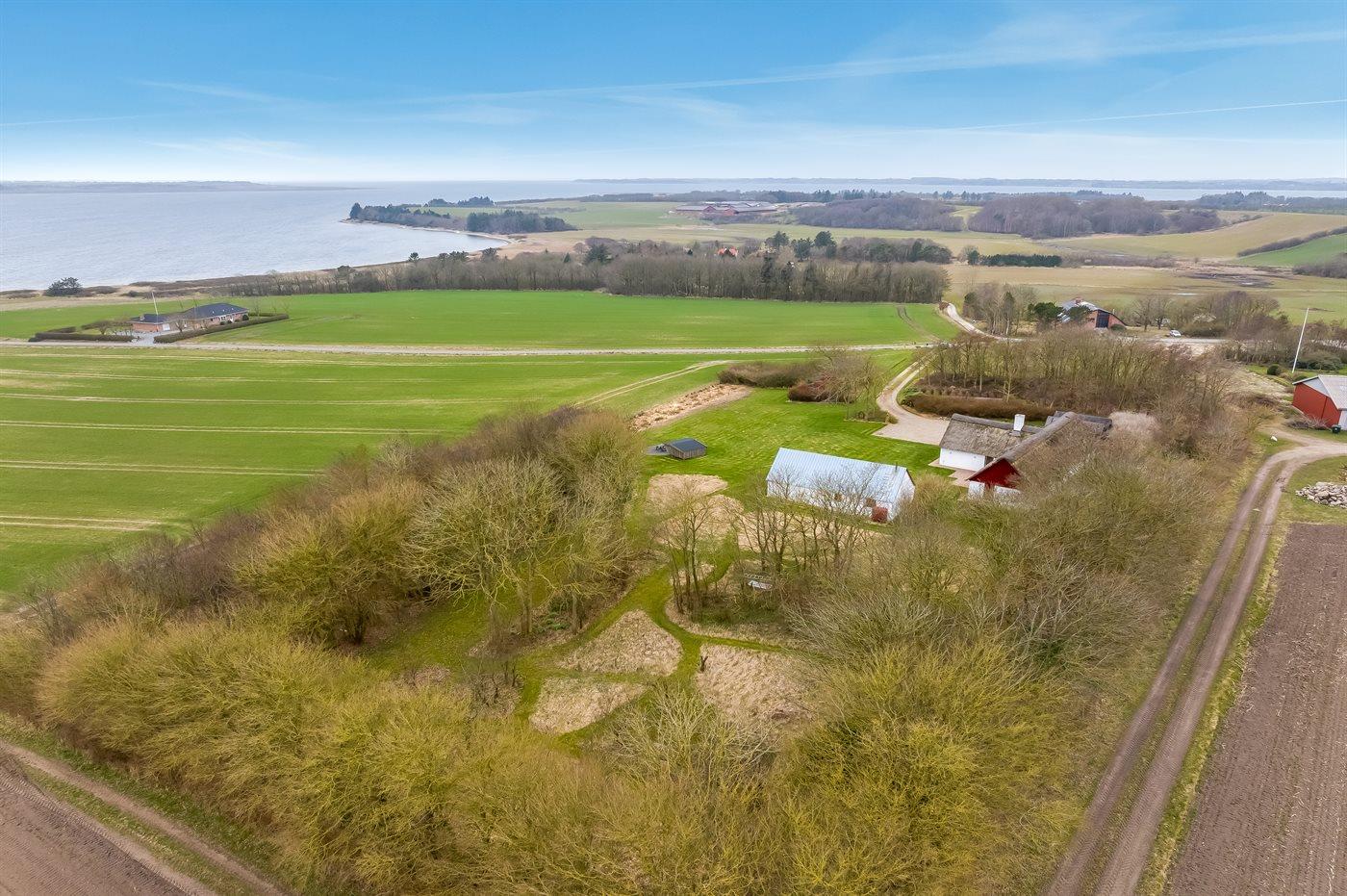 Ferieboligen er beliggende på en 8700 m² stor naturgrund. Der er 400 m til fjorden. Nærmeste forretning er beliggende i en afstand af 4000 m. Der er en golfbane i en afstand af 5600 m. Til ferieboligen hører åbent terrasseareal. Der er redskabsrum. Bålsted. Shelter. Grill til rådighed. Der er carport til rådighed. Parkering ved ferieboligen.