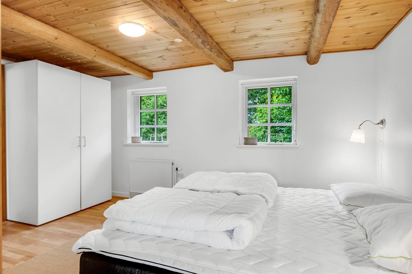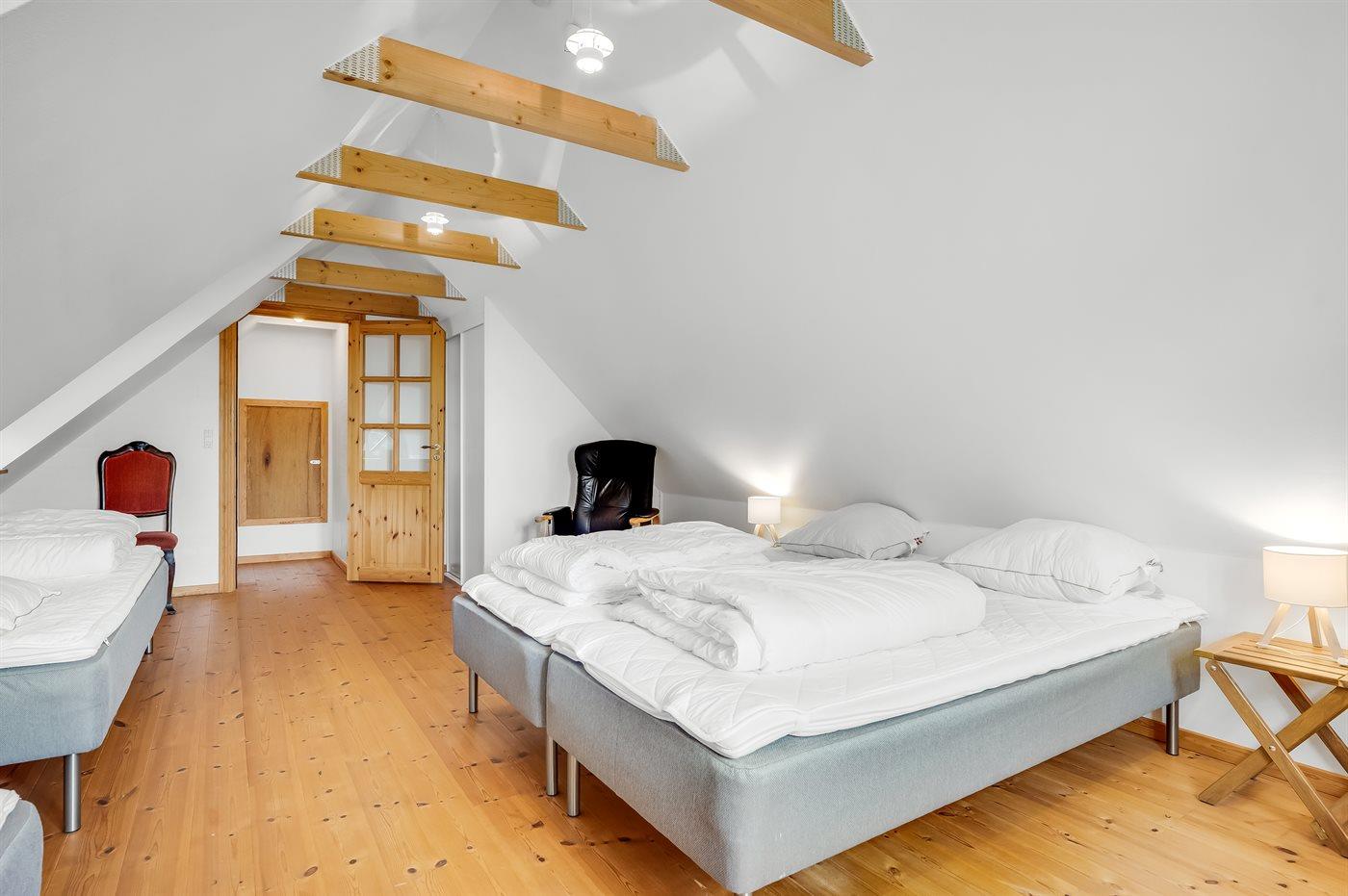 Der er i alt 4 soveværelser. Sovepladserne fordeler sig på: 6 sovepladser i dobbeltsenge. 2 sovepladser i enkeltsenge. 2 sovepladser i køjeseng.